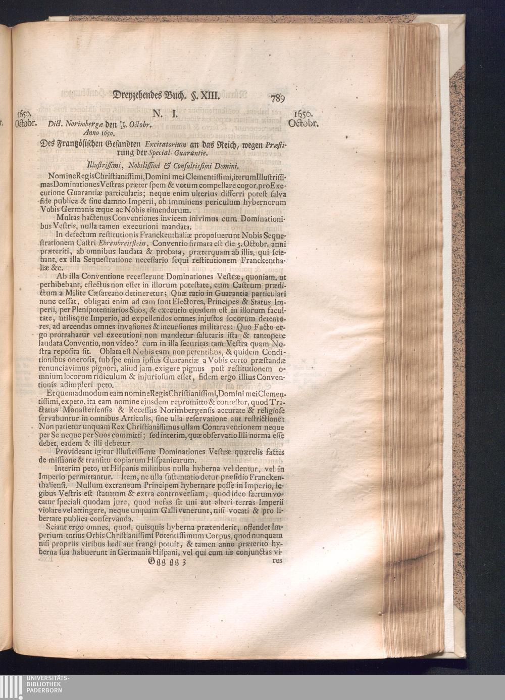 Zweyter und letzter Theil (1737) Worinnen enthalten, wie und welchergestalt die würckliche Vollziehung des Westphälischen Friedens, sowohl in puncto Exauctorationis Militæ und Evacuationis Locorum, als auch und vornehmlich in dem hochwichtigen puncto Restitutionis ex Capite Amnestiæ & Gravaminum, biß zum völligen Schluß des Congressus, Anno 1651, geschehen ist, in einer ausführlichen Historischen Erzehlung, mit beygefügten authentischen Urkunden, auch einem vollständigen Register