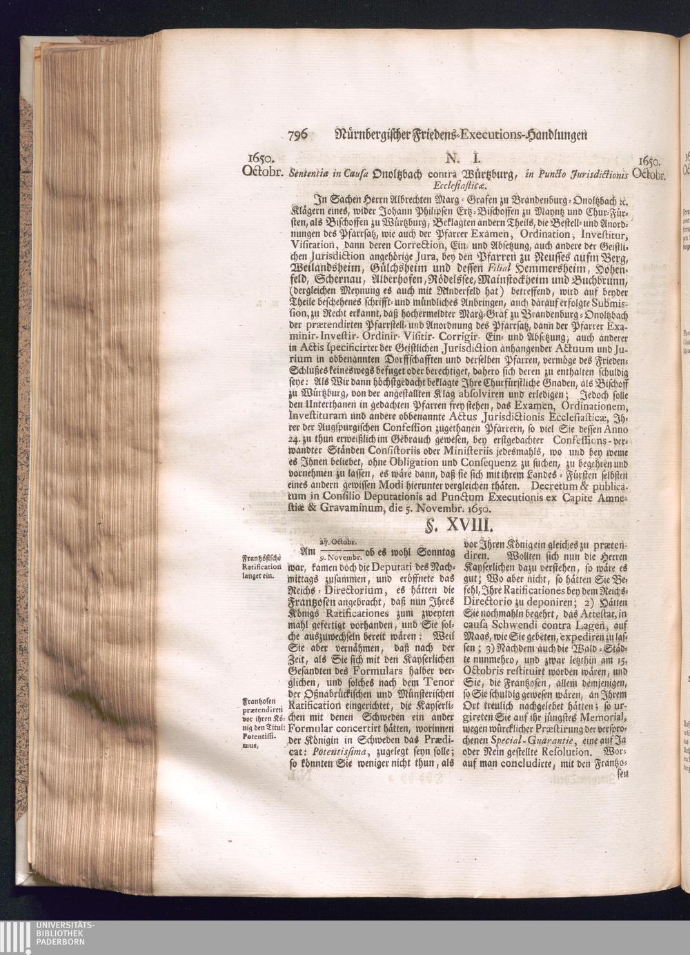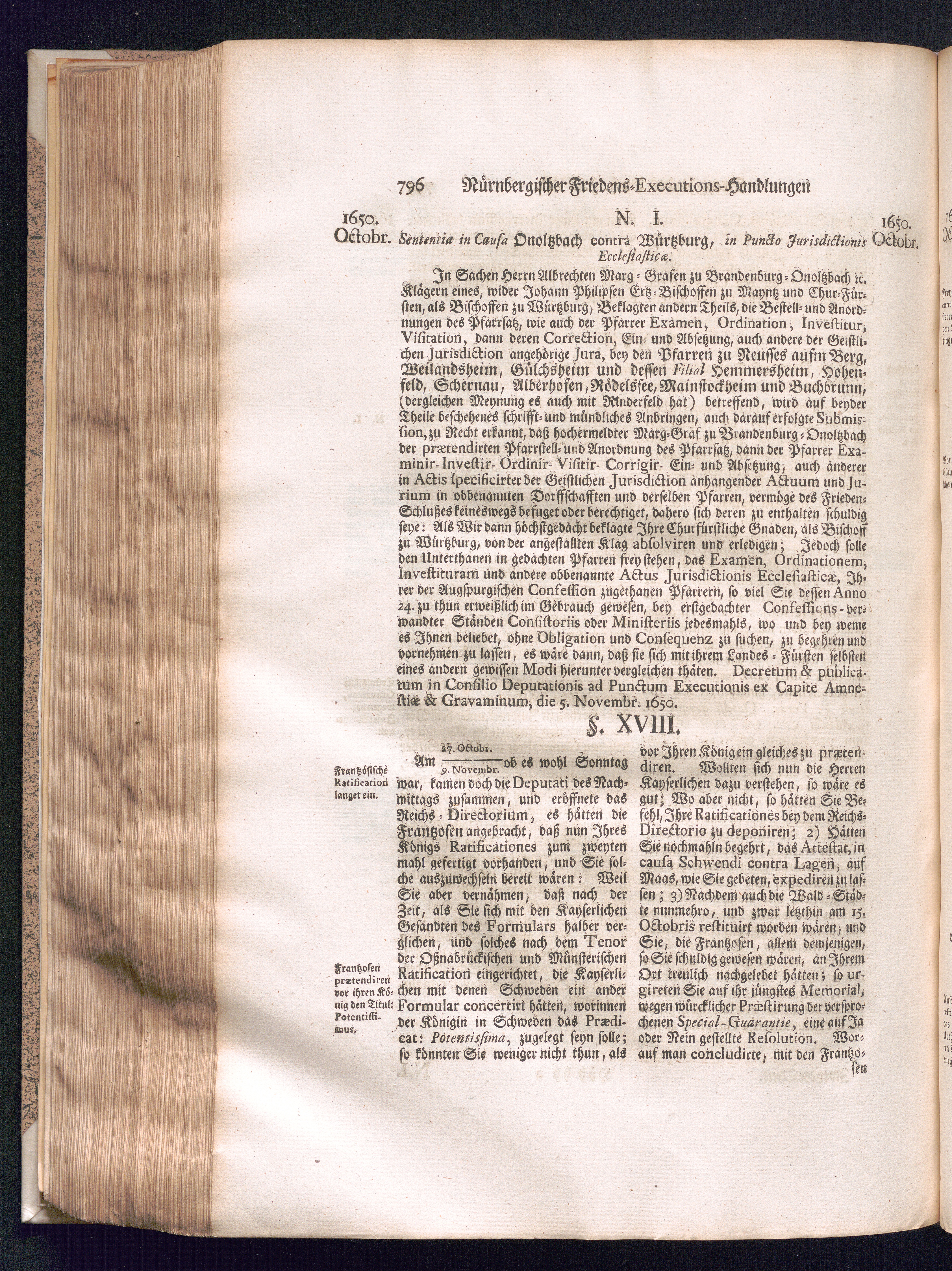 Zweyter und letzter Theil (1737) Worinnen enthalten, wie und welchergestalt die würckliche Vollziehung des Westphälischen Friedens, sowohl in puncto Exauctorationis Militæ und Evacuationis Locorum, als auch und vornehmlich in dem hochwichtigen puncto Restitutionis ex Capite Amnestiæ & Gravaminum, biß zum völligen Schluß des Congressus, Anno 1651, geschehen ist, in einer ausführlichen Historischen Erzehlung, mit beygefügten authentischen Urkunden, auch einem vollständigen Register