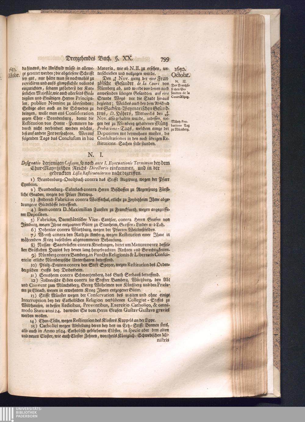 Zweyter und letzter Theil (1737) Worinnen enthalten, wie und welchergestalt die würckliche Vollziehung des Westphälischen Friedens, sowohl in puncto Exauctorationis Militæ und Evacuationis Locorum, als auch und vornehmlich in dem hochwichtigen puncto Restitutionis ex Capite Amnestiæ & Gravaminum, biß zum völligen Schluß des Congressus, Anno 1651, geschehen ist, in einer ausführlichen Historischen Erzehlung, mit beygefügten authentischen Urkunden, auch einem vollständigen Register