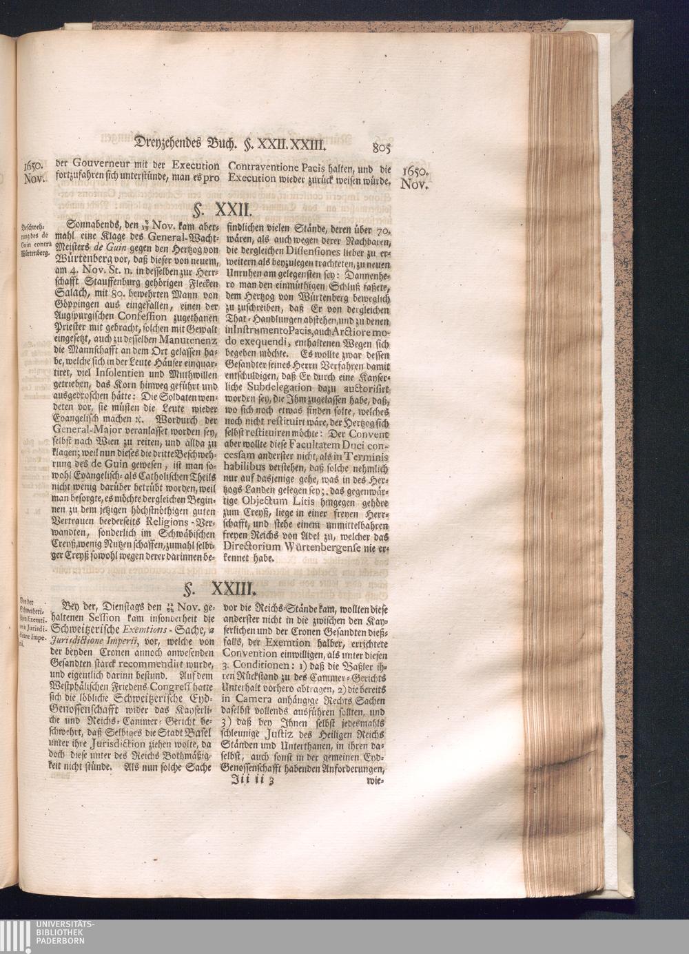Zweyter und letzter Theil (1737) Worinnen enthalten, wie und welchergestalt die würckliche Vollziehung des Westphälischen Friedens, sowohl in puncto Exauctorationis Militæ und Evacuationis Locorum, als auch und vornehmlich in dem hochwichtigen puncto Restitutionis ex Capite Amnestiæ & Gravaminum, biß zum völligen Schluß des Congressus, Anno 1651, geschehen ist, in einer ausführlichen Historischen Erzehlung, mit beygefügten authentischen Urkunden, auch einem vollständigen Register