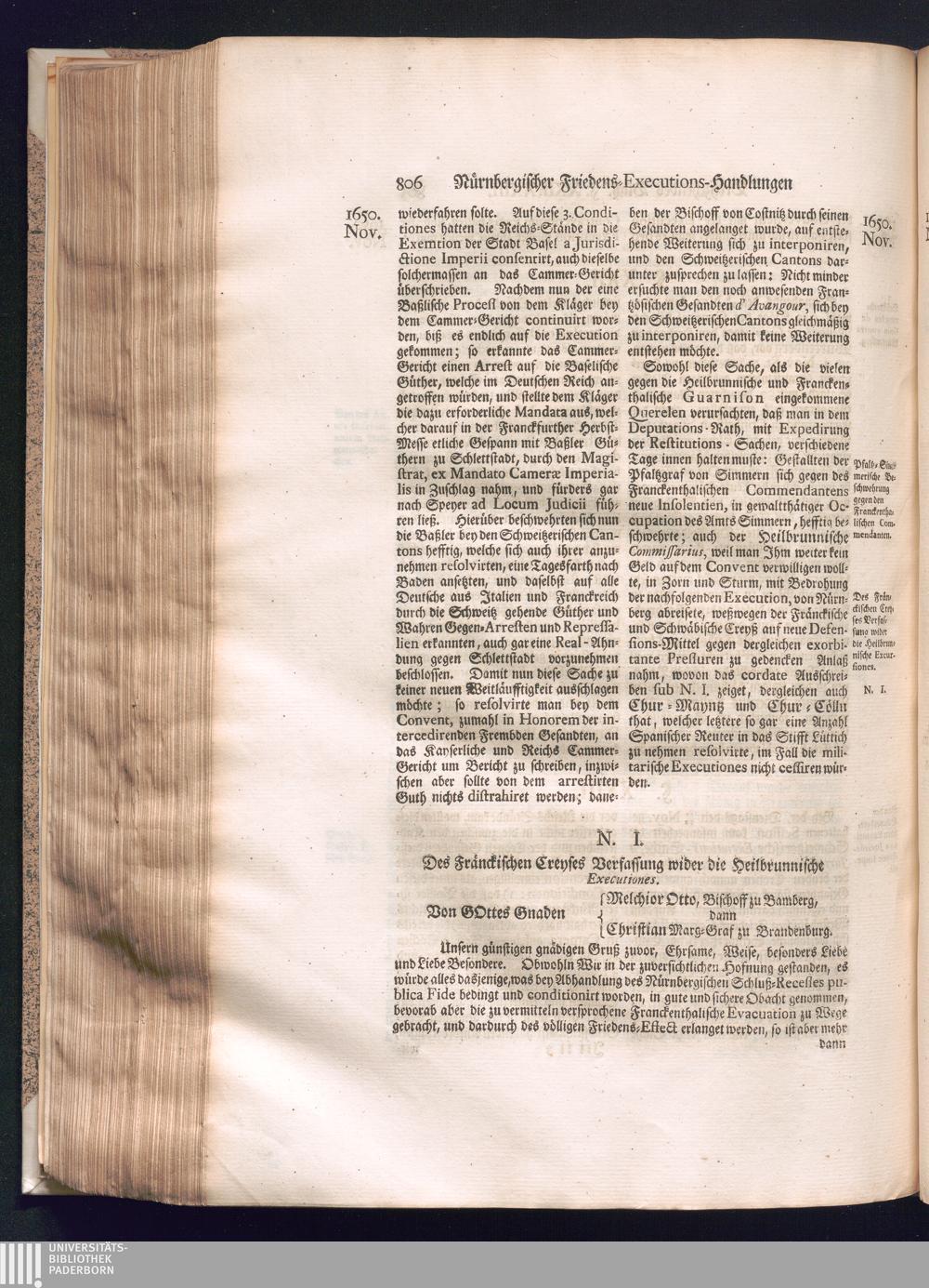 Zweyter und letzter Theil (1737) Worinnen enthalten, wie und welchergestalt die würckliche Vollziehung des Westphälischen Friedens, sowohl in puncto Exauctorationis Militæ und Evacuationis Locorum, als auch und vornehmlich in dem hochwichtigen puncto Restitutionis ex Capite Amnestiæ & Gravaminum, biß zum völligen Schluß des Congressus, Anno 1651, geschehen ist, in einer ausführlichen Historischen Erzehlung, mit beygefügten authentischen Urkunden, auch einem vollständigen Register