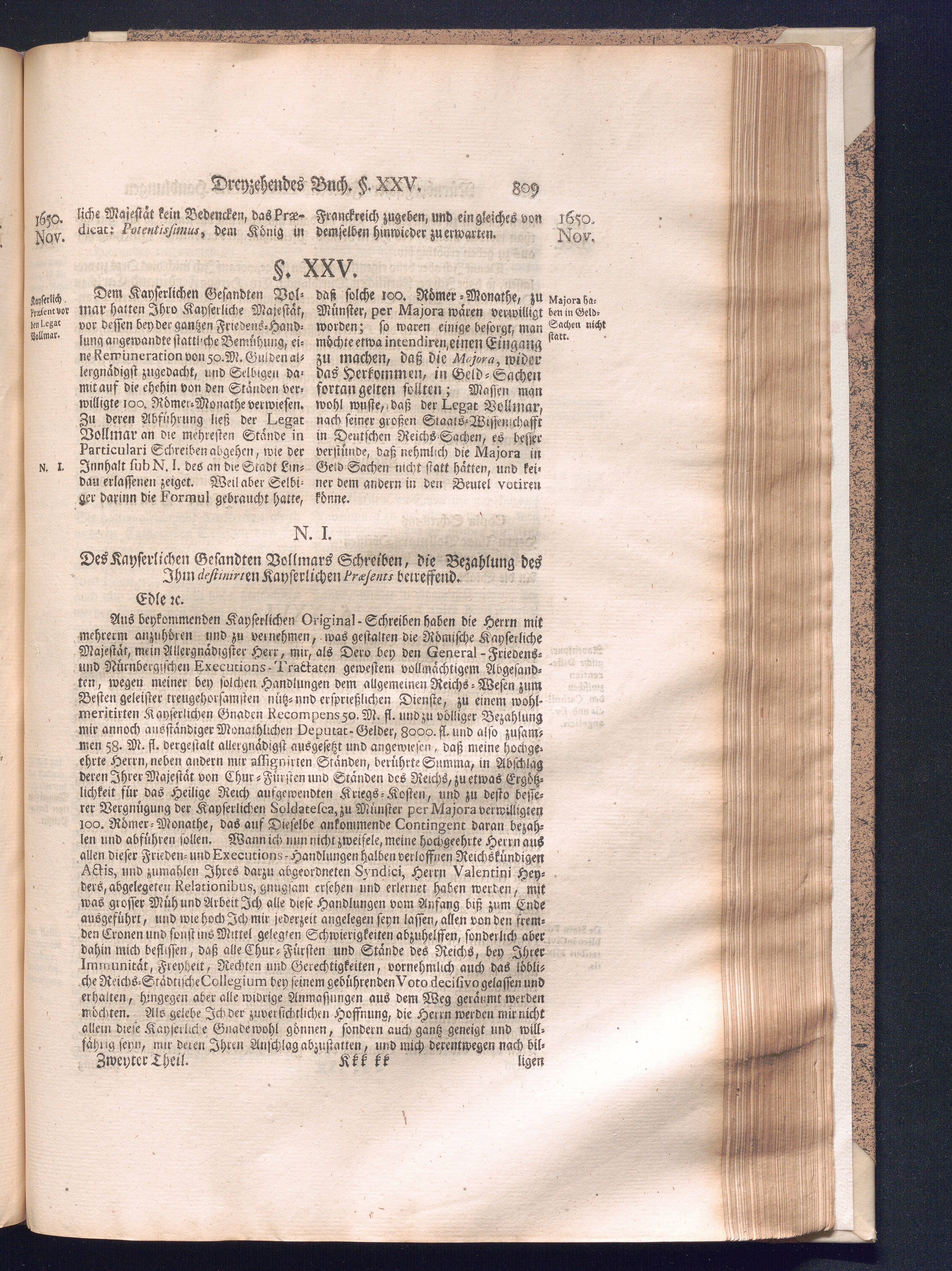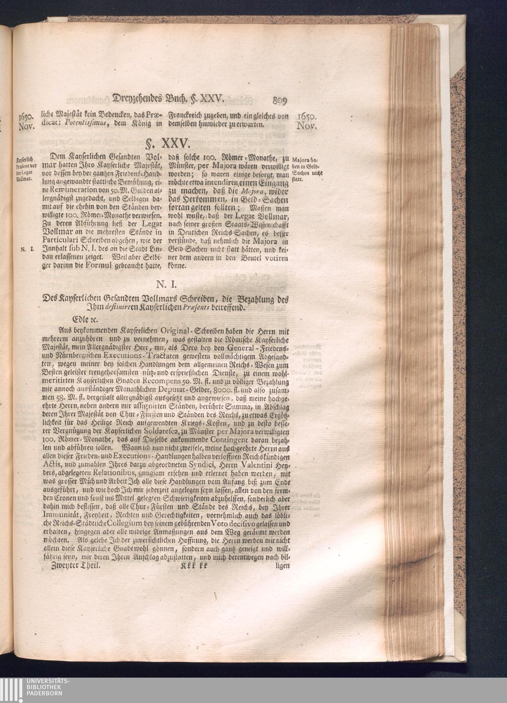 Zweyter und letzter Theil (1737) Worinnen enthalten, wie und welchergestalt die würckliche Vollziehung des Westphälischen Friedens, sowohl in puncto Exauctorationis Militæ und Evacuationis Locorum, als auch und vornehmlich in dem hochwichtigen puncto Restitutionis ex Capite Amnestiæ & Gravaminum, biß zum völligen Schluß des Congressus, Anno 1651, geschehen ist, in einer ausführlichen Historischen Erzehlung, mit beygefügten authentischen Urkunden, auch einem vollständigen Register