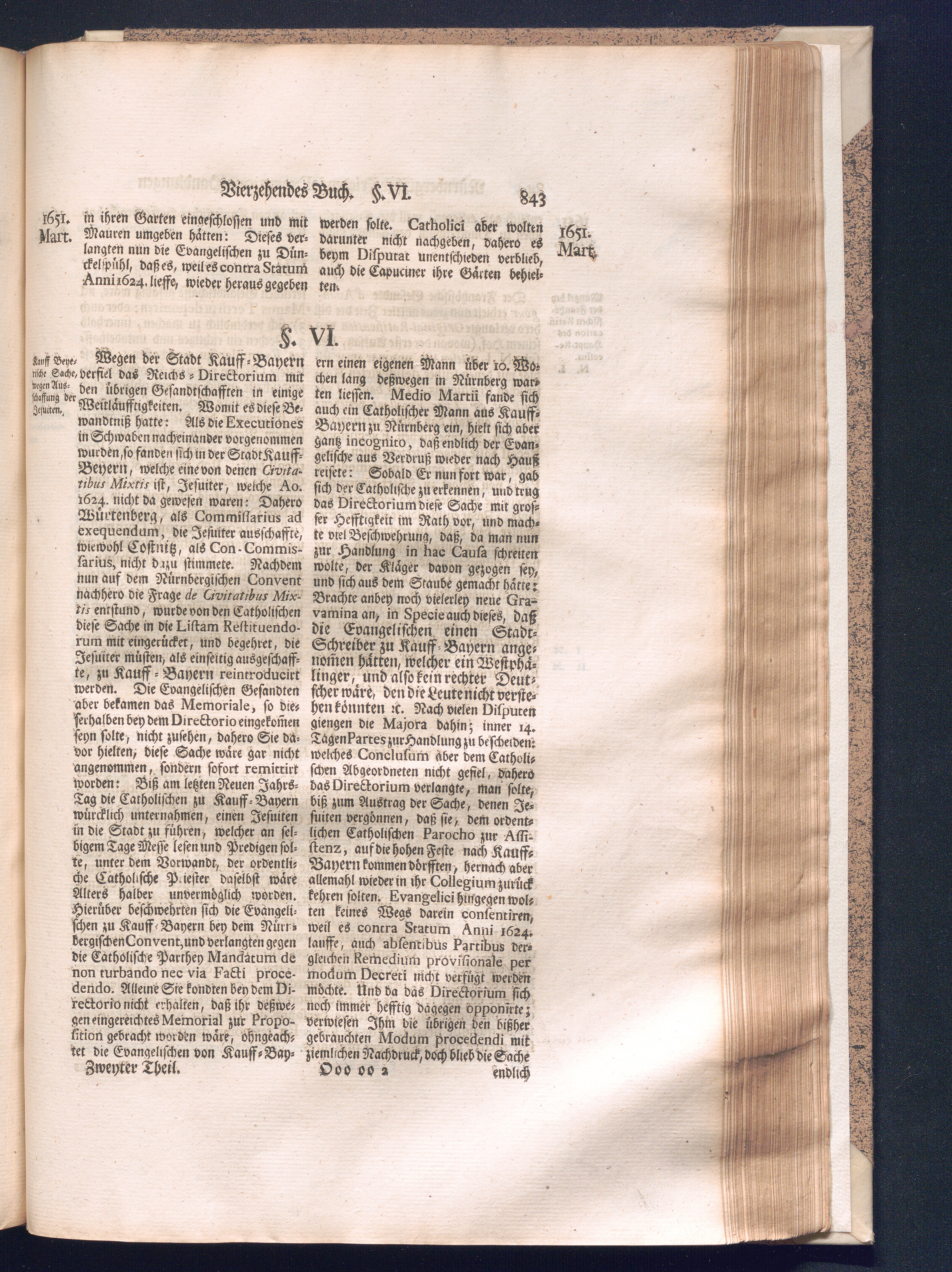 Zweyter und letzter Theil (1737) Worinnen enthalten, wie und welchergestalt die würckliche Vollziehung des Westphälischen Friedens, sowohl in puncto Exauctorationis Militæ und Evacuationis Locorum, als auch und vornehmlich in dem hochwichtigen puncto Restitutionis ex Capite Amnestiæ & Gravaminum, biß zum völligen Schluß des Congressus, Anno 1651, geschehen ist, in einer ausführlichen Historischen Erzehlung, mit beygefügten authentischen Urkunden, auch einem vollständigen Register