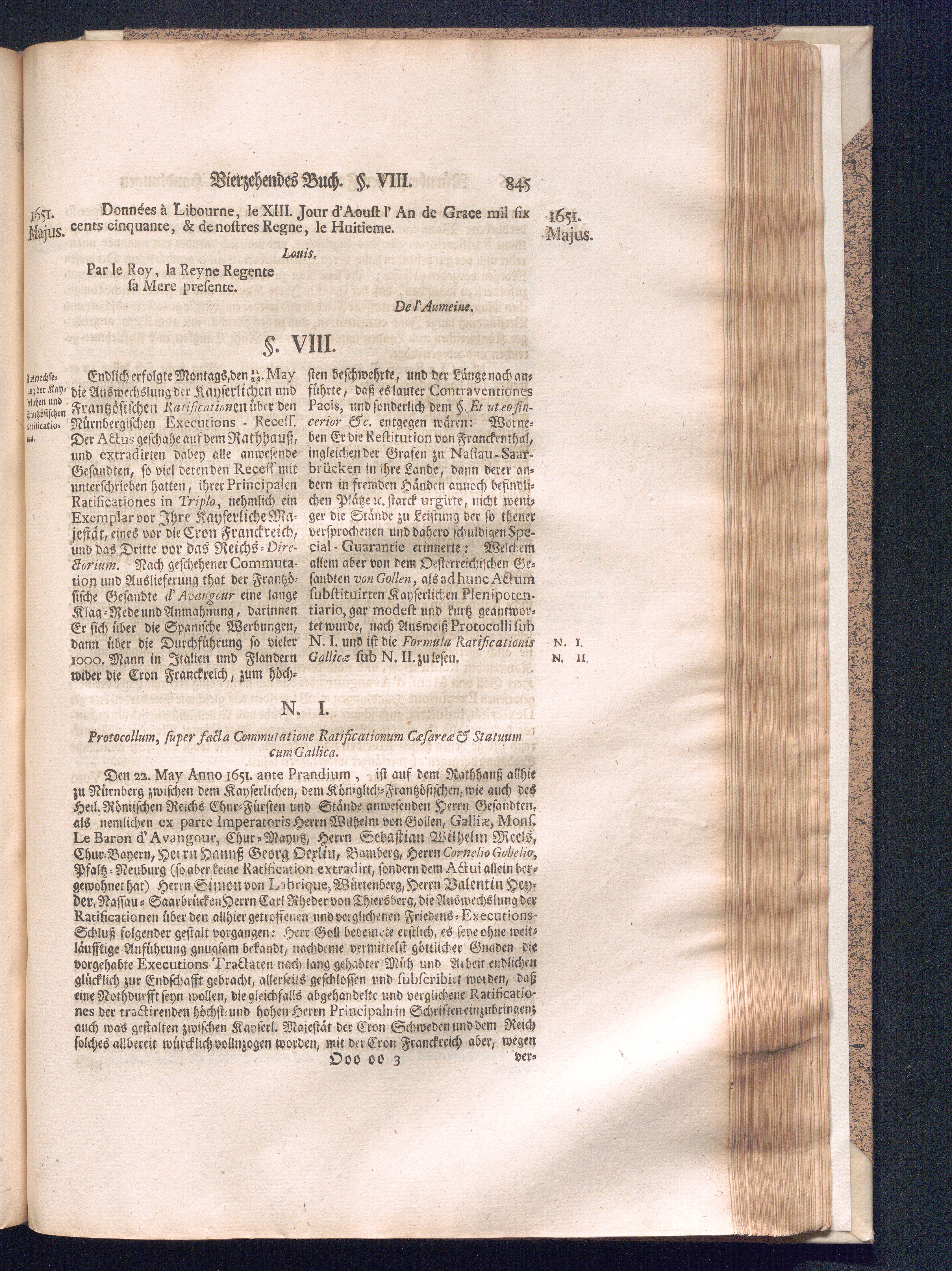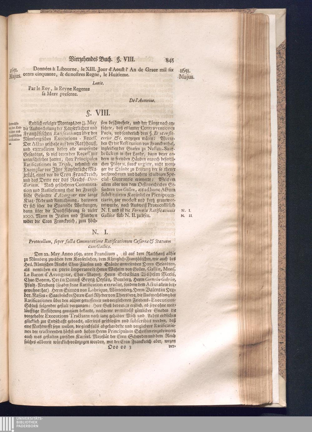 Zweyter und letzter Theil (1737) Worinnen enthalten, wie und welchergestalt die würckliche Vollziehung des Westphälischen Friedens, sowohl in puncto Exauctorationis Militæ und Evacuationis Locorum, als auch und vornehmlich in dem hochwichtigen puncto Restitutionis ex Capite Amnestiæ & Gravaminum, biß zum völligen Schluß des Congressus, Anno 1651, geschehen ist, in einer ausführlichen Historischen Erzehlung, mit beygefügten authentischen Urkunden, auch einem vollständigen Register