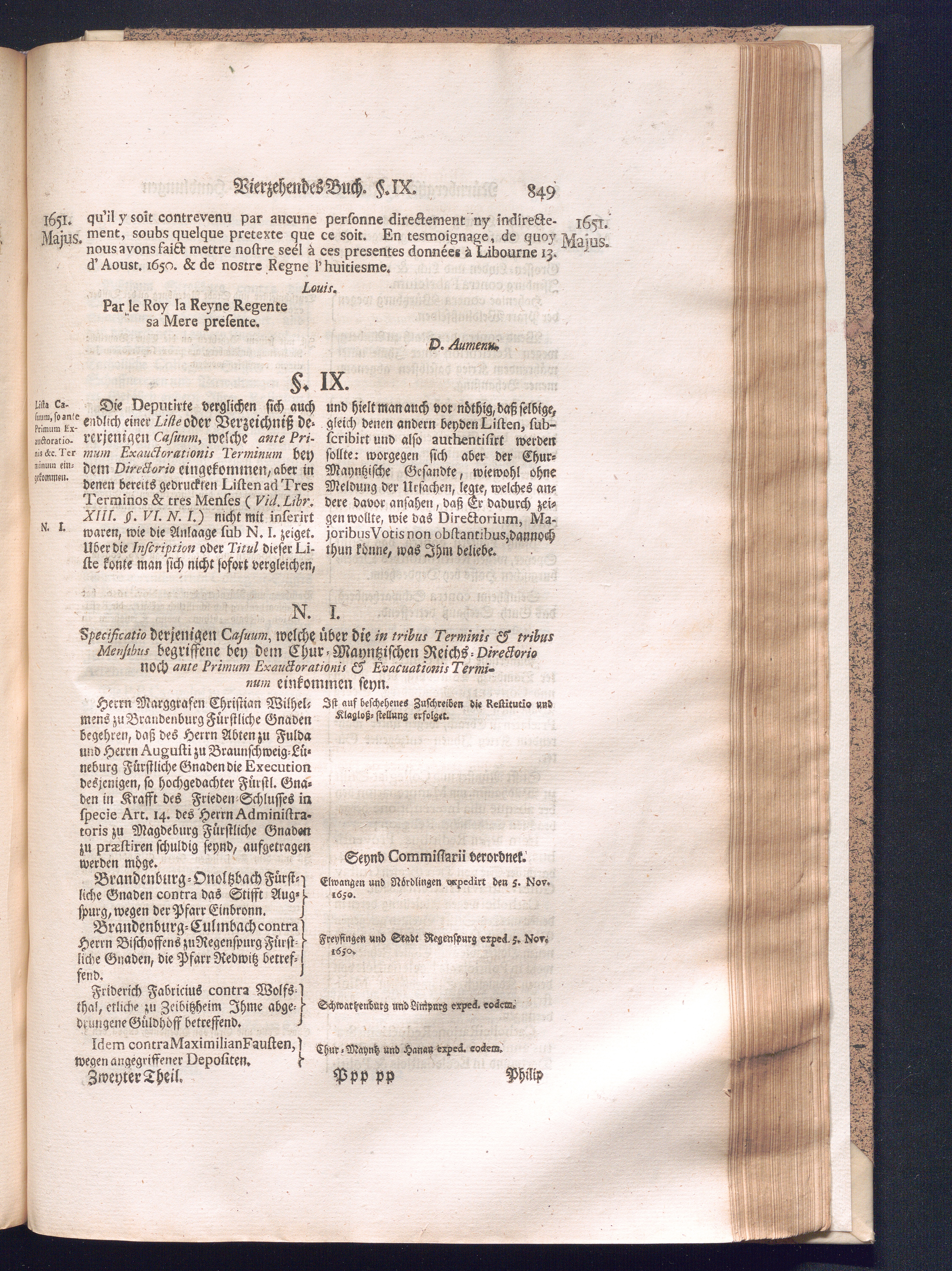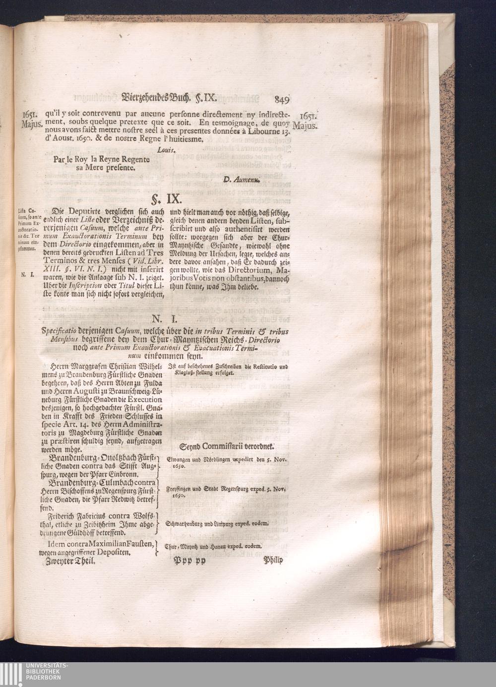 Zweyter und letzter Theil (1737) Worinnen enthalten, wie und welchergestalt die würckliche Vollziehung des Westphälischen Friedens, sowohl in puncto Exauctorationis Militæ und Evacuationis Locorum, als auch und vornehmlich in dem hochwichtigen puncto Restitutionis ex Capite Amnestiæ & Gravaminum, biß zum völligen Schluß des Congressus, Anno 1651, geschehen ist, in einer ausführlichen Historischen Erzehlung, mit beygefügten authentischen Urkunden, auch einem vollständigen Register