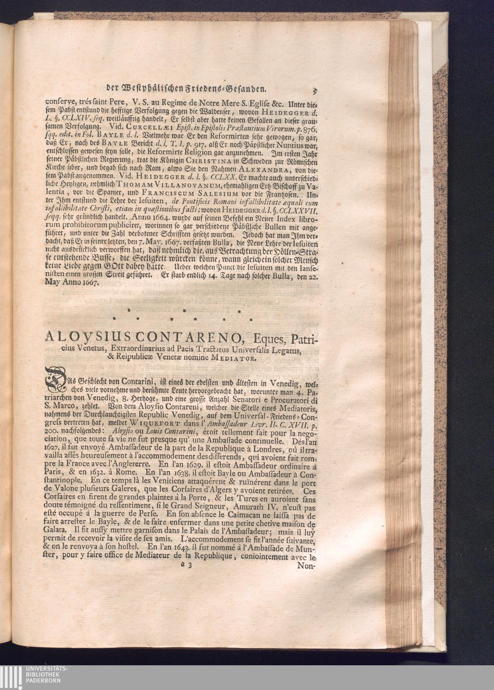 Aloysius Contareno, Eques Patricius Venetus, Extraordinarius ad Pacis Tractatus Universalis[...]