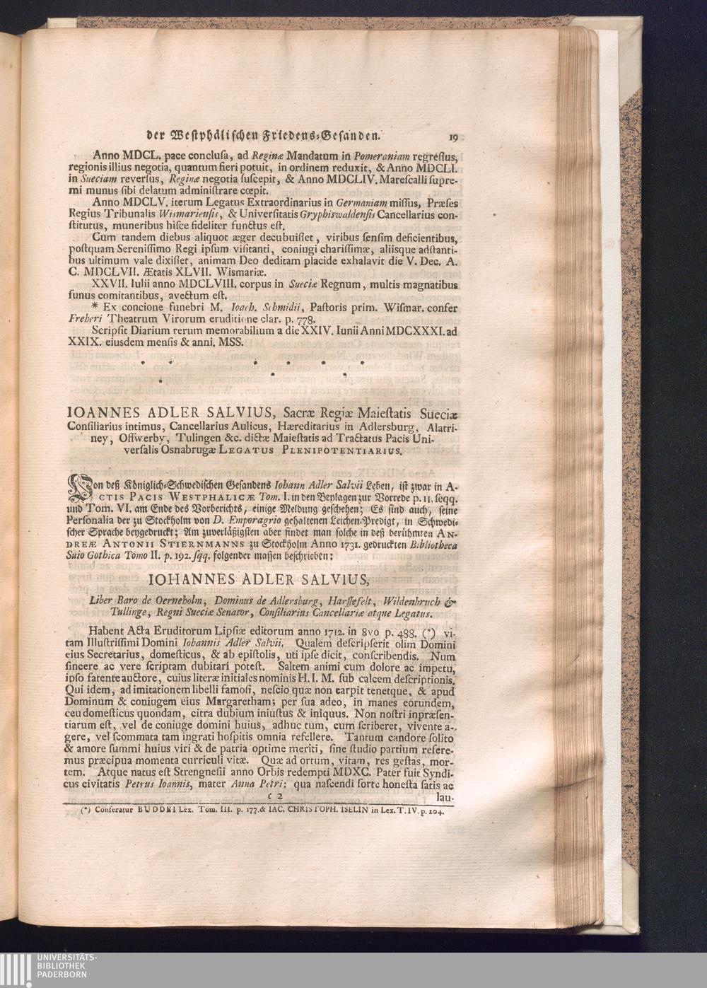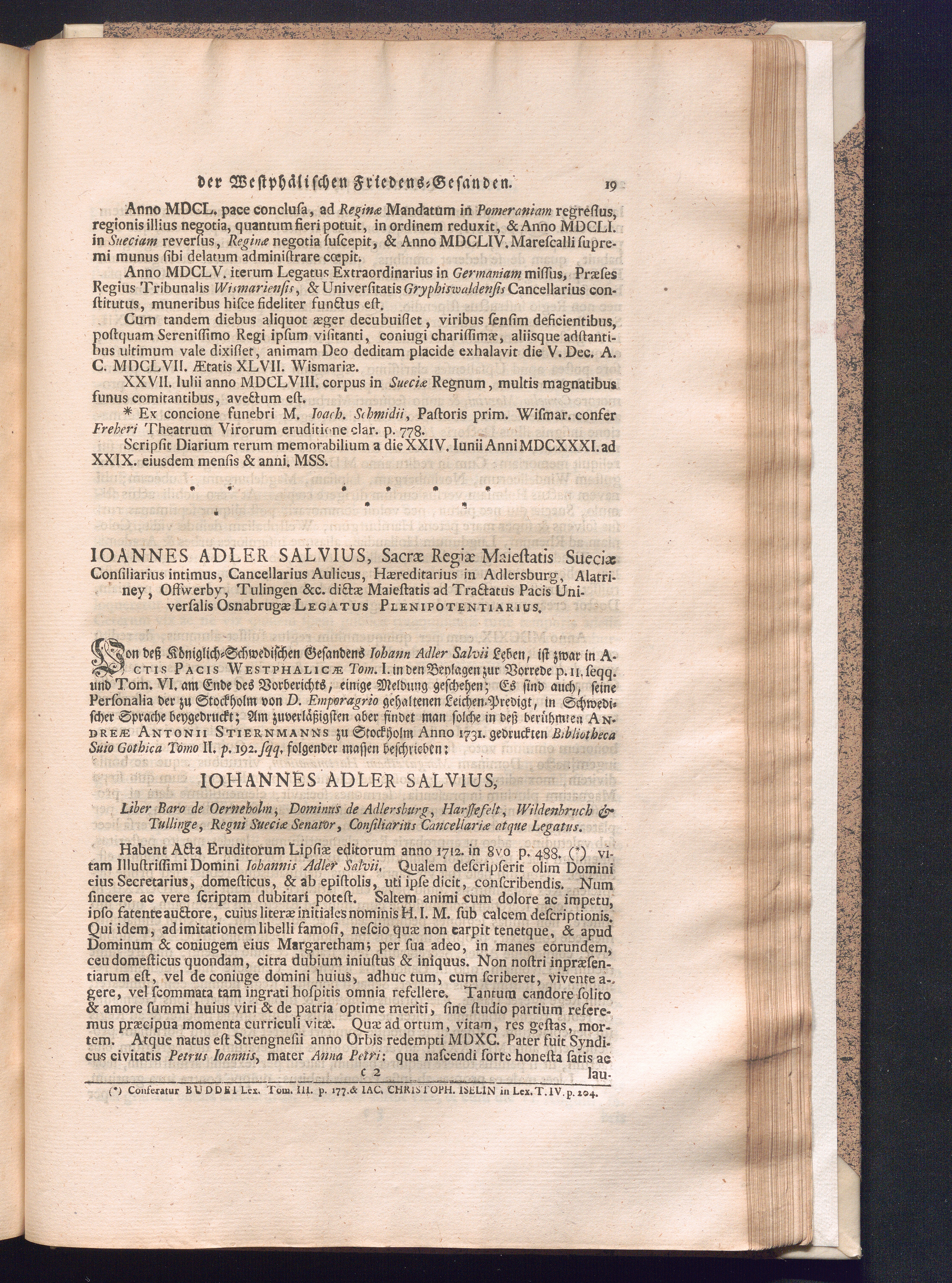 Iohannes Adler Salvius, Sacræ Regiæ Maiestatis Sueciæ Consiliarius intimus, Cancellarius[...]