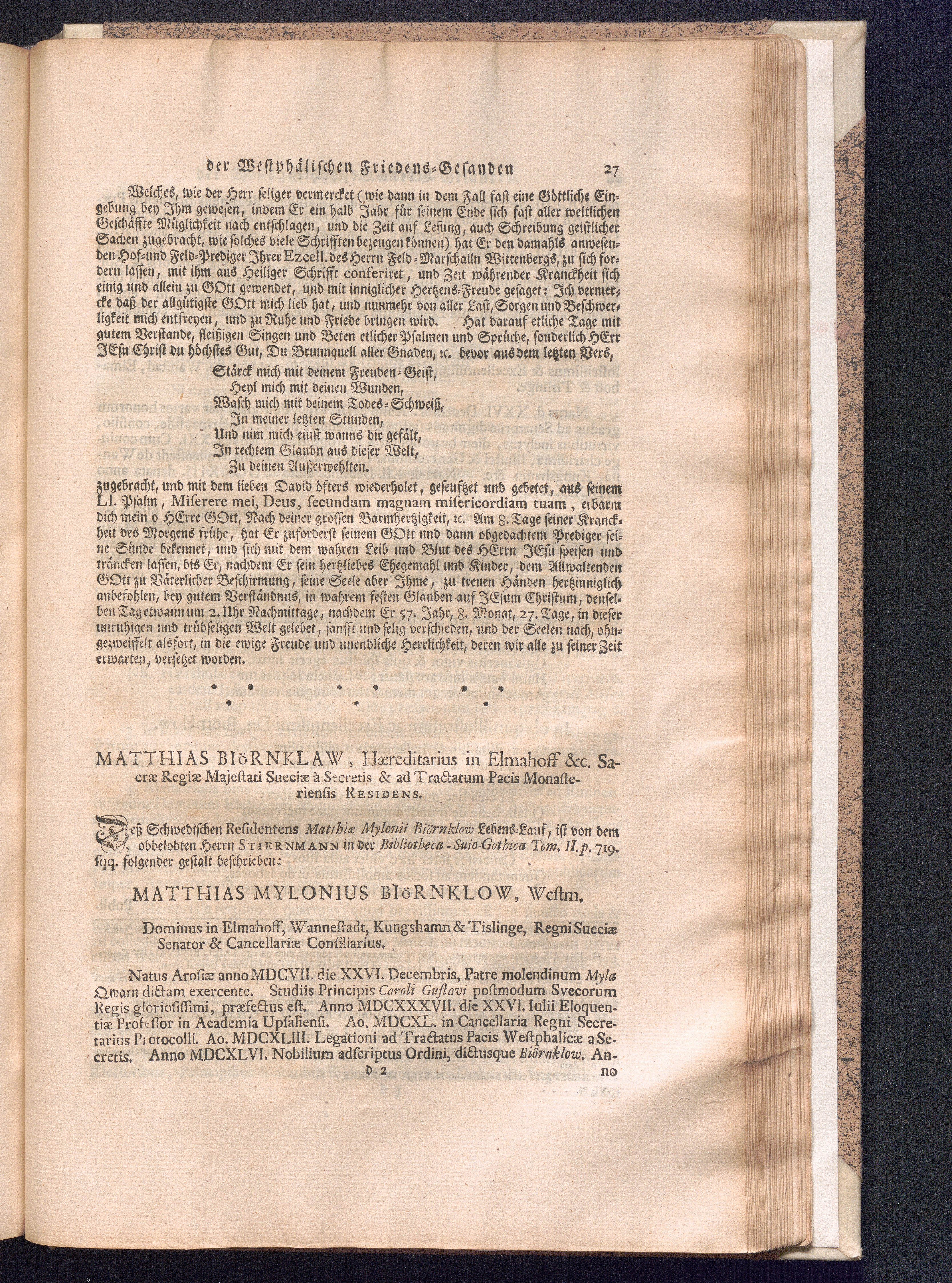 Matthias Biörnklaw, Hæreditarius in Elmahoff &c. Sacræ Regiæ Majestati Sueciæ à Secretis[...]
