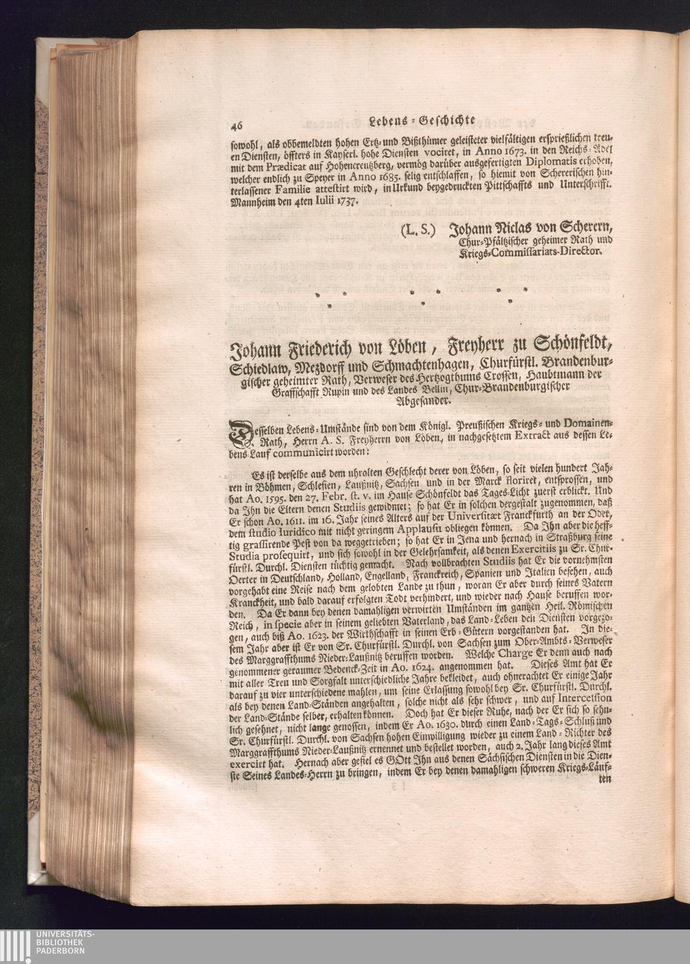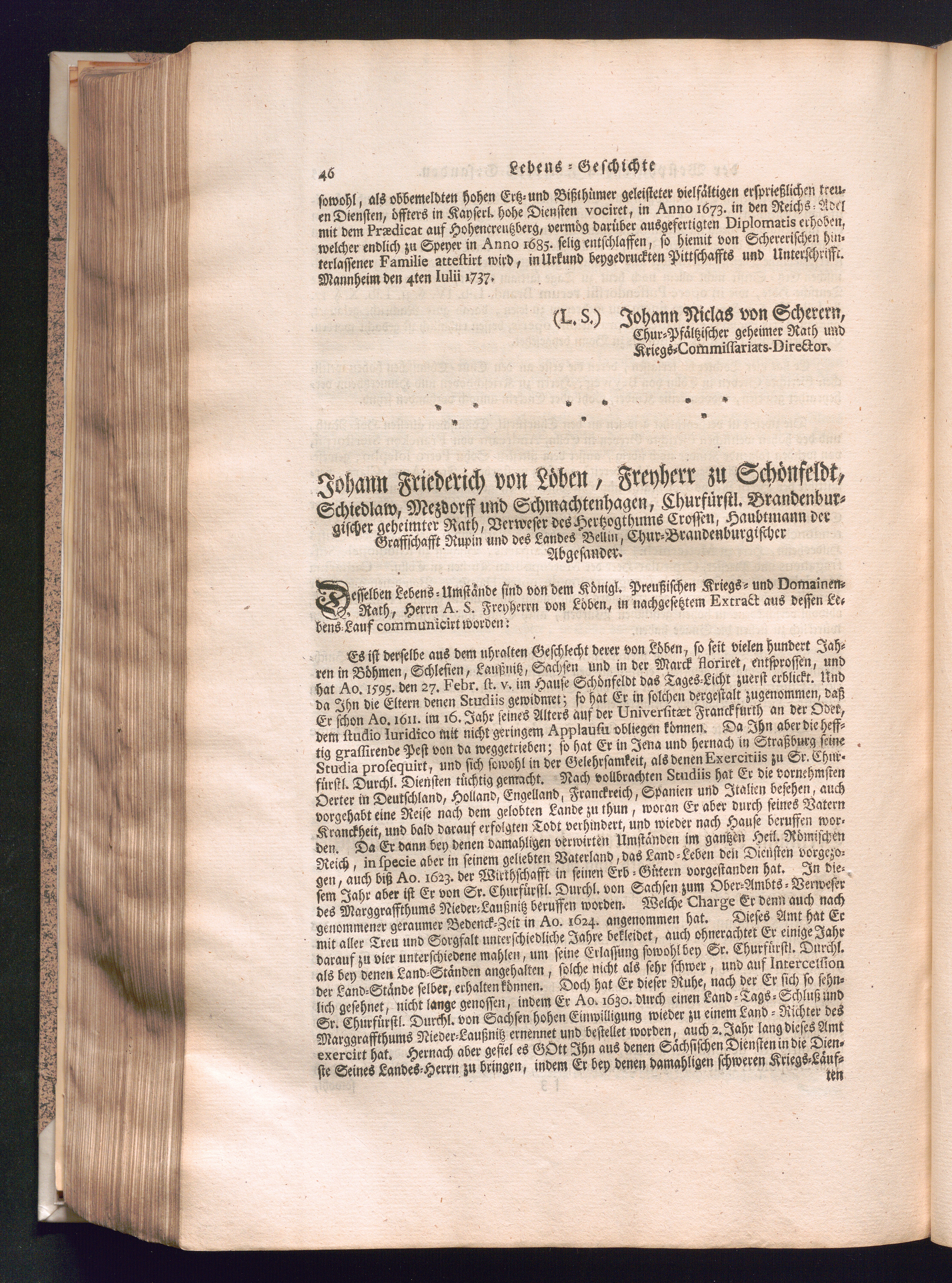 Johann Friederich von Löben, Freyherr zu Schönfeldt, Schiedlaw, Mezdorff und Schmachtenhagen,[...]