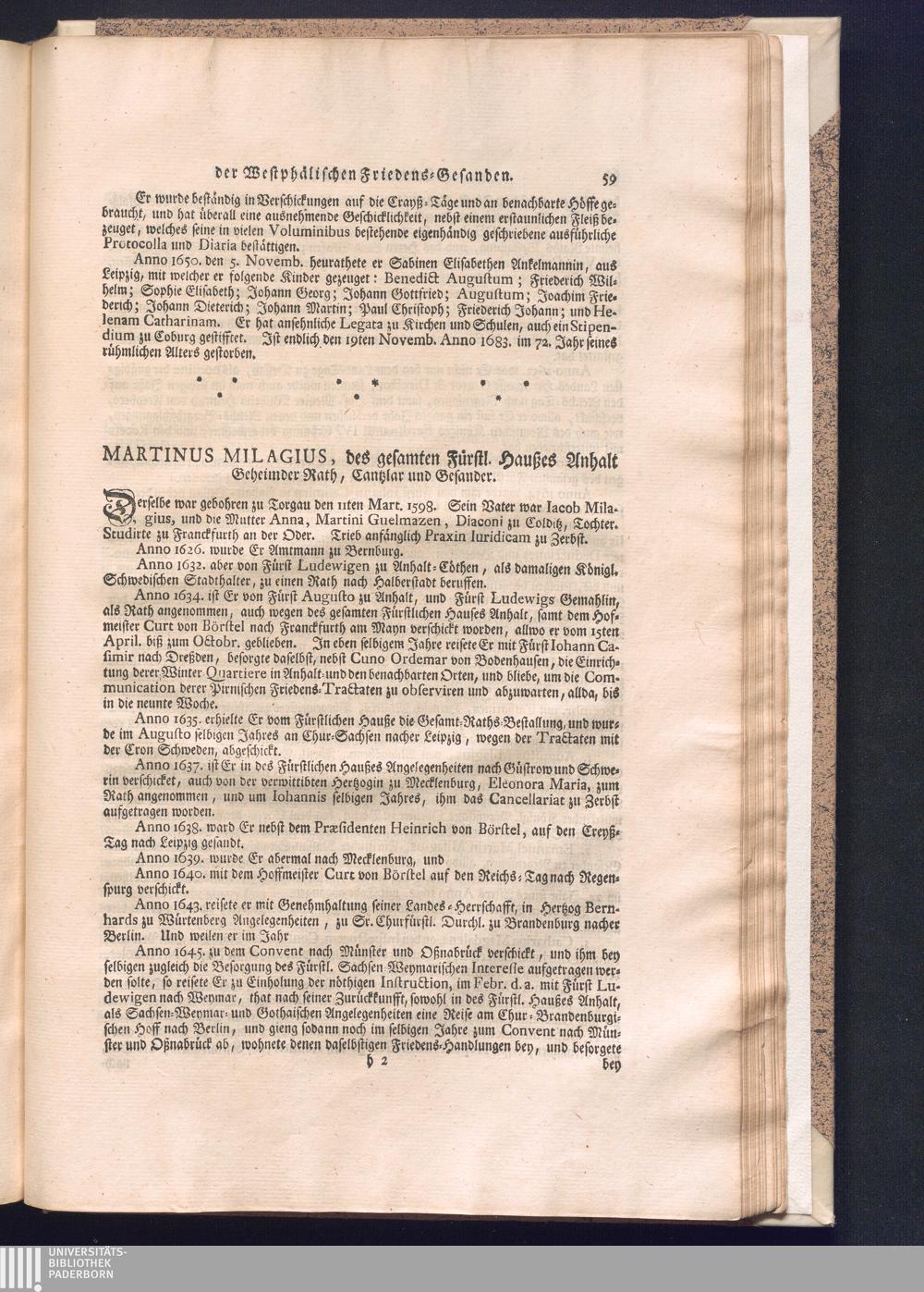Martinus Milagius, des gesamten Fürstl. Haußes Anhalt Geheimder Rath, Cantzlar und[...]