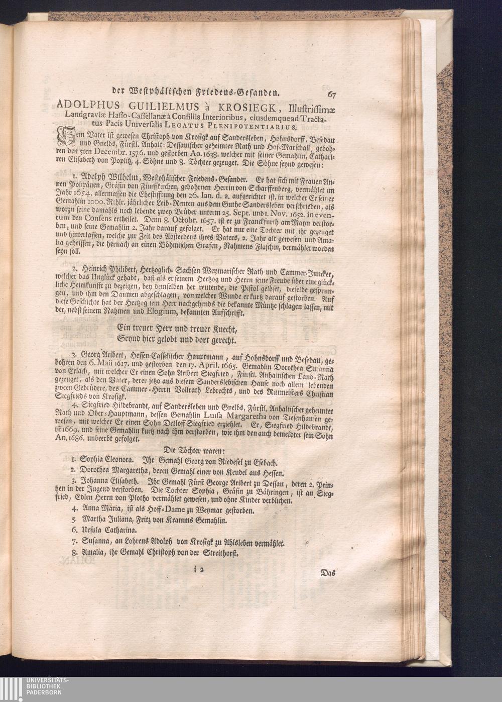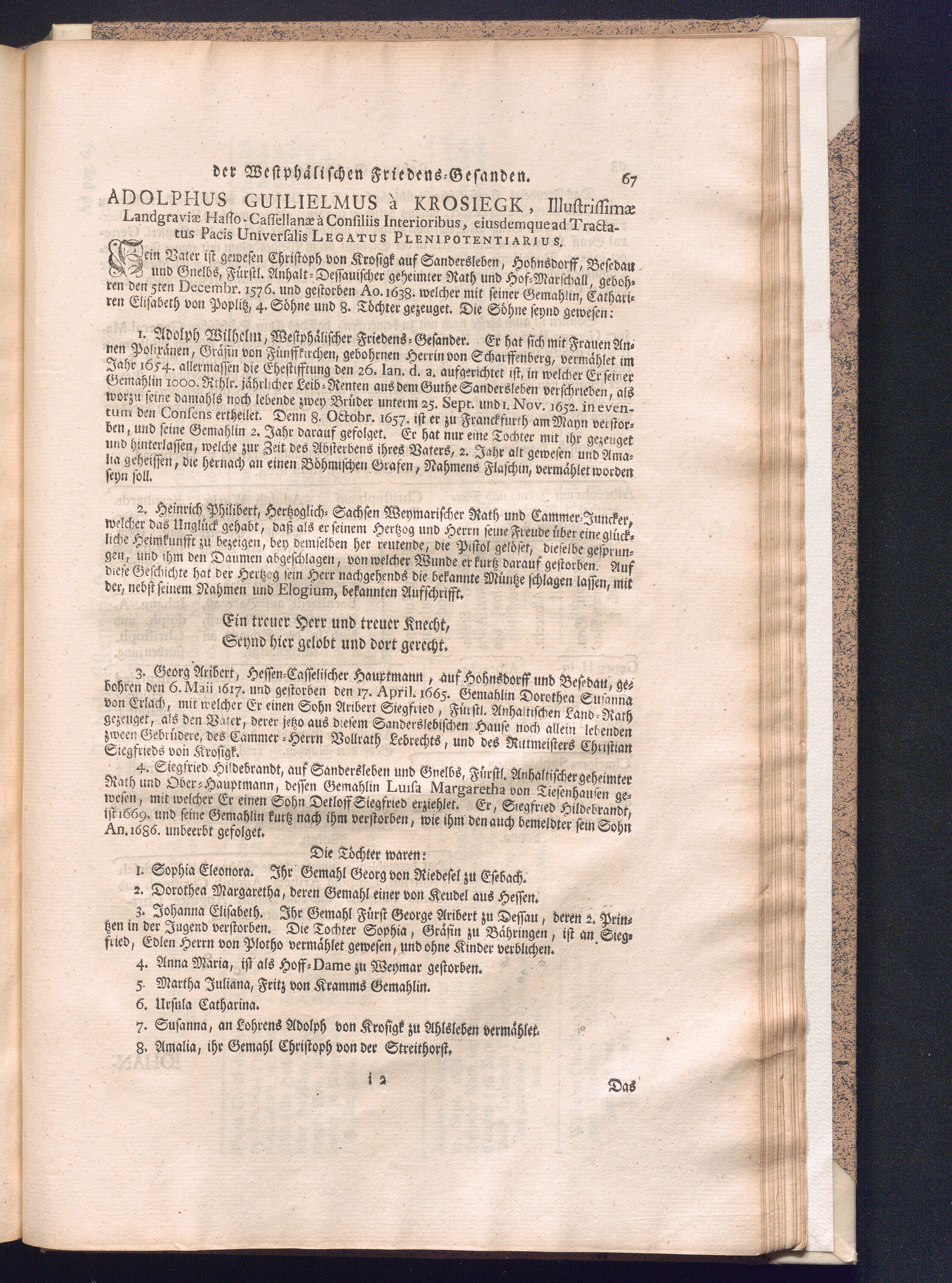 Adolphus Guilielmus à Krosiegk, Illustrissimæ Landgraviæ Hasso-Casselanæ à Consiliis[...]