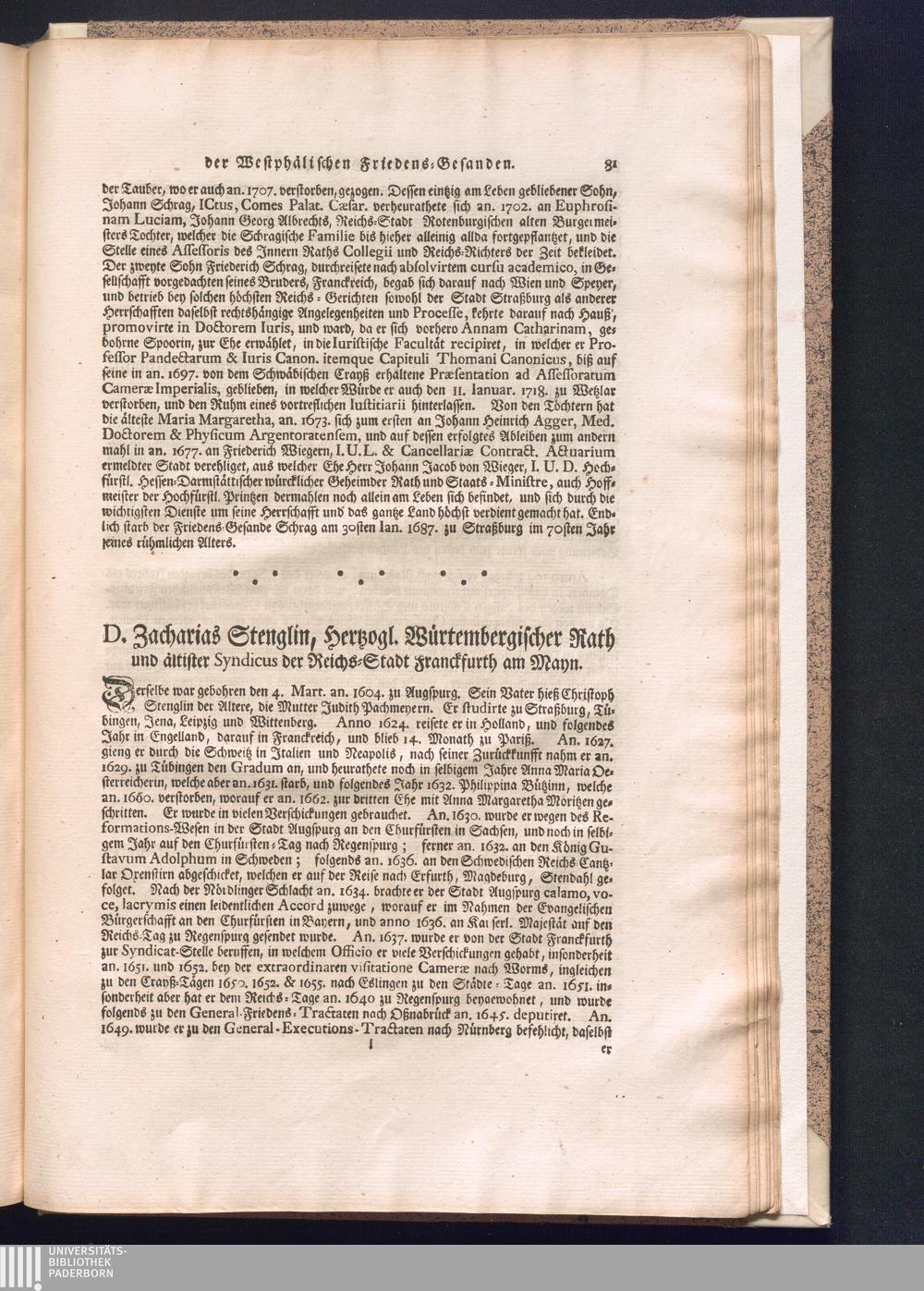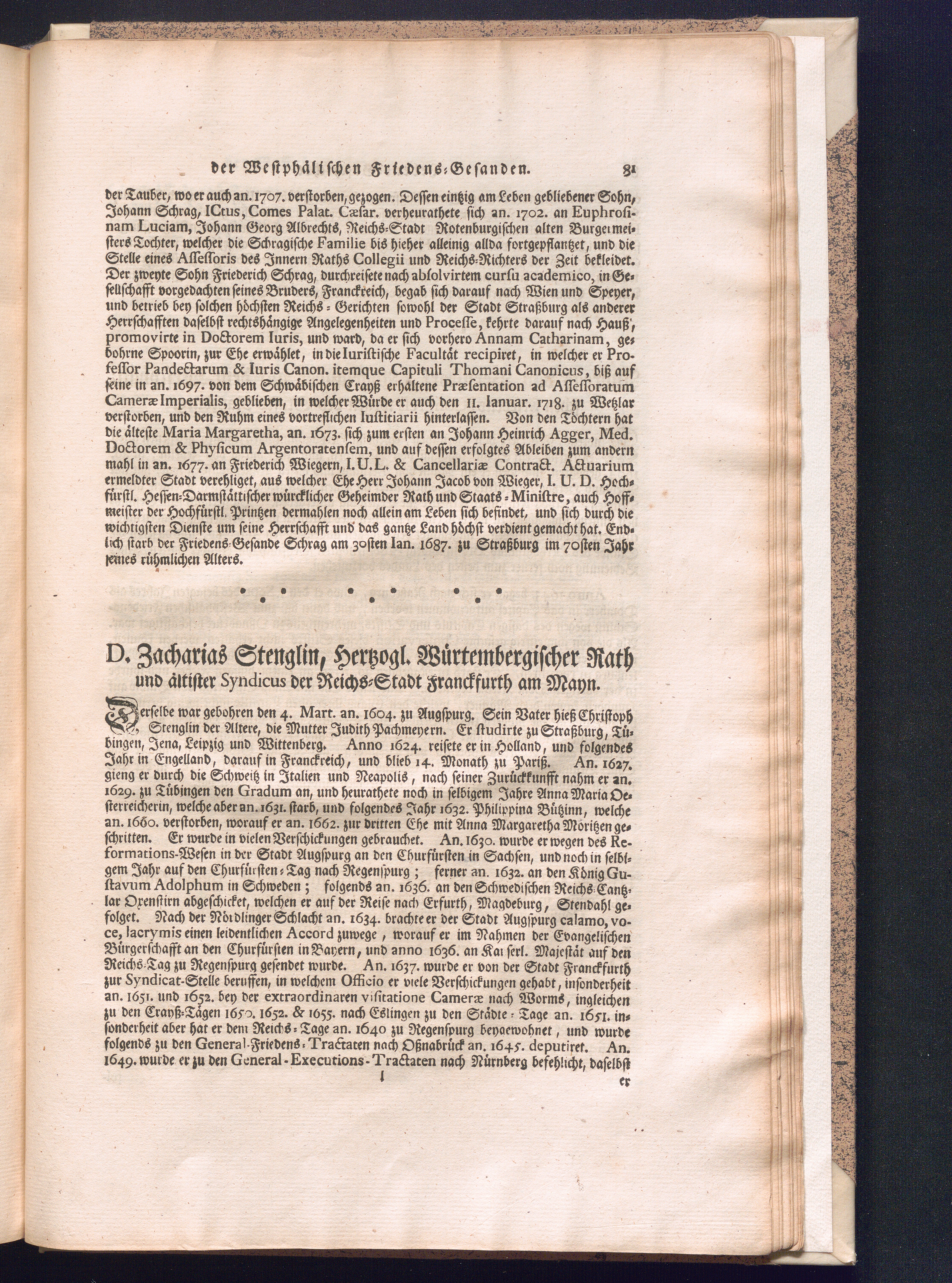 D. Zacharias Stenglin, Hertzogl. Würtembergischer Rath und ältester Syndicus der[...]