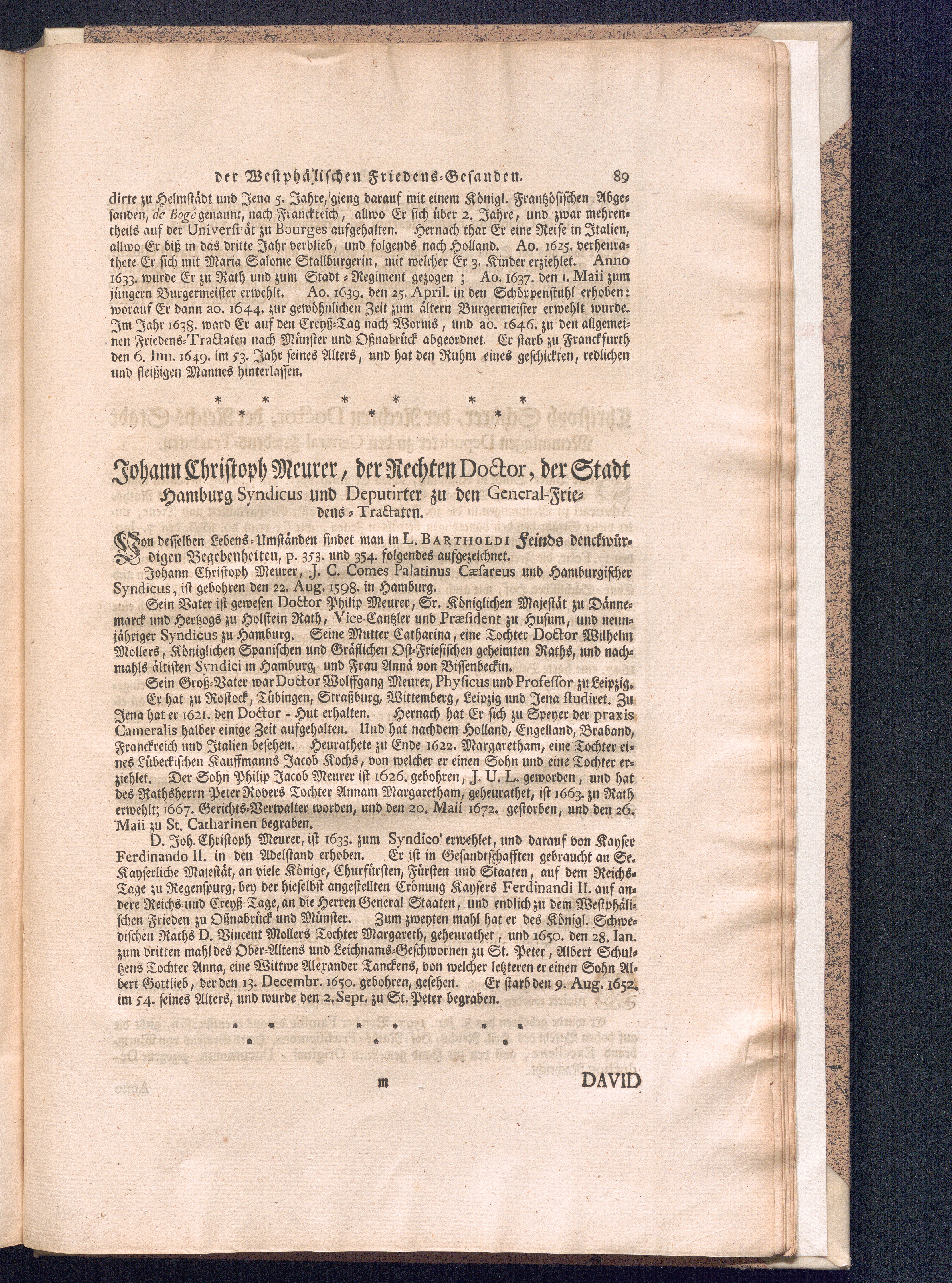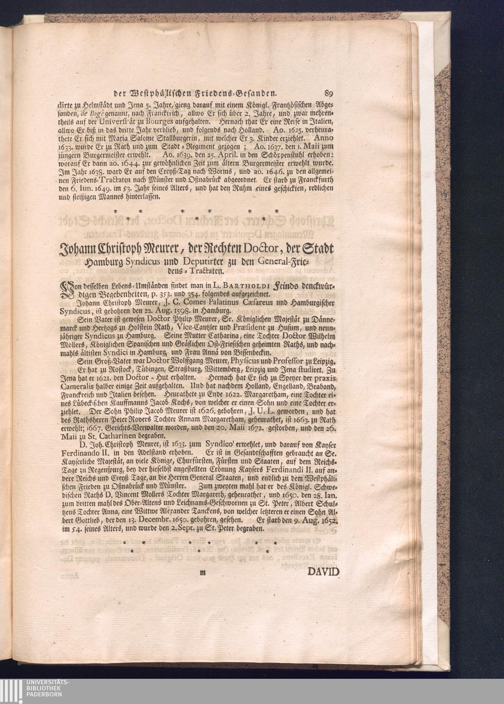 Johann Christoph Meurer, der Rechten Doctor, der Stadt Hamburg Syndicus und Deputirter[...]