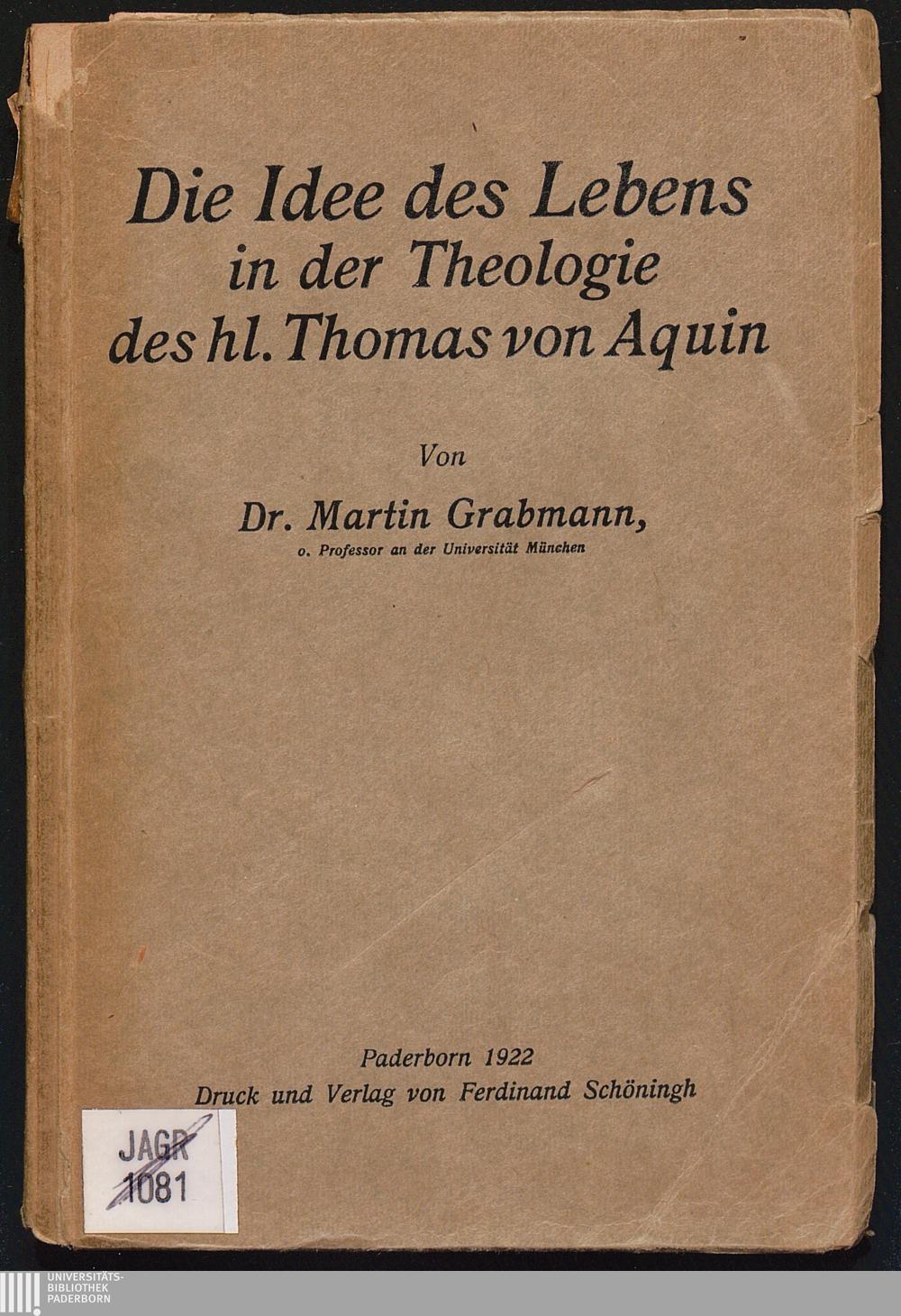 Die Idee des Lebens in der Theologie des hl. Thomas von Aquin / von Martin Grabmann