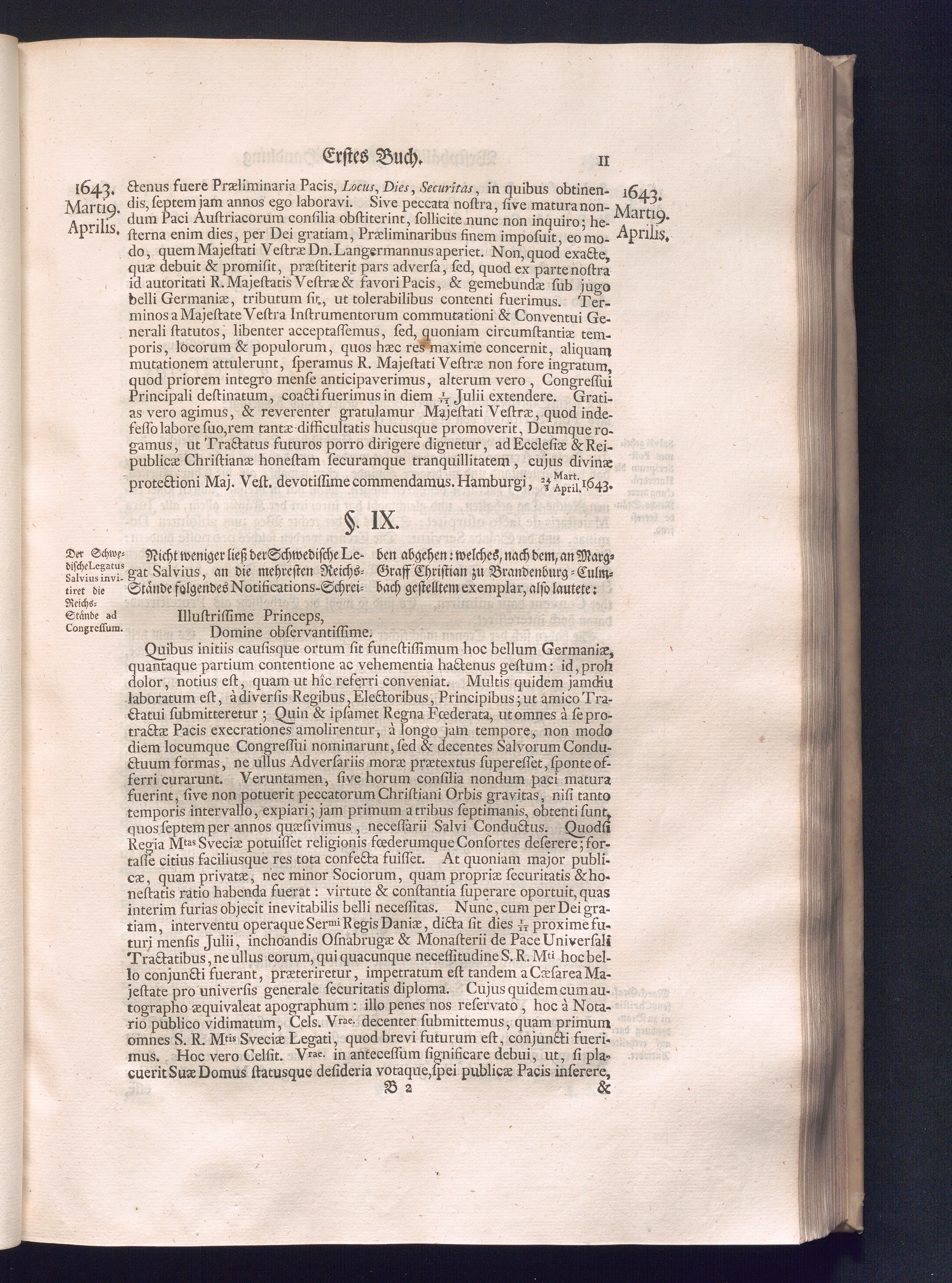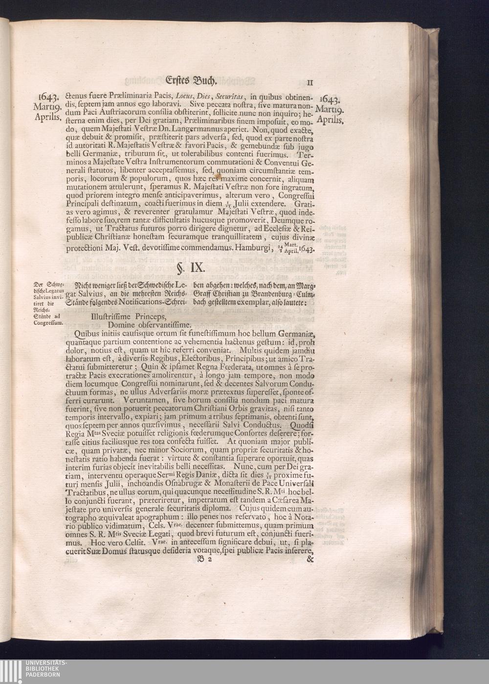 Erster Theil (1734) Worinnen enthalten, was vom Jahr 1643. biß in den Monath October Anno 1645. zwischen Jhro Römisch-Käyserlichen Majestät, dann den Beyden Cronen Franckreich und Schweden, ingleichen des Heiligen Römischen Reichs Chur-Fürsten, Fürsten und Ständen, zu Oßnabrück und Münster gehandelt worden