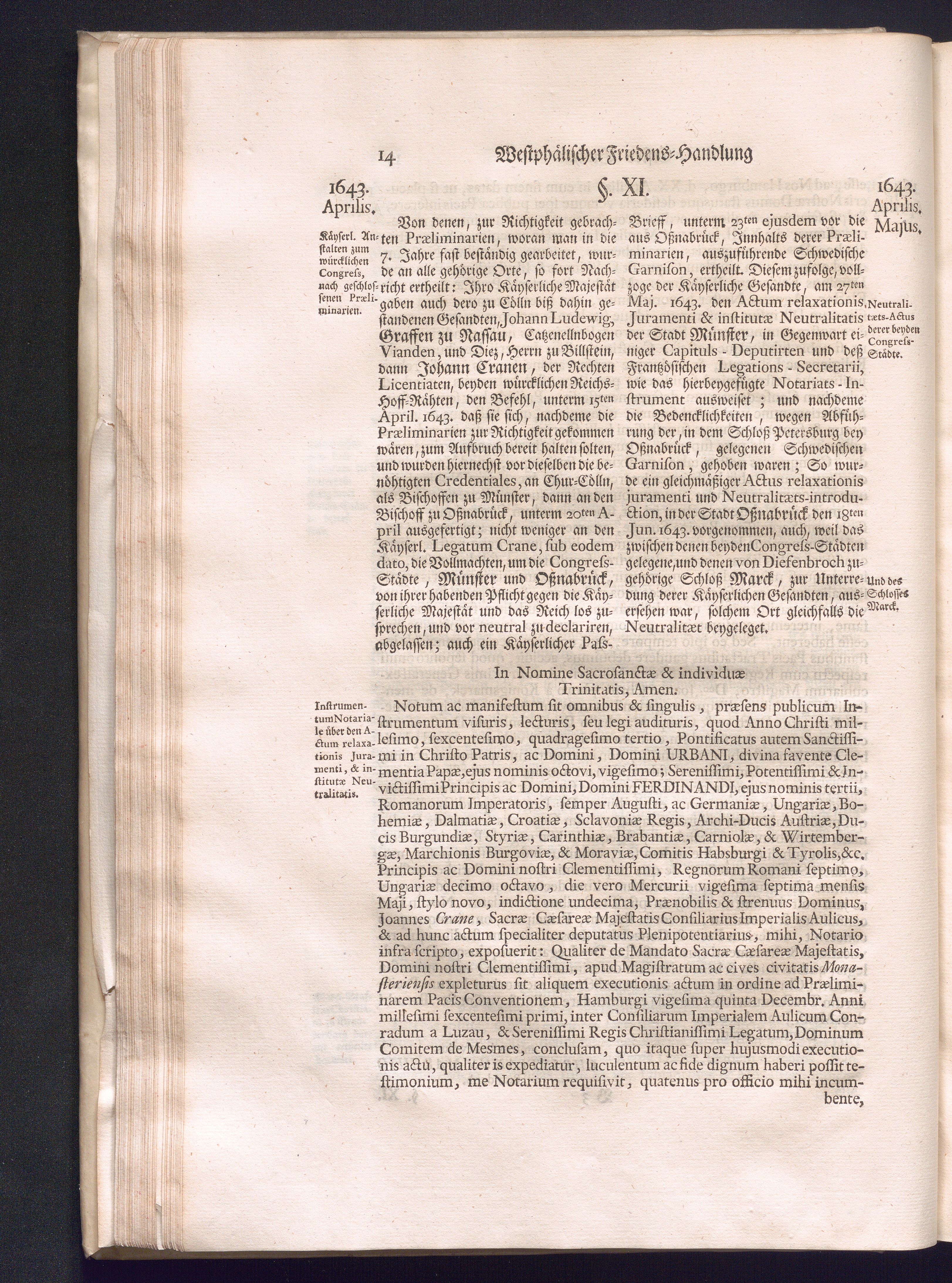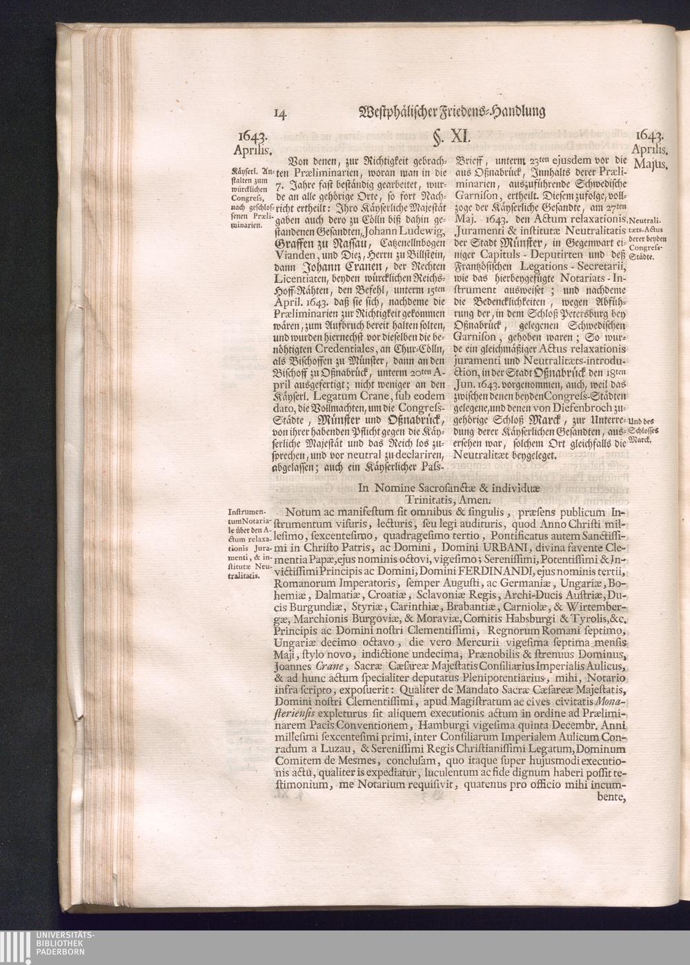 Erster Theil (1734) Worinnen enthalten, was vom Jahr 1643. biß in den Monath October Anno 1645. zwischen Jhro Römisch-Käyserlichen Majestät, dann den Beyden Cronen Franckreich und Schweden, ingleichen des Heiligen Römischen Reichs Chur-Fürsten, Fürsten und Ständen, zu Oßnabrück und Münster gehandelt worden