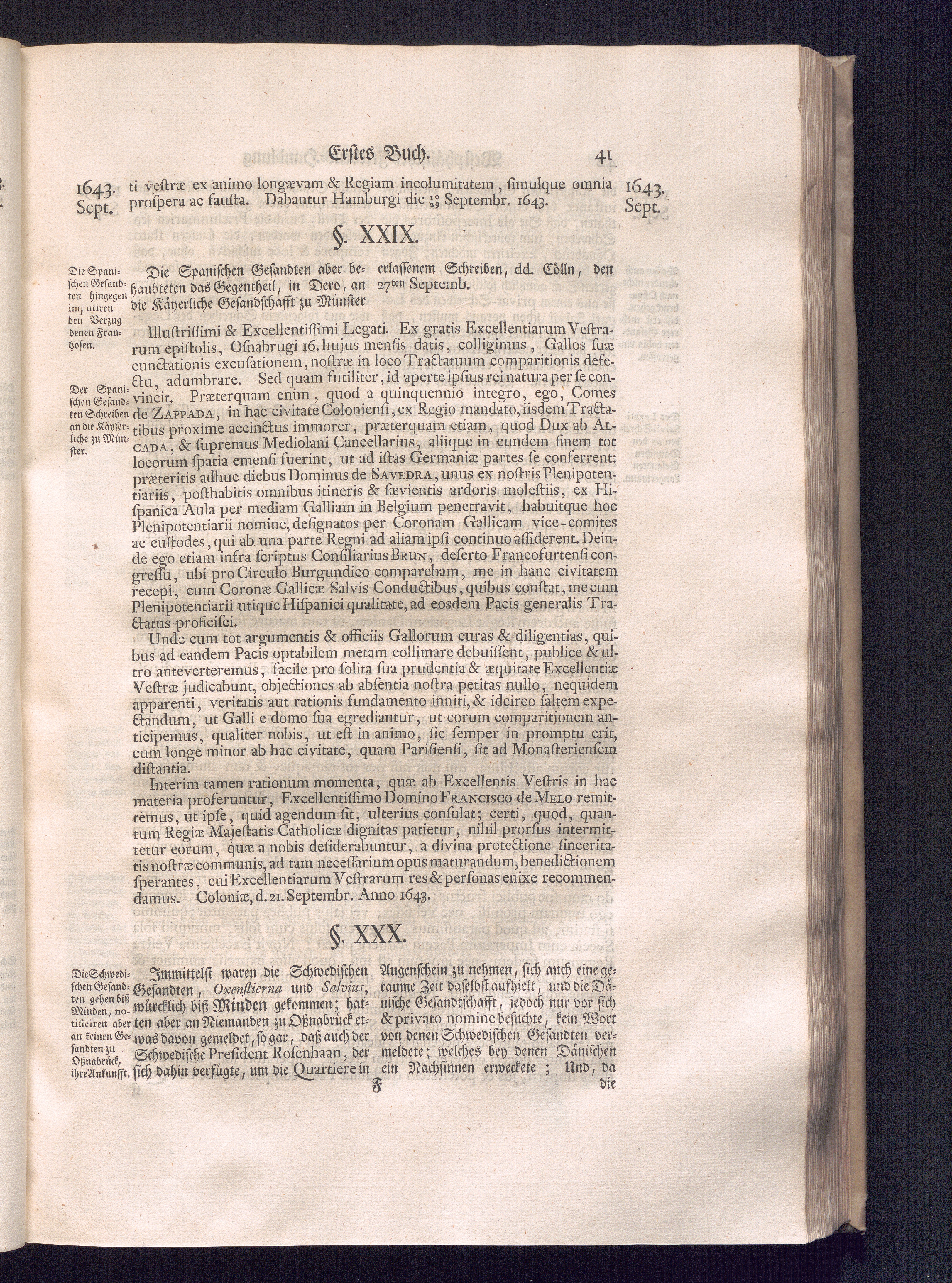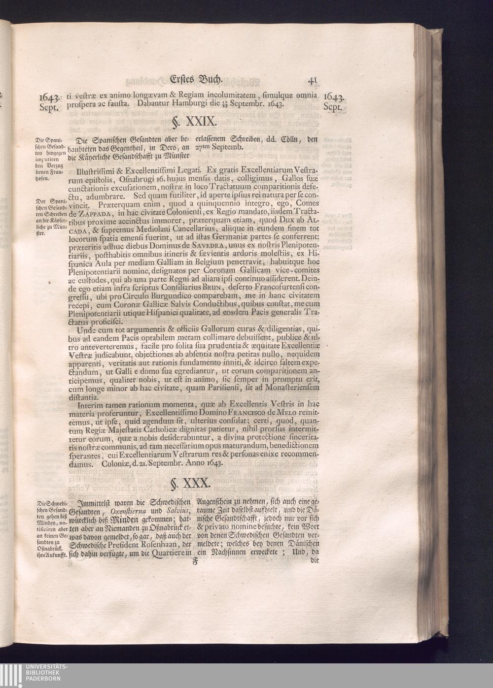 Erster Theil (1734) Worinnen enthalten, was vom Jahr 1643. biß in den Monath October Anno 1645. zwischen Jhro Römisch-Käyserlichen Majestät, dann den Beyden Cronen Franckreich und Schweden, ingleichen des Heiligen Römischen Reichs Chur-Fürsten, Fürsten und Ständen, zu Oßnabrück und Münster gehandelt worden