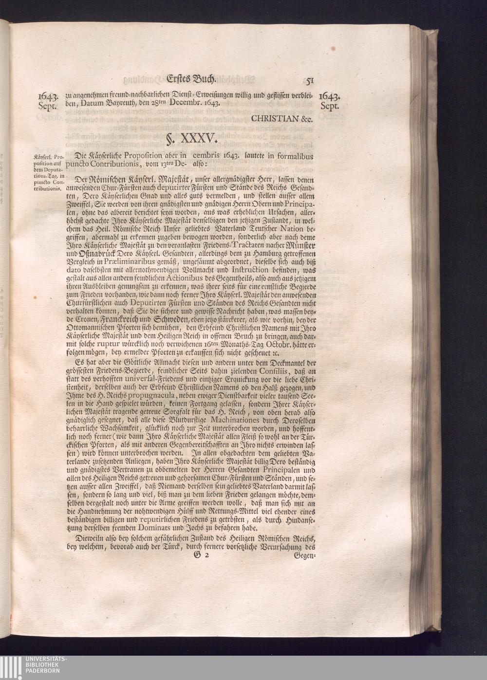 Erster Theil (1734) Worinnen enthalten, was vom Jahr 1643. biß in den Monath October Anno 1645. zwischen Jhro Römisch-Käyserlichen Majestät, dann den Beyden Cronen Franckreich und Schweden, ingleichen des Heiligen Römischen Reichs Chur-Fürsten, Fürsten und Ständen, zu Oßnabrück und Münster gehandelt worden