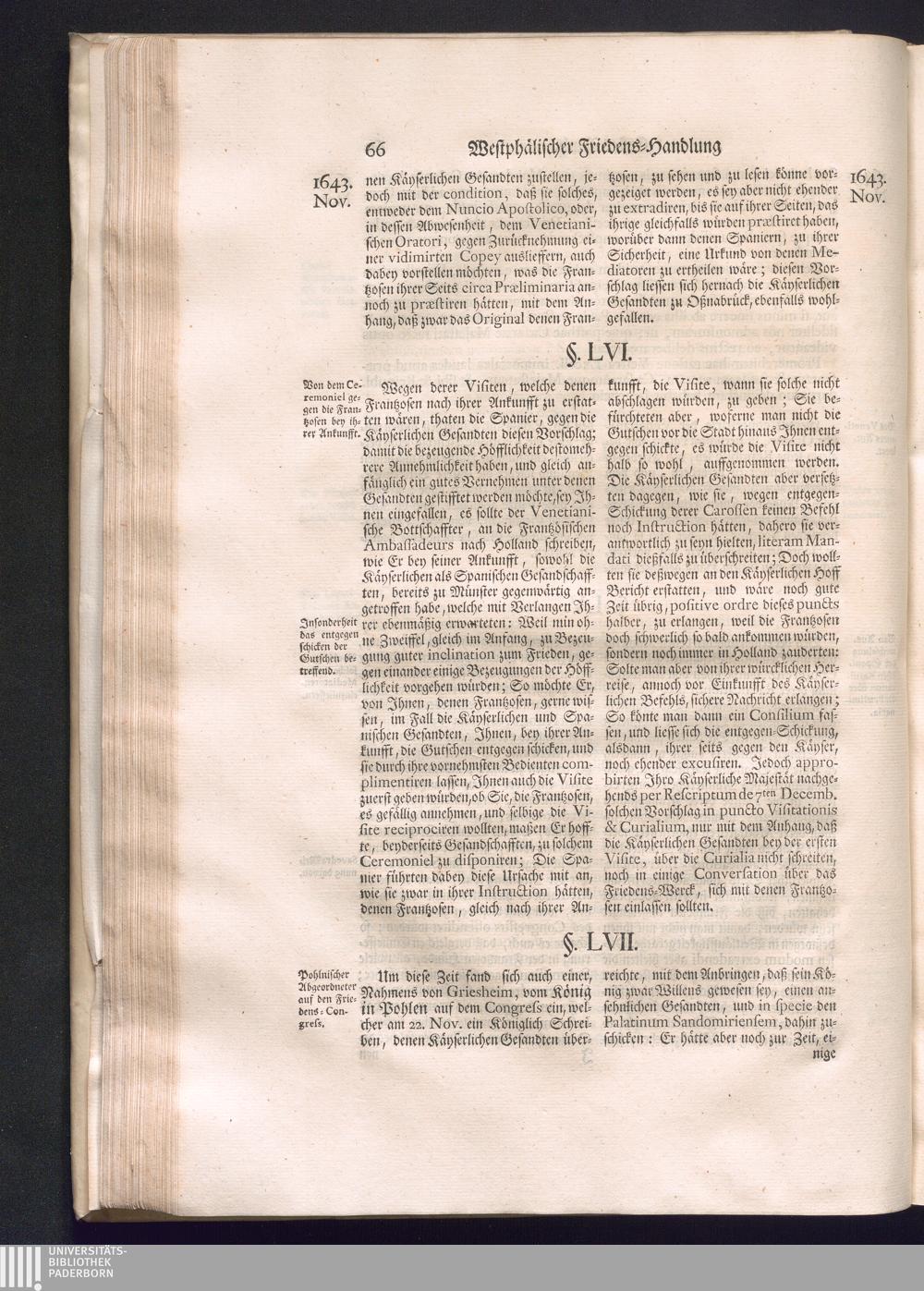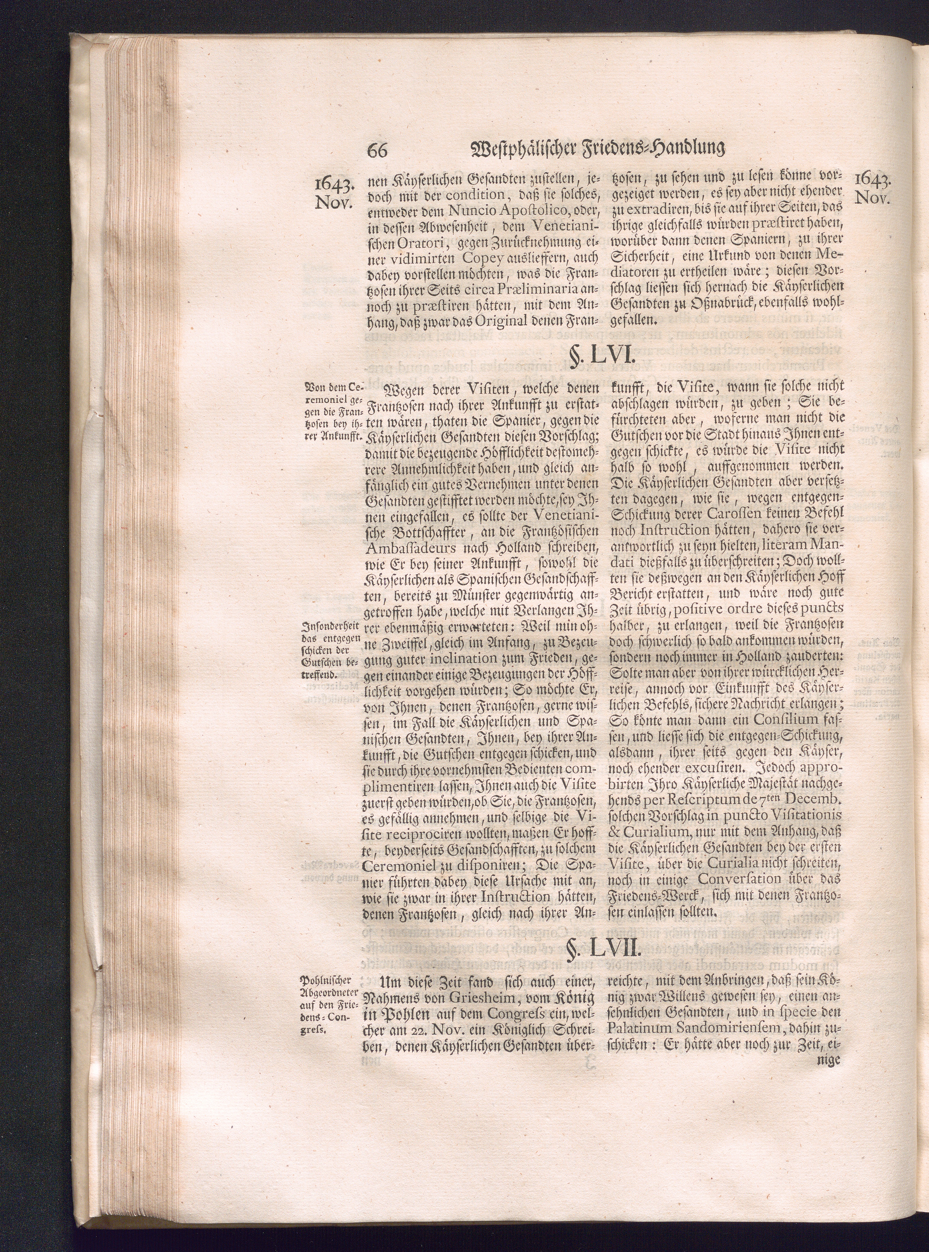 Erster Theil (1734) Worinnen enthalten, was vom Jahr 1643. biß in den Monath October Anno 1645. zwischen Jhro Römisch-Käyserlichen Majestät, dann den Beyden Cronen Franckreich und Schweden, ingleichen des Heiligen Römischen Reichs Chur-Fürsten, Fürsten und Ständen, zu Oßnabrück und Münster gehandelt worden
