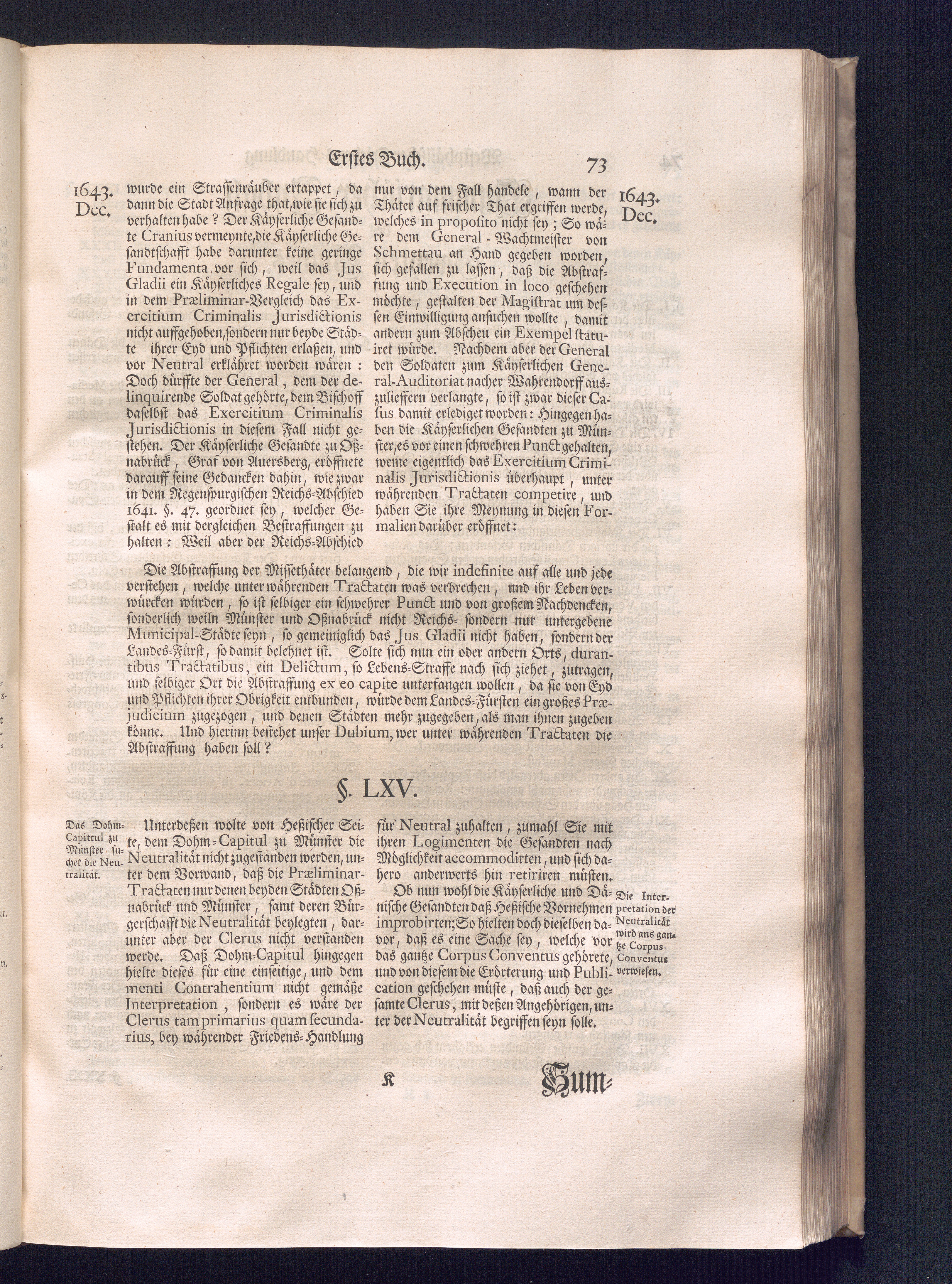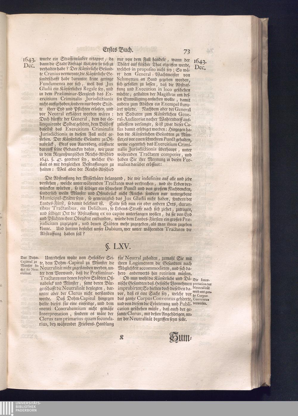 Erster Theil (1734) Worinnen enthalten, was vom Jahr 1643. biß in den Monath October Anno 1645. zwischen Jhro Römisch-Käyserlichen Majestät, dann den Beyden Cronen Franckreich und Schweden, ingleichen des Heiligen Römischen Reichs Chur-Fürsten, Fürsten und Ständen, zu Oßnabrück und Münster gehandelt worden