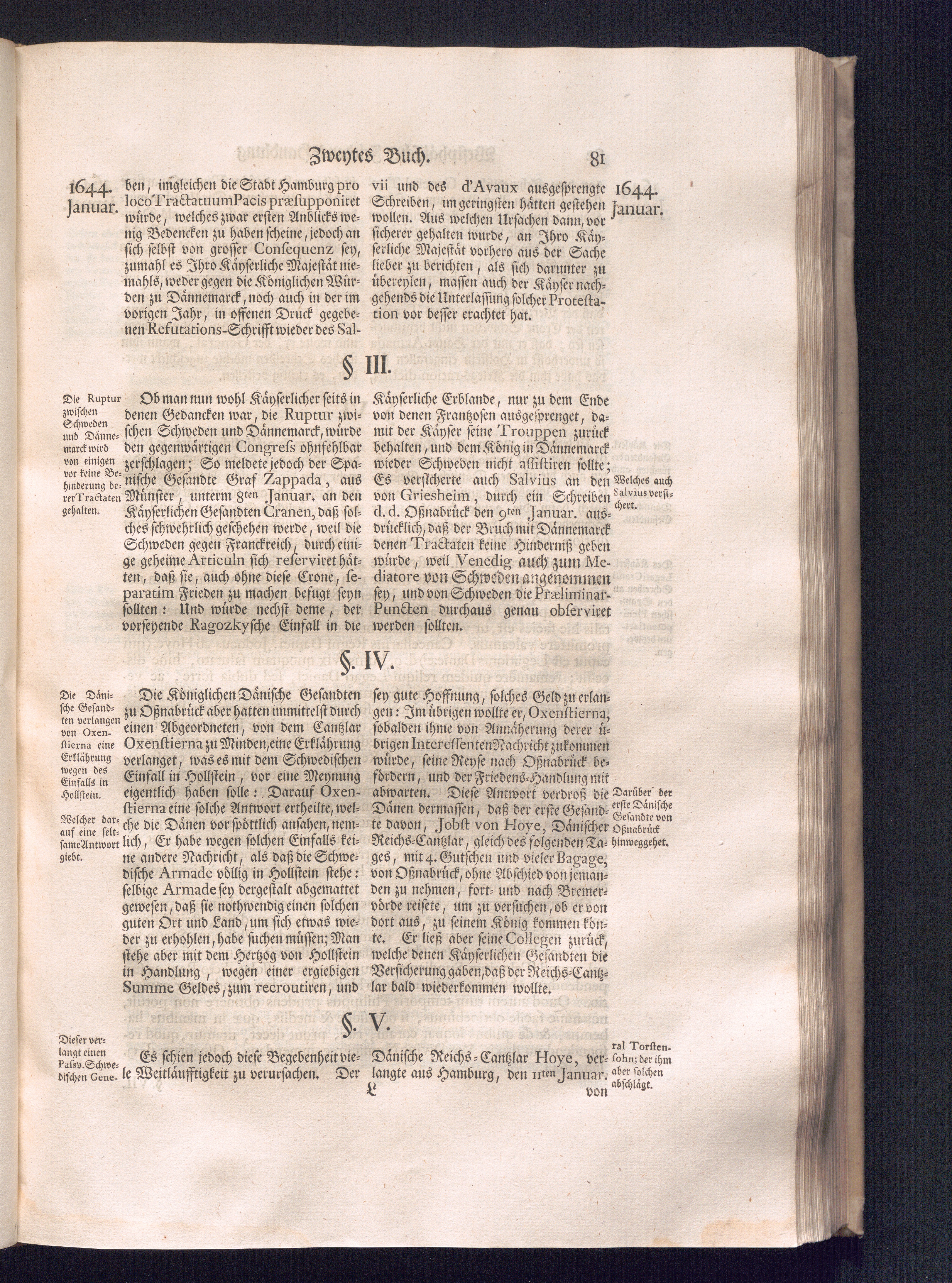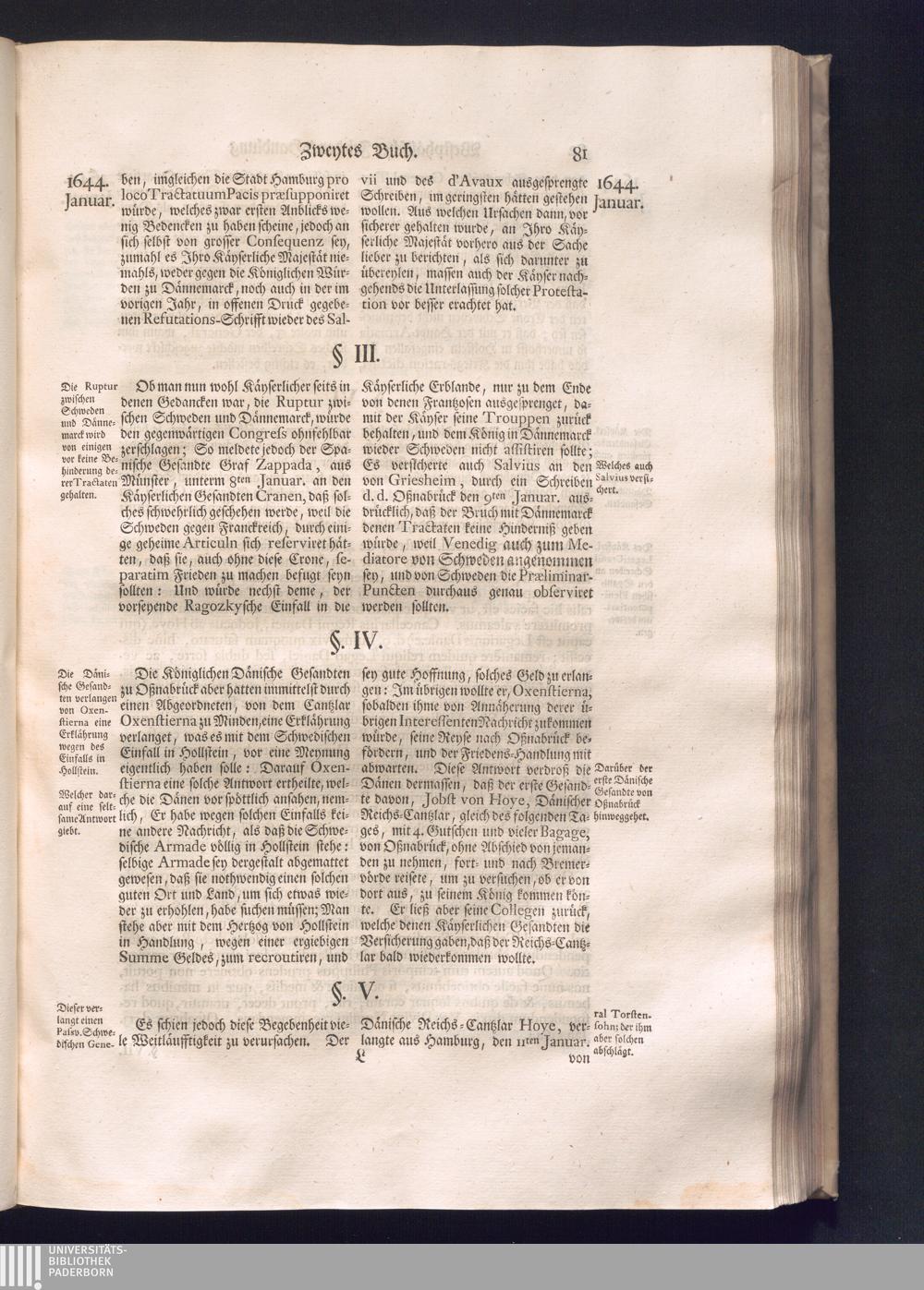 Erster Theil (1734) Worinnen enthalten, was vom Jahr 1643. biß in den Monath October Anno 1645. zwischen Jhro Römisch-Käyserlichen Majestät, dann den Beyden Cronen Franckreich und Schweden, ingleichen des Heiligen Römischen Reichs Chur-Fürsten, Fürsten und Ständen, zu Oßnabrück und Münster gehandelt worden