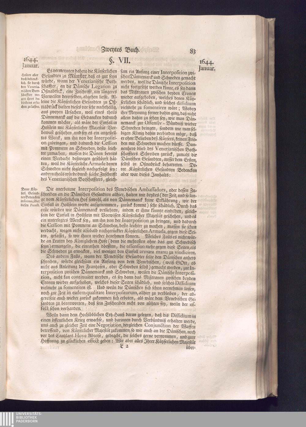 Erster Theil (1734) Worinnen enthalten, was vom Jahr 1643. biß in den Monath October Anno 1645. zwischen Jhro Römisch-Käyserlichen Majestät, dann den Beyden Cronen Franckreich und Schweden, ingleichen des Heiligen Römischen Reichs Chur-Fürsten, Fürsten und Ständen, zu Oßnabrück und Münster gehandelt worden
