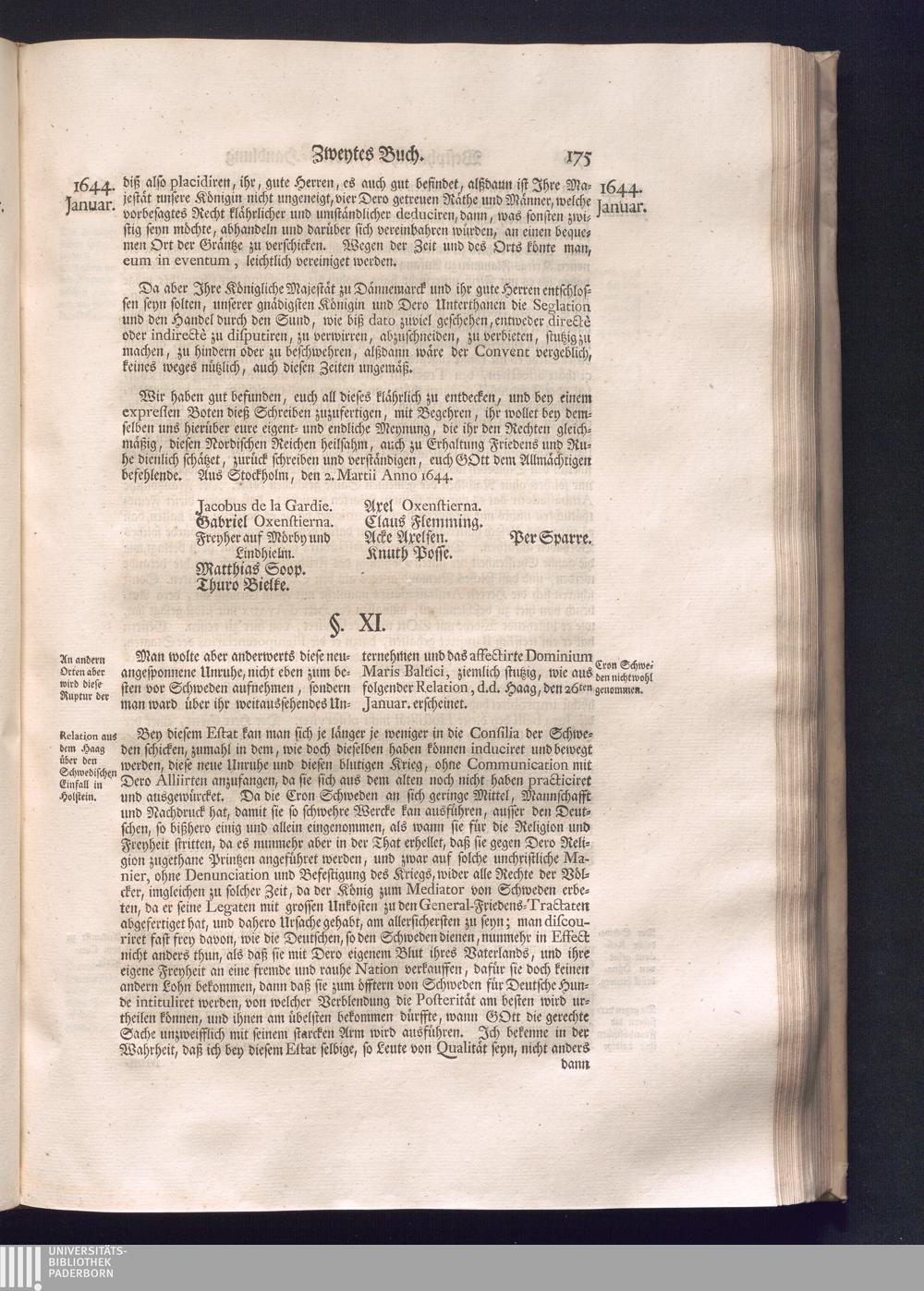 Erster Theil (1734) Worinnen enthalten, was vom Jahr 1643. biß in den Monath October Anno 1645. zwischen Jhro Römisch-Käyserlichen Majestät, dann den Beyden Cronen Franckreich und Schweden, ingleichen des Heiligen Römischen Reichs Chur-Fürsten, Fürsten und Ständen, zu Oßnabrück und Münster gehandelt worden