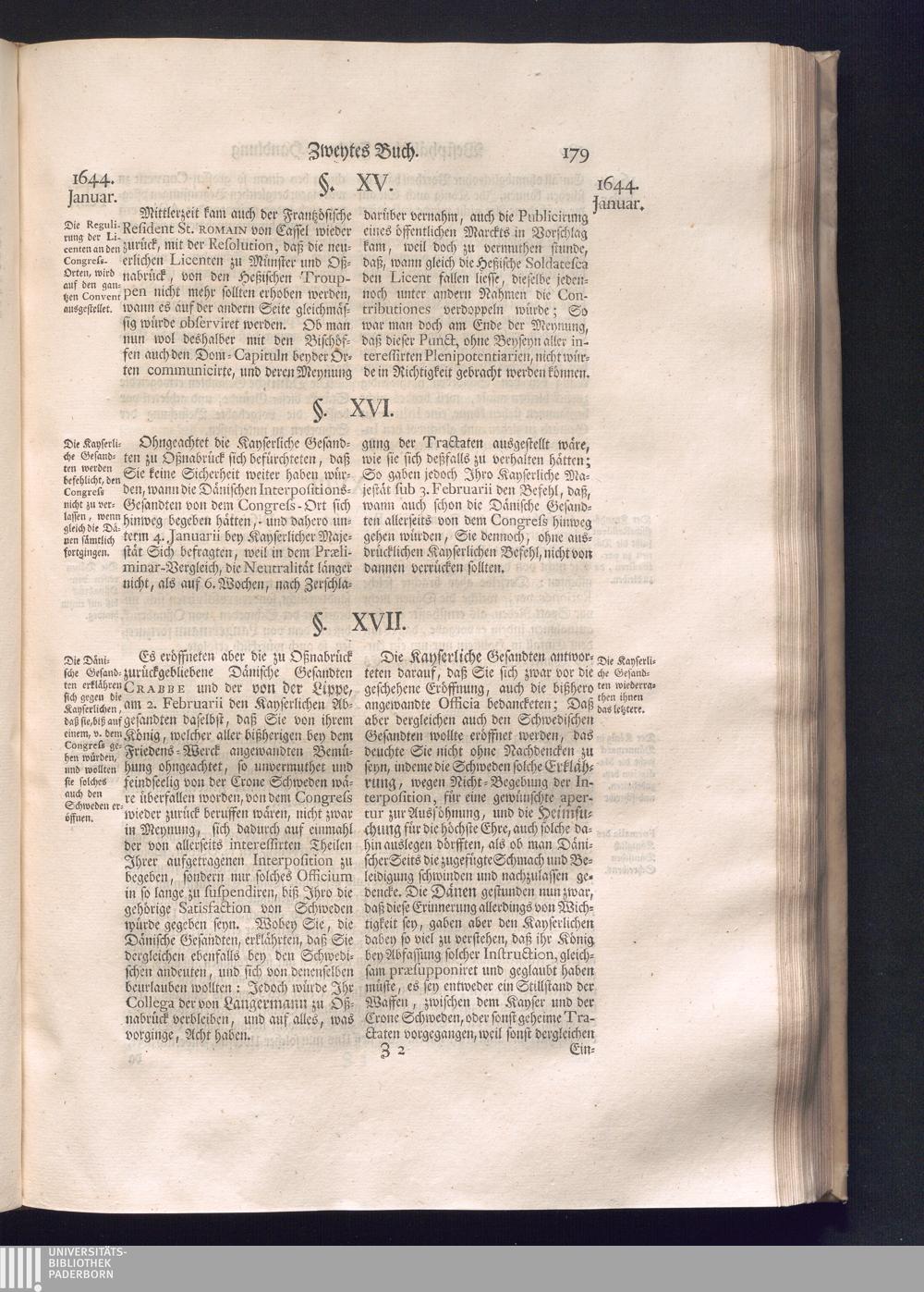 Erster Theil (1734) Worinnen enthalten, was vom Jahr 1643. biß in den Monath October Anno 1645. zwischen Jhro Römisch-Käyserlichen Majestät, dann den Beyden Cronen Franckreich und Schweden, ingleichen des Heiligen Römischen Reichs Chur-Fürsten, Fürsten und Ständen, zu Oßnabrück und Münster gehandelt worden