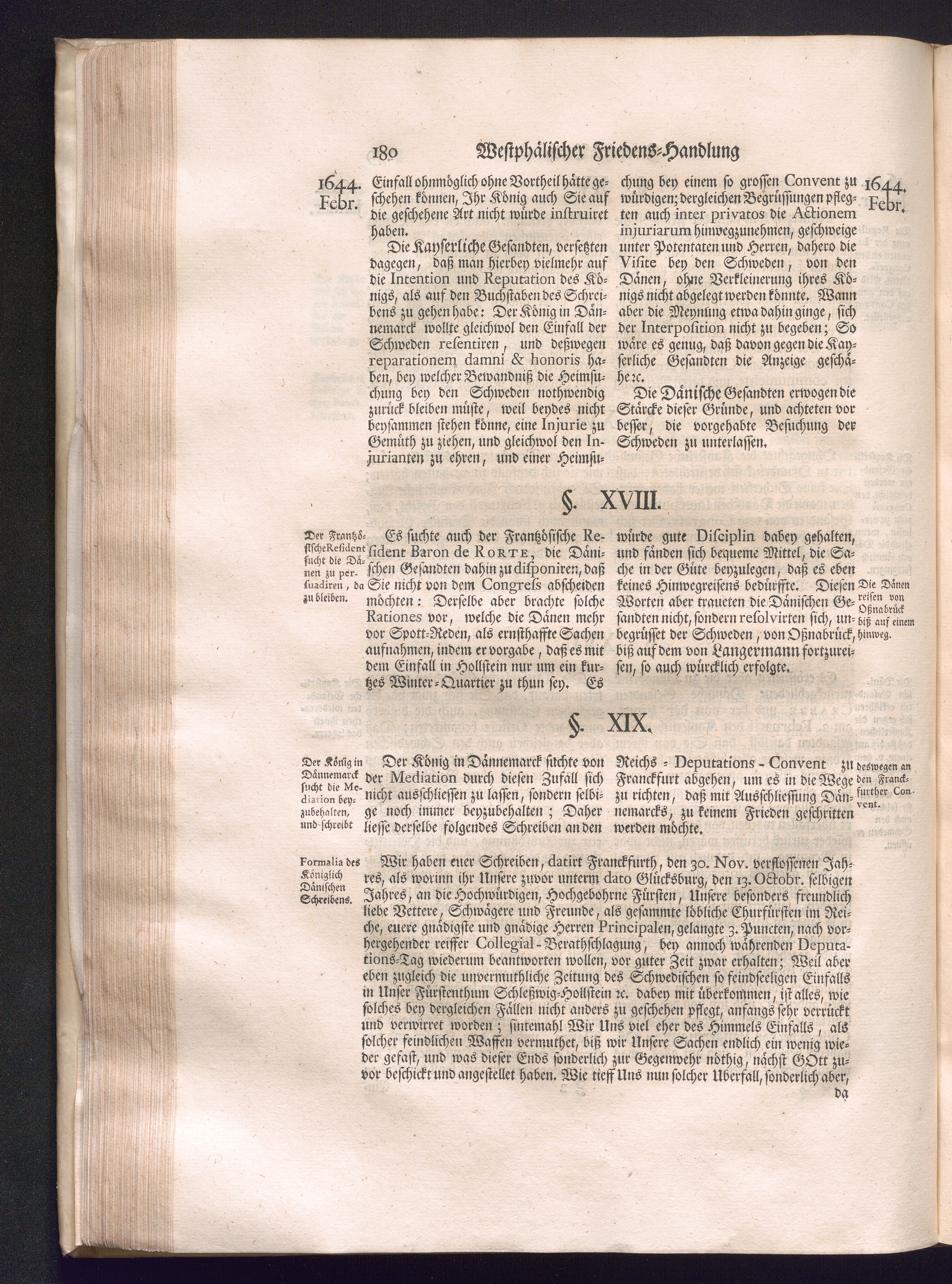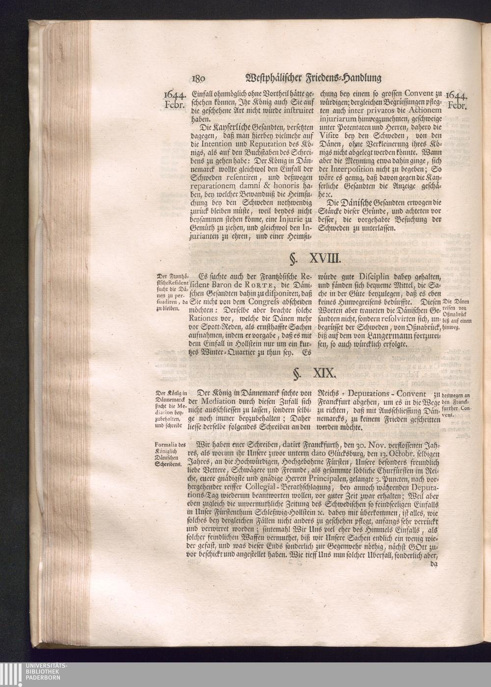 Erster Theil (1734) Worinnen enthalten, was vom Jahr 1643. biß in den Monath October Anno 1645. zwischen Jhro Römisch-Käyserlichen Majestät, dann den Beyden Cronen Franckreich und Schweden, ingleichen des Heiligen Römischen Reichs Chur-Fürsten, Fürsten und Ständen, zu Oßnabrück und Münster gehandelt worden