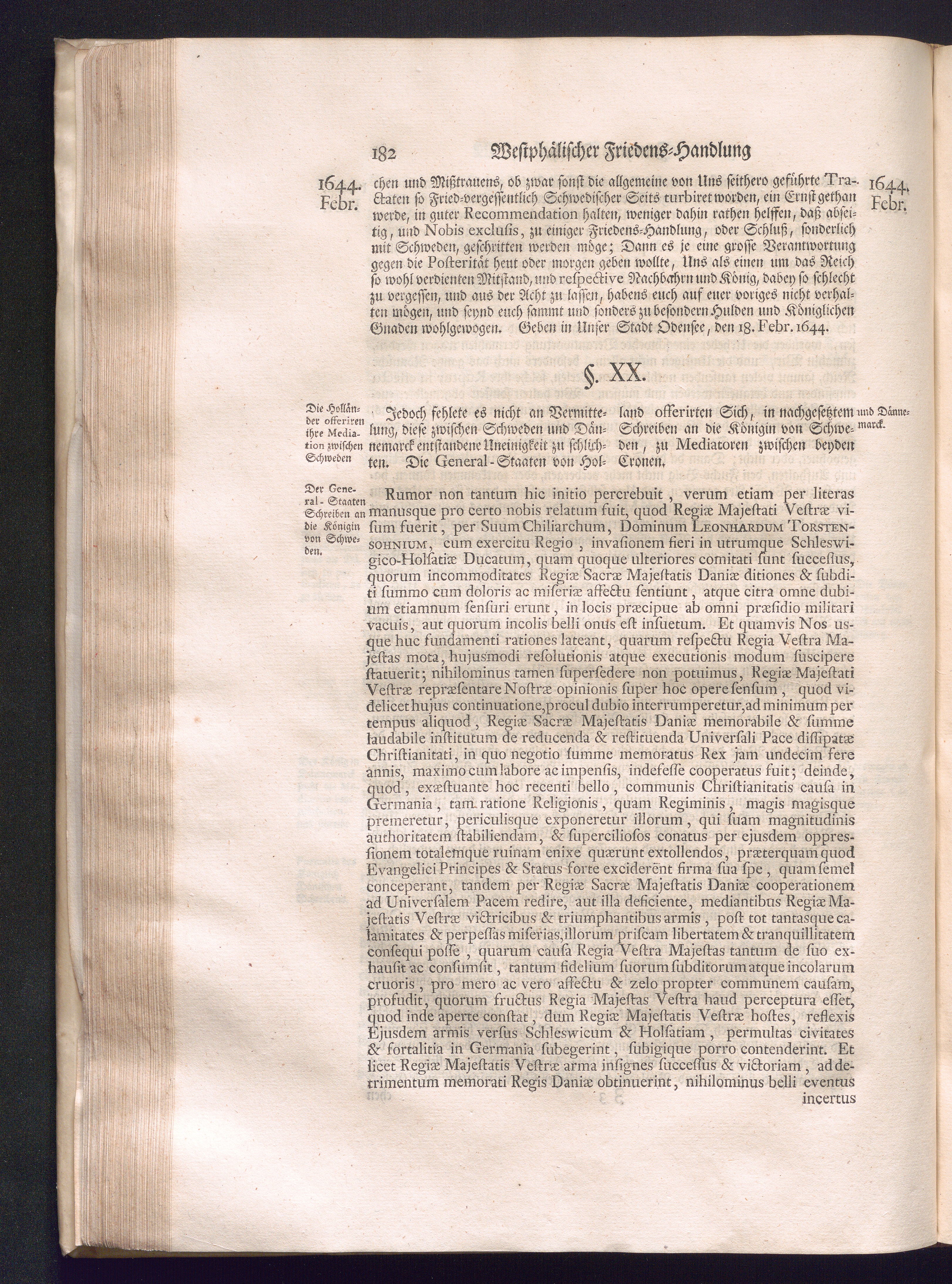 Erster Theil (1734) Worinnen enthalten, was vom Jahr 1643. biß in den Monath October Anno 1645. zwischen Jhro Römisch-Käyserlichen Majestät, dann den Beyden Cronen Franckreich und Schweden, ingleichen des Heiligen Römischen Reichs Chur-Fürsten, Fürsten und Ständen, zu Oßnabrück und Münster gehandelt worden