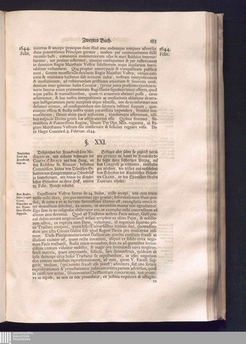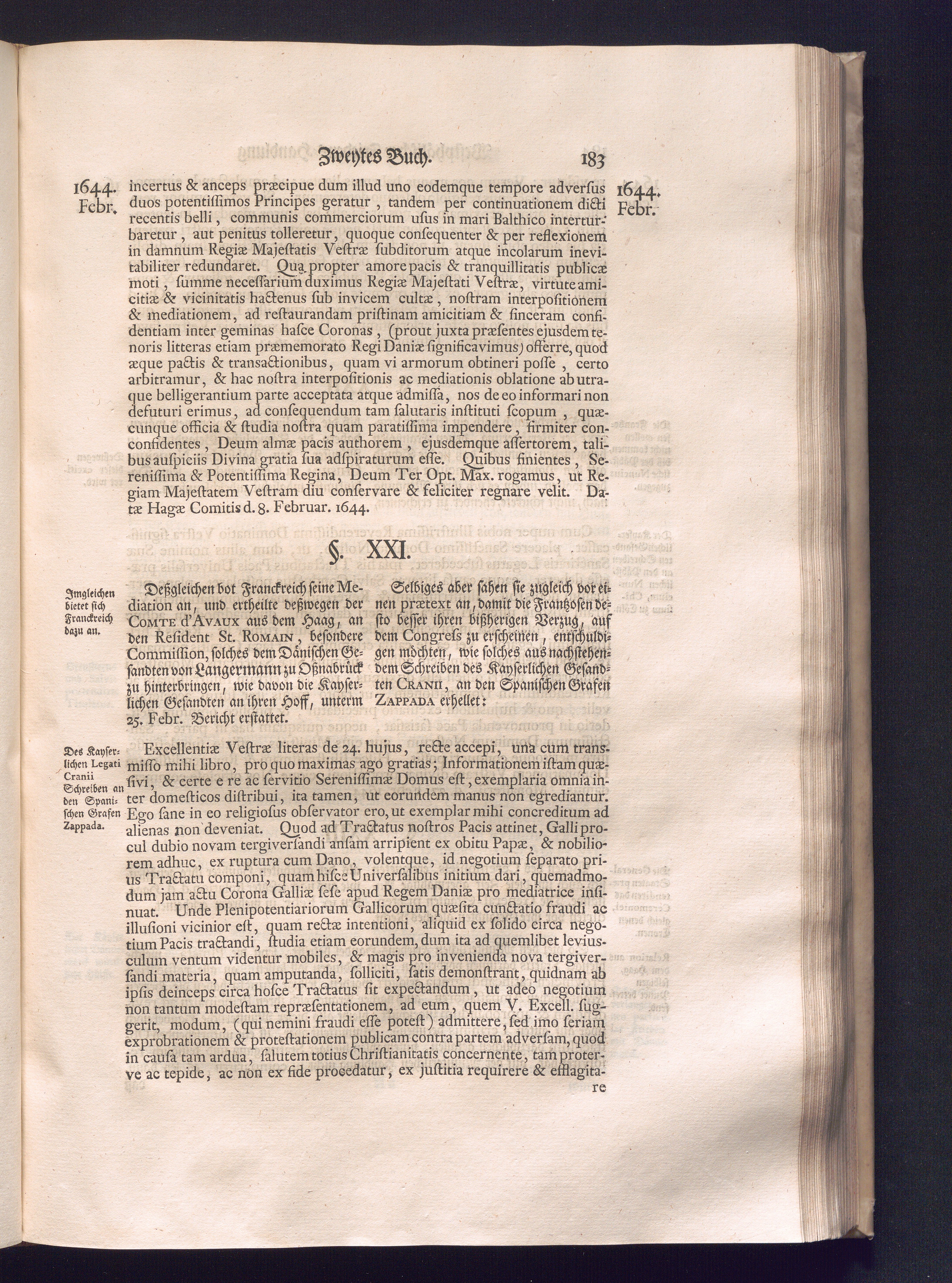 Erster Theil (1734) Worinnen enthalten, was vom Jahr 1643. biß in den Monath October Anno 1645. zwischen Jhro Römisch-Käyserlichen Majestät, dann den Beyden Cronen Franckreich und Schweden, ingleichen des Heiligen Römischen Reichs Chur-Fürsten, Fürsten und Ständen, zu Oßnabrück und Münster gehandelt worden