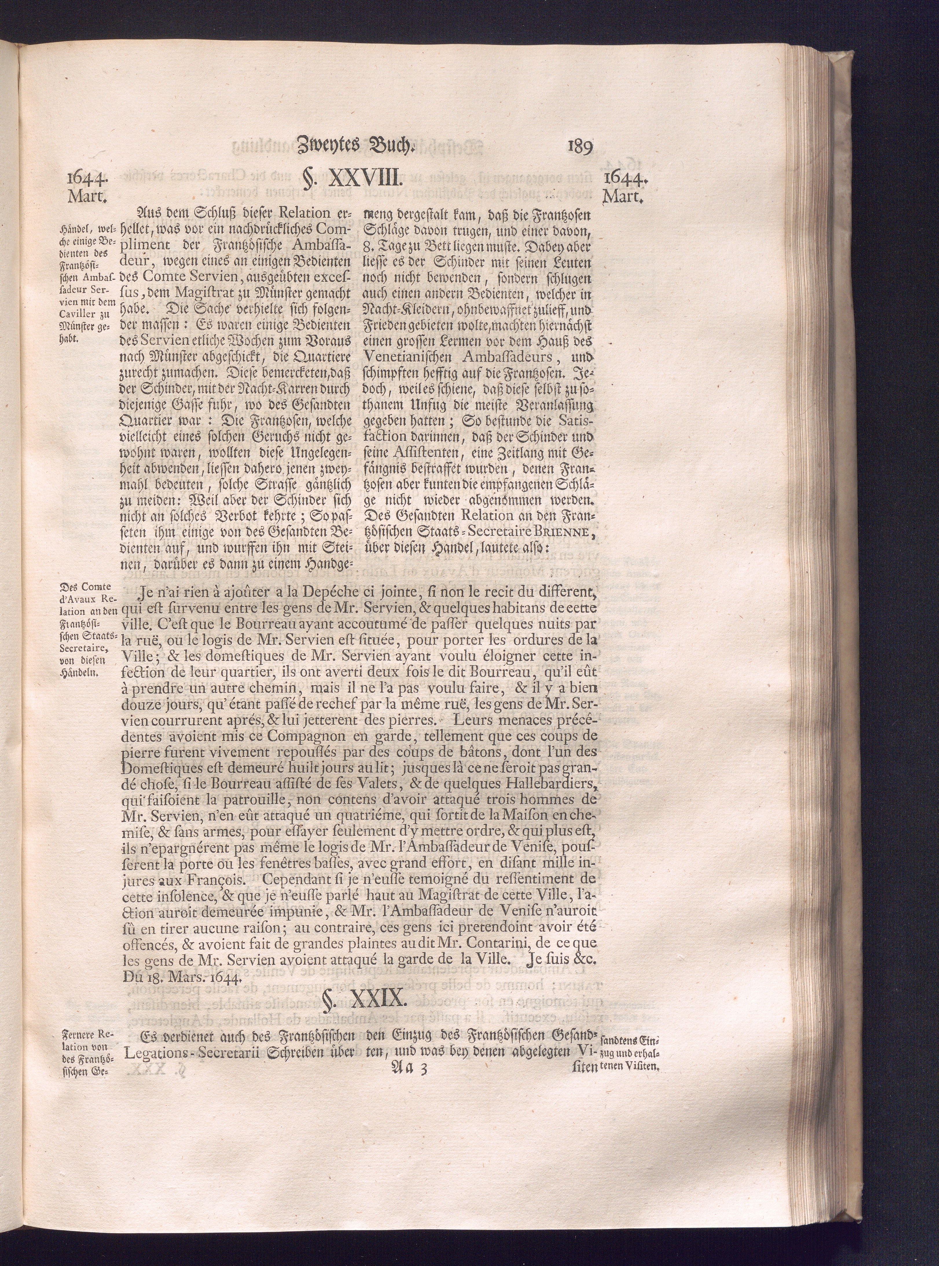 Erster Theil (1734) Worinnen enthalten, was vom Jahr 1643. biß in den Monath October Anno 1645. zwischen Jhro Römisch-Käyserlichen Majestät, dann den Beyden Cronen Franckreich und Schweden, ingleichen des Heiligen Römischen Reichs Chur-Fürsten, Fürsten und Ständen, zu Oßnabrück und Münster gehandelt worden