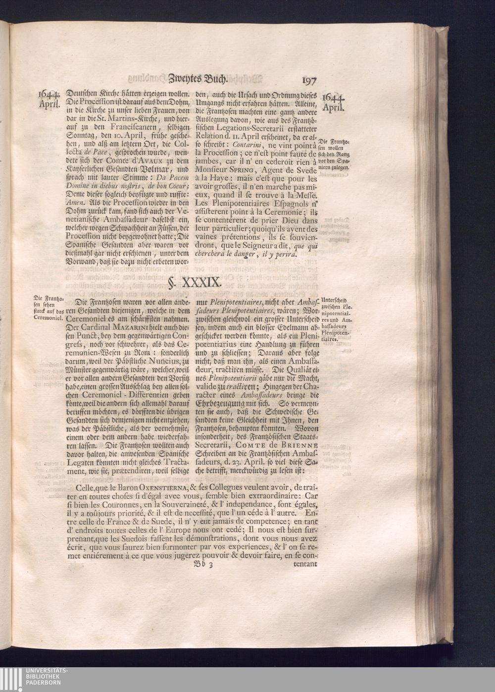 Erster Theil (1734) Worinnen enthalten, was vom Jahr 1643. biß in den Monath October Anno 1645. zwischen Jhro Römisch-Käyserlichen Majestät, dann den Beyden Cronen Franckreich und Schweden, ingleichen des Heiligen Römischen Reichs Chur-Fürsten, Fürsten und Ständen, zu Oßnabrück und Münster gehandelt worden