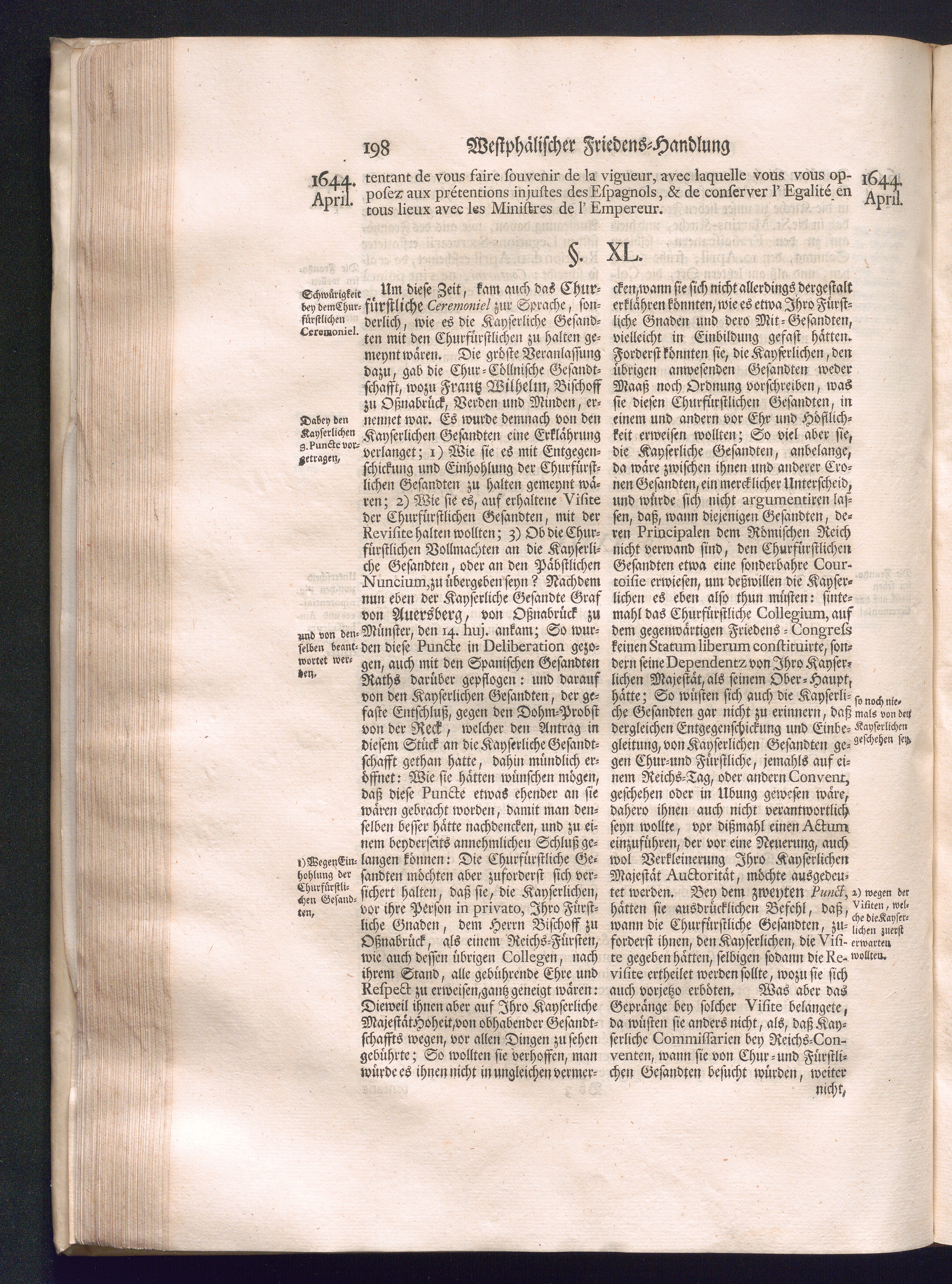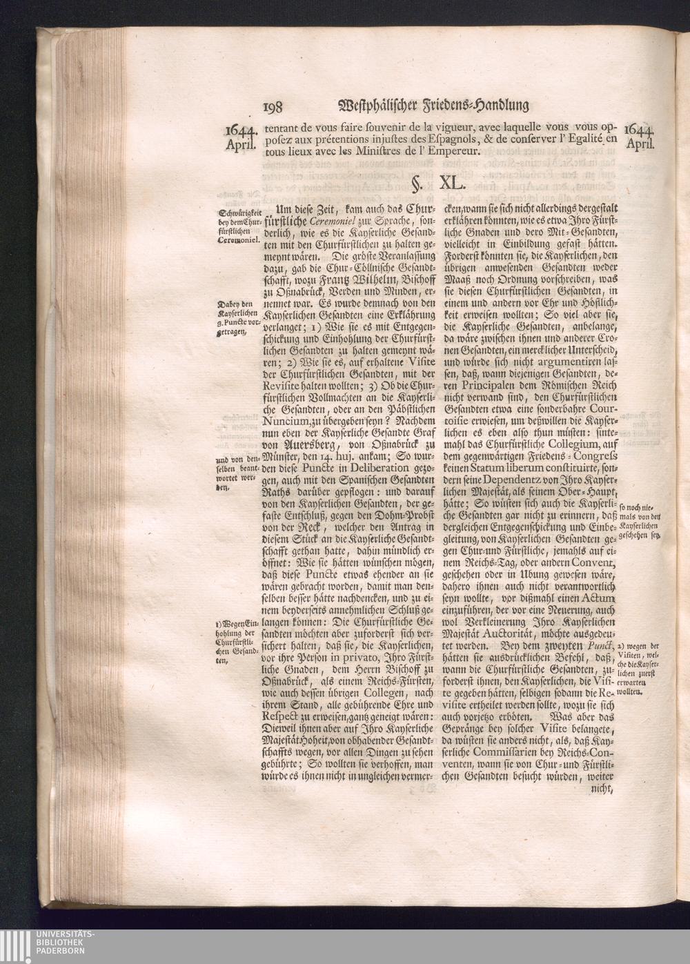 Erster Theil (1734) Worinnen enthalten, was vom Jahr 1643. biß in den Monath October Anno 1645. zwischen Jhro Römisch-Käyserlichen Majestät, dann den Beyden Cronen Franckreich und Schweden, ingleichen des Heiligen Römischen Reichs Chur-Fürsten, Fürsten und Ständen, zu Oßnabrück und Münster gehandelt worden