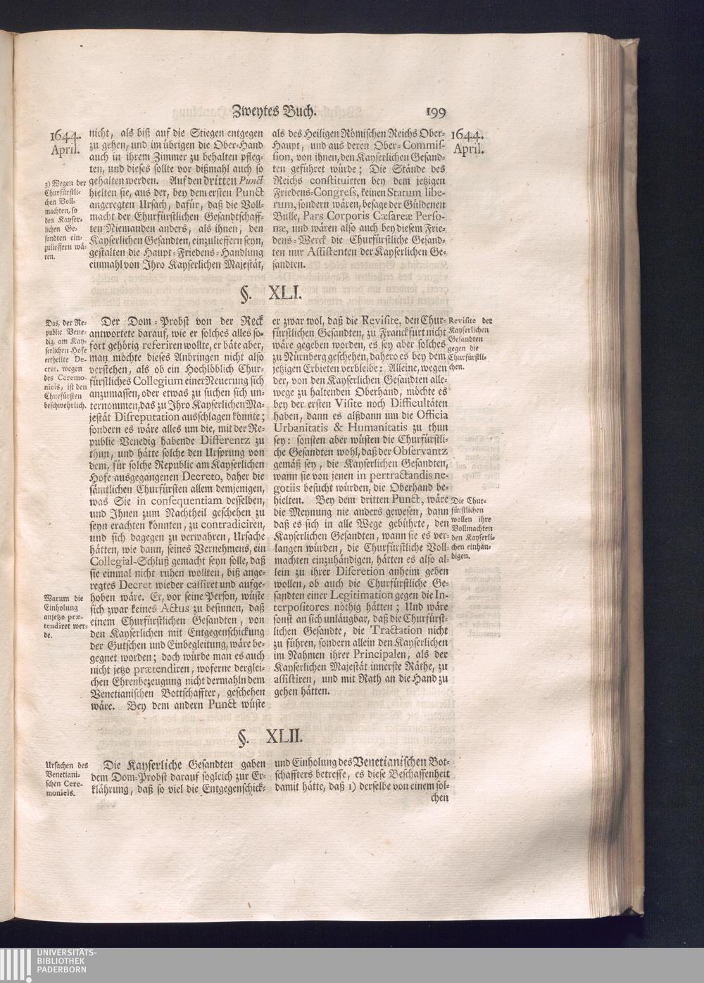 Erster Theil (1734) Worinnen enthalten, was vom Jahr 1643. biß in den Monath October Anno 1645. zwischen Jhro Römisch-Käyserlichen Majestät, dann den Beyden Cronen Franckreich und Schweden, ingleichen des Heiligen Römischen Reichs Chur-Fürsten, Fürsten und Ständen, zu Oßnabrück und Münster gehandelt worden