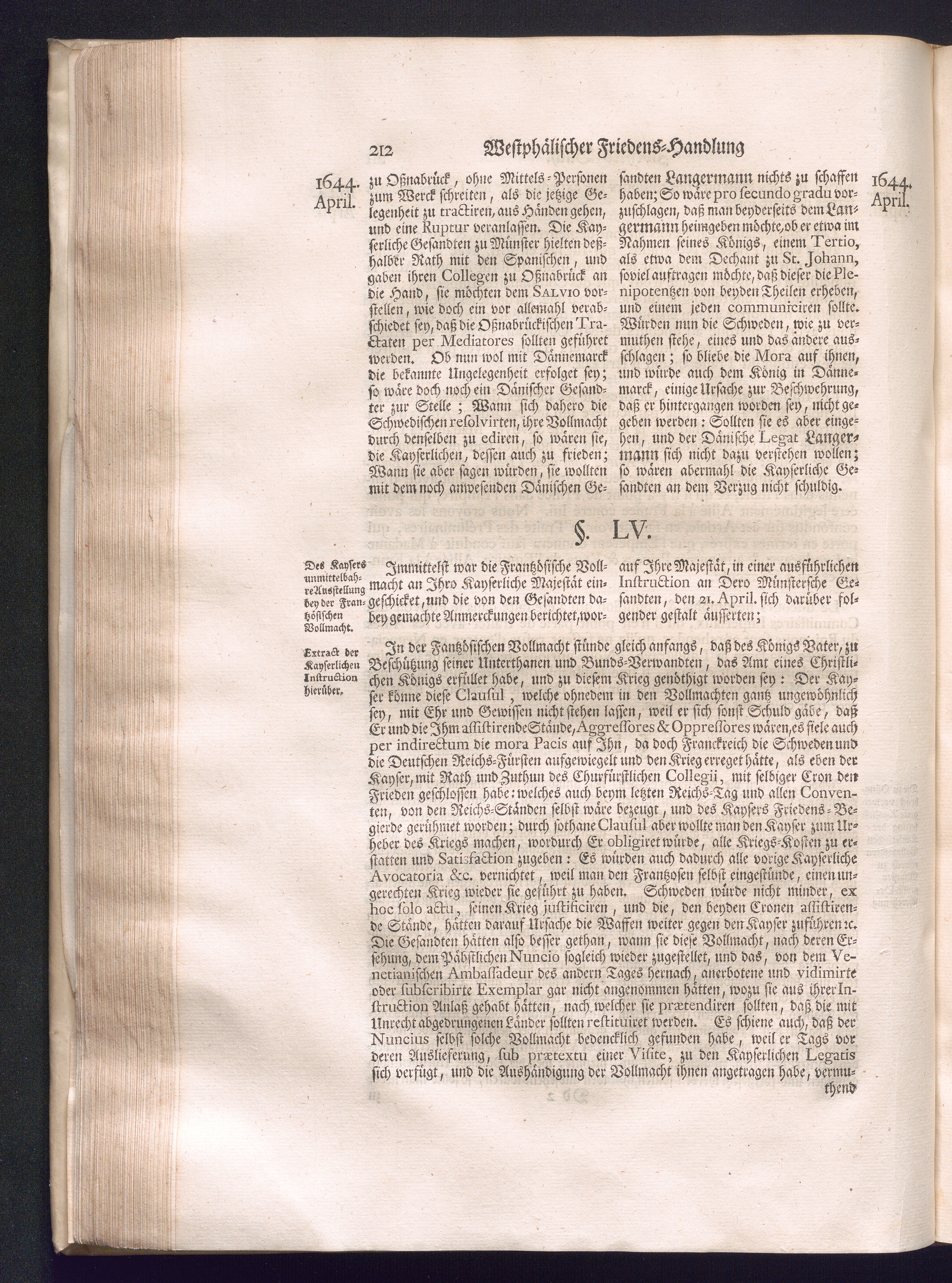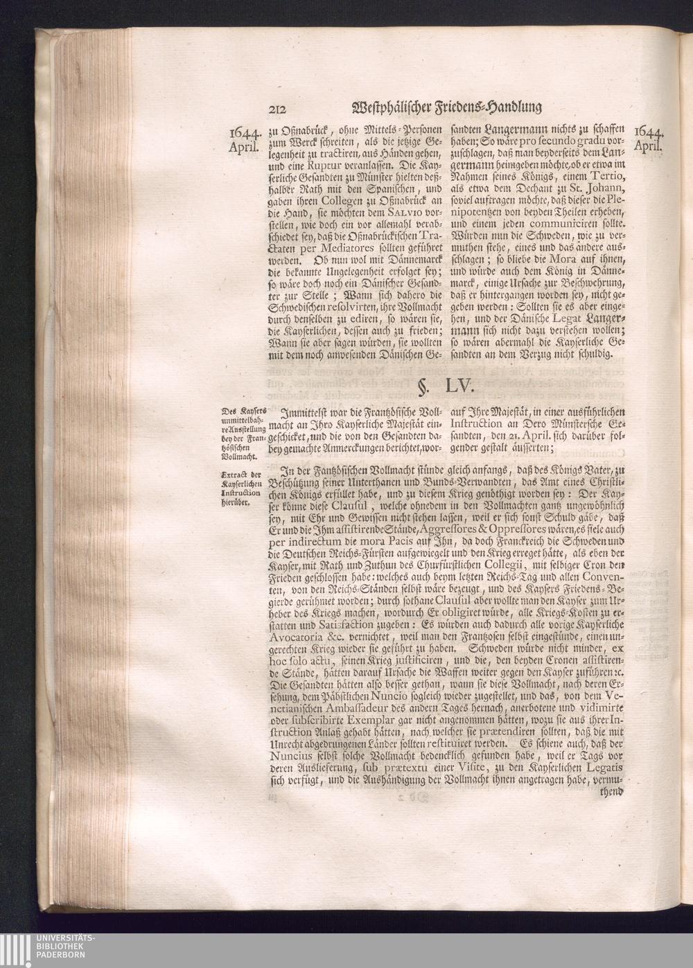 Erster Theil (1734) Worinnen enthalten, was vom Jahr 1643. biß in den Monath October Anno 1645. zwischen Jhro Römisch-Käyserlichen Majestät, dann den Beyden Cronen Franckreich und Schweden, ingleichen des Heiligen Römischen Reichs Chur-Fürsten, Fürsten und Ständen, zu Oßnabrück und Münster gehandelt worden