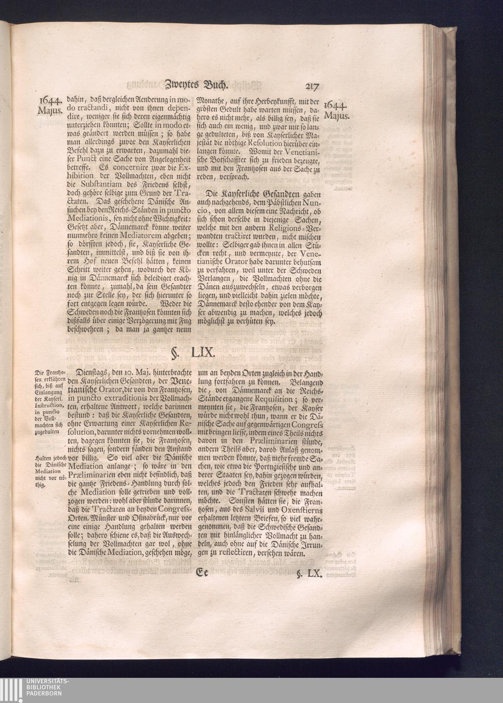 Erster Theil (1734) Worinnen enthalten, was vom Jahr 1643. biß in den Monath October Anno 1645. zwischen Jhro Römisch-Käyserlichen Majestät, dann den Beyden Cronen Franckreich und Schweden, ingleichen des Heiligen Römischen Reichs Chur-Fürsten, Fürsten und Ständen, zu Oßnabrück und Münster gehandelt worden