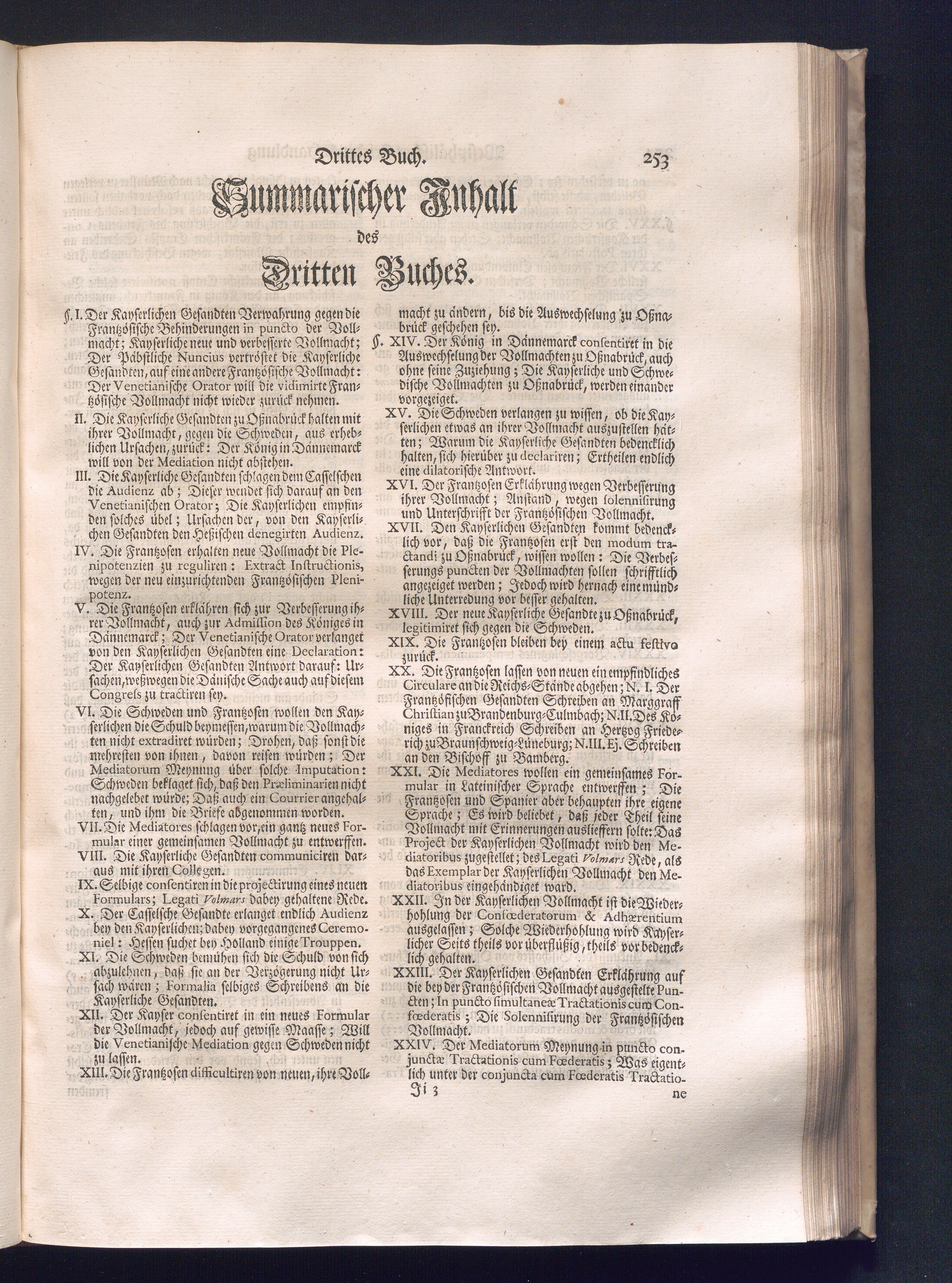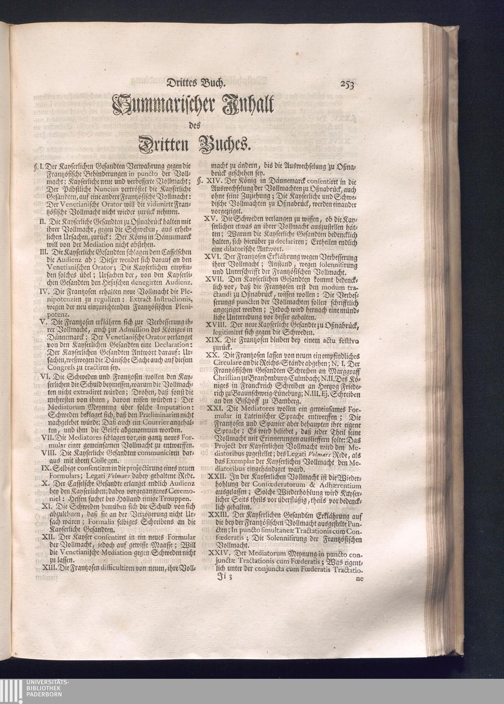 Erster Theil (1734) Worinnen enthalten, was vom Jahr 1643. biß in den Monath October Anno 1645. zwischen Jhro Römisch-Käyserlichen Majestät, dann den Beyden Cronen Franckreich und Schweden, ingleichen des Heiligen Römischen Reichs Chur-Fürsten, Fürsten und Ständen, zu Oßnabrück und Münster gehandelt worden