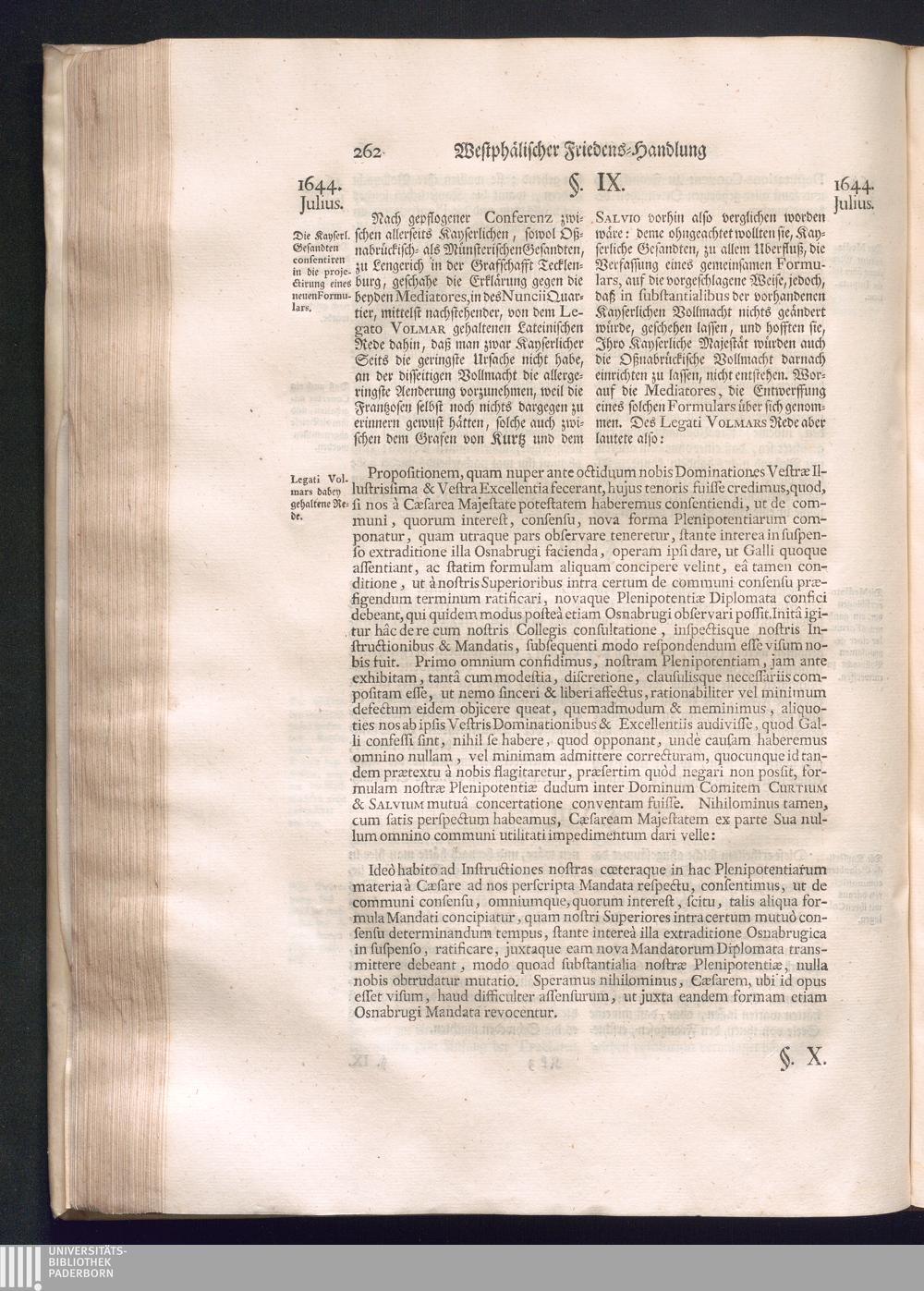 Erster Theil (1734) Worinnen enthalten, was vom Jahr 1643. biß in den Monath October Anno 1645. zwischen Jhro Römisch-Käyserlichen Majestät, dann den Beyden Cronen Franckreich und Schweden, ingleichen des Heiligen Römischen Reichs Chur-Fürsten, Fürsten und Ständen, zu Oßnabrück und Münster gehandelt worden