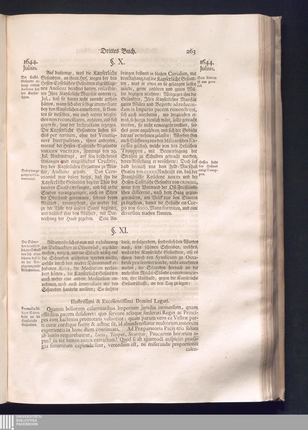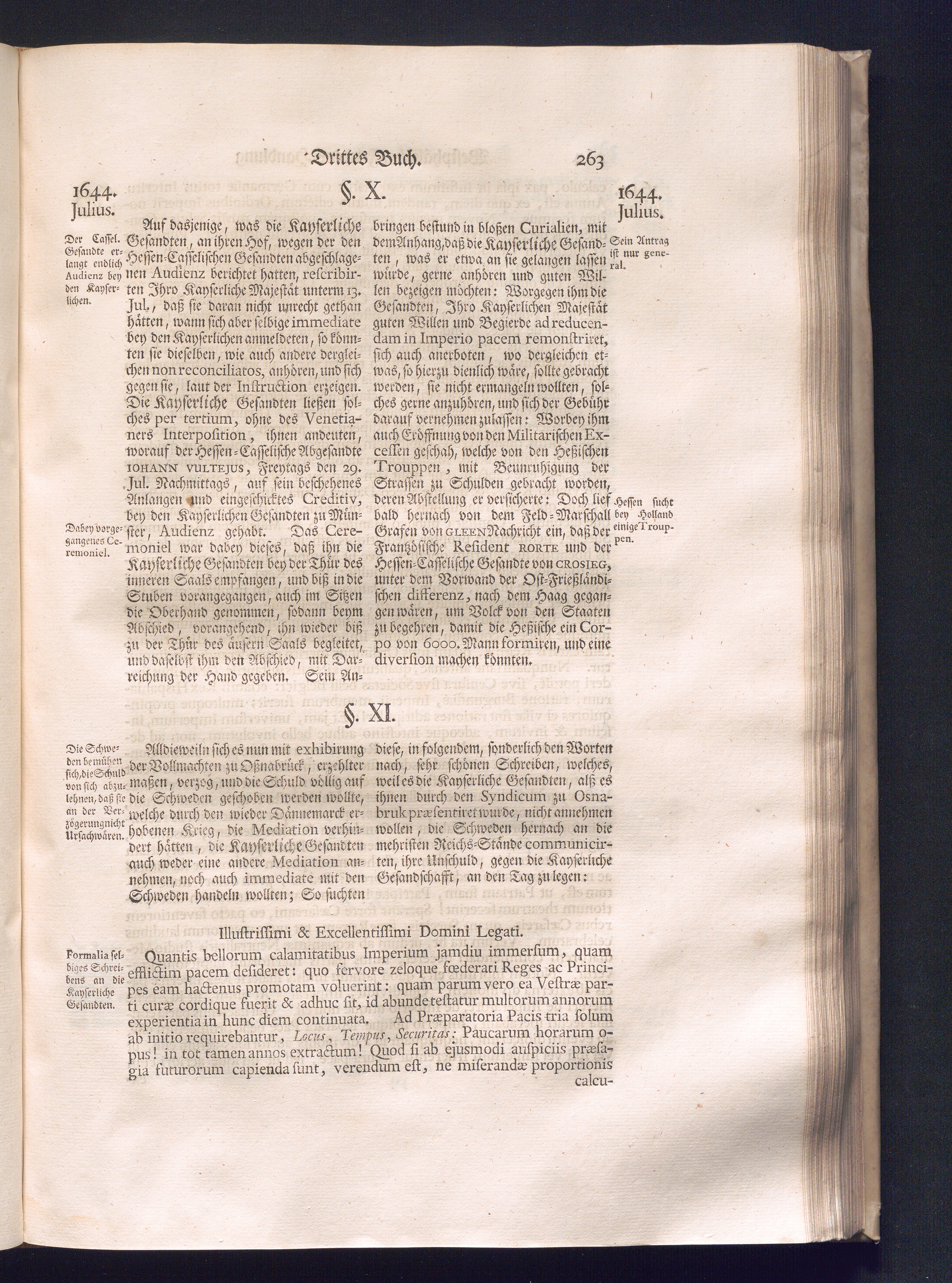 Erster Theil (1734) Worinnen enthalten, was vom Jahr 1643. biß in den Monath October Anno 1645. zwischen Jhro Römisch-Käyserlichen Majestät, dann den Beyden Cronen Franckreich und Schweden, ingleichen des Heiligen Römischen Reichs Chur-Fürsten, Fürsten und Ständen, zu Oßnabrück und Münster gehandelt worden