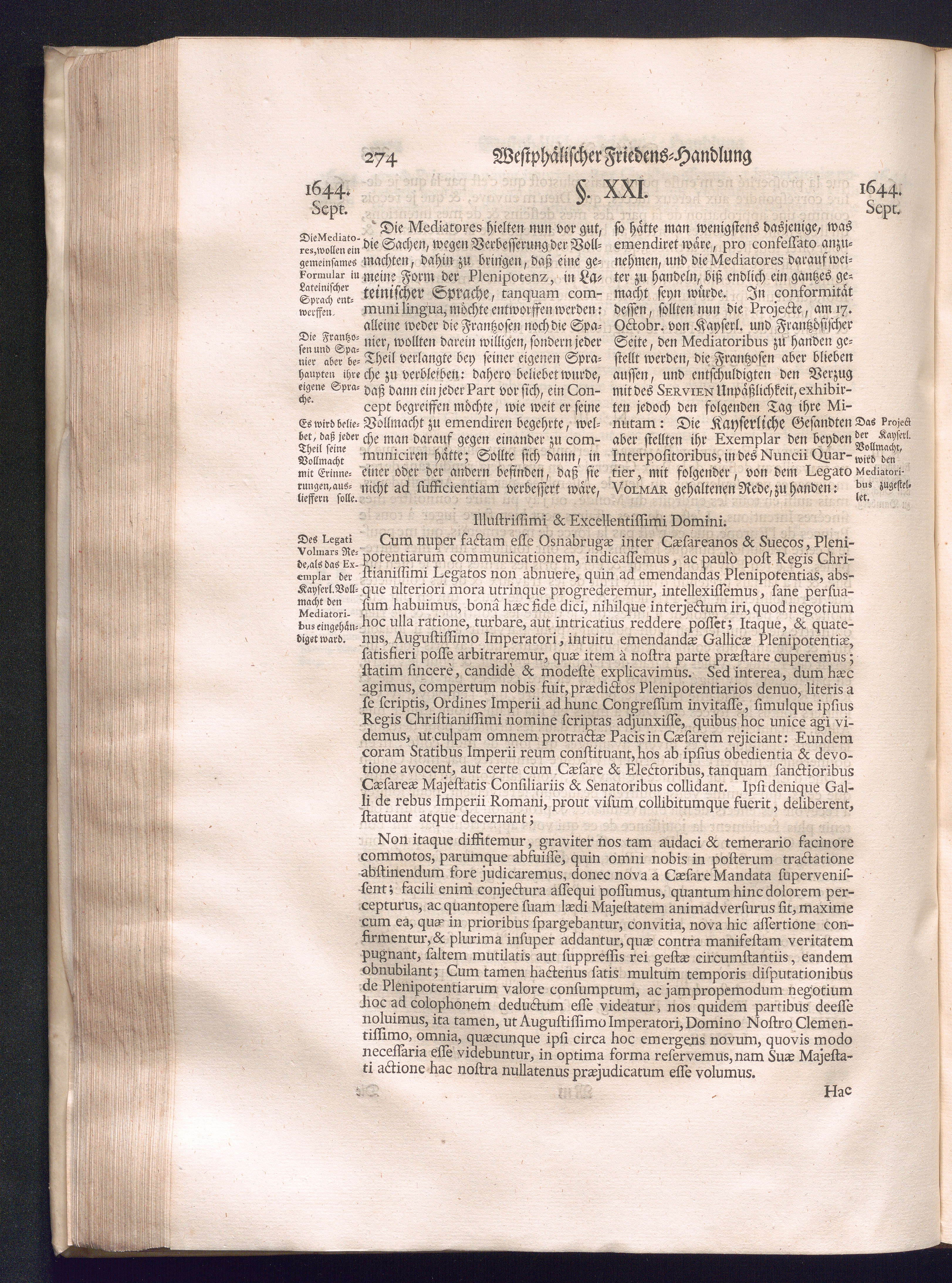 Erster Theil (1734) Worinnen enthalten, was vom Jahr 1643. biß in den Monath October Anno 1645. zwischen Jhro Römisch-Käyserlichen Majestät, dann den Beyden Cronen Franckreich und Schweden, ingleichen des Heiligen Römischen Reichs Chur-Fürsten, Fürsten und Ständen, zu Oßnabrück und Münster gehandelt worden