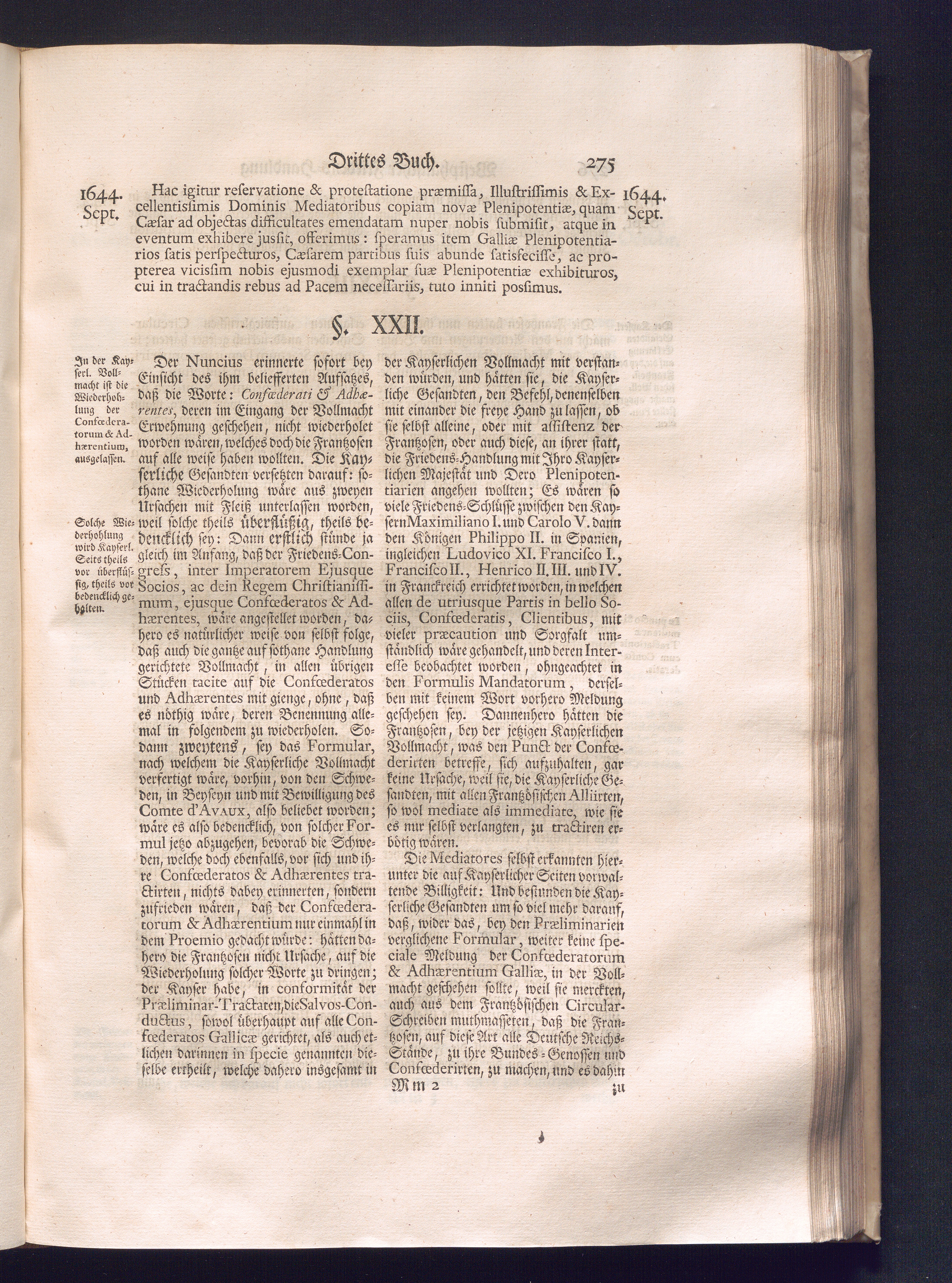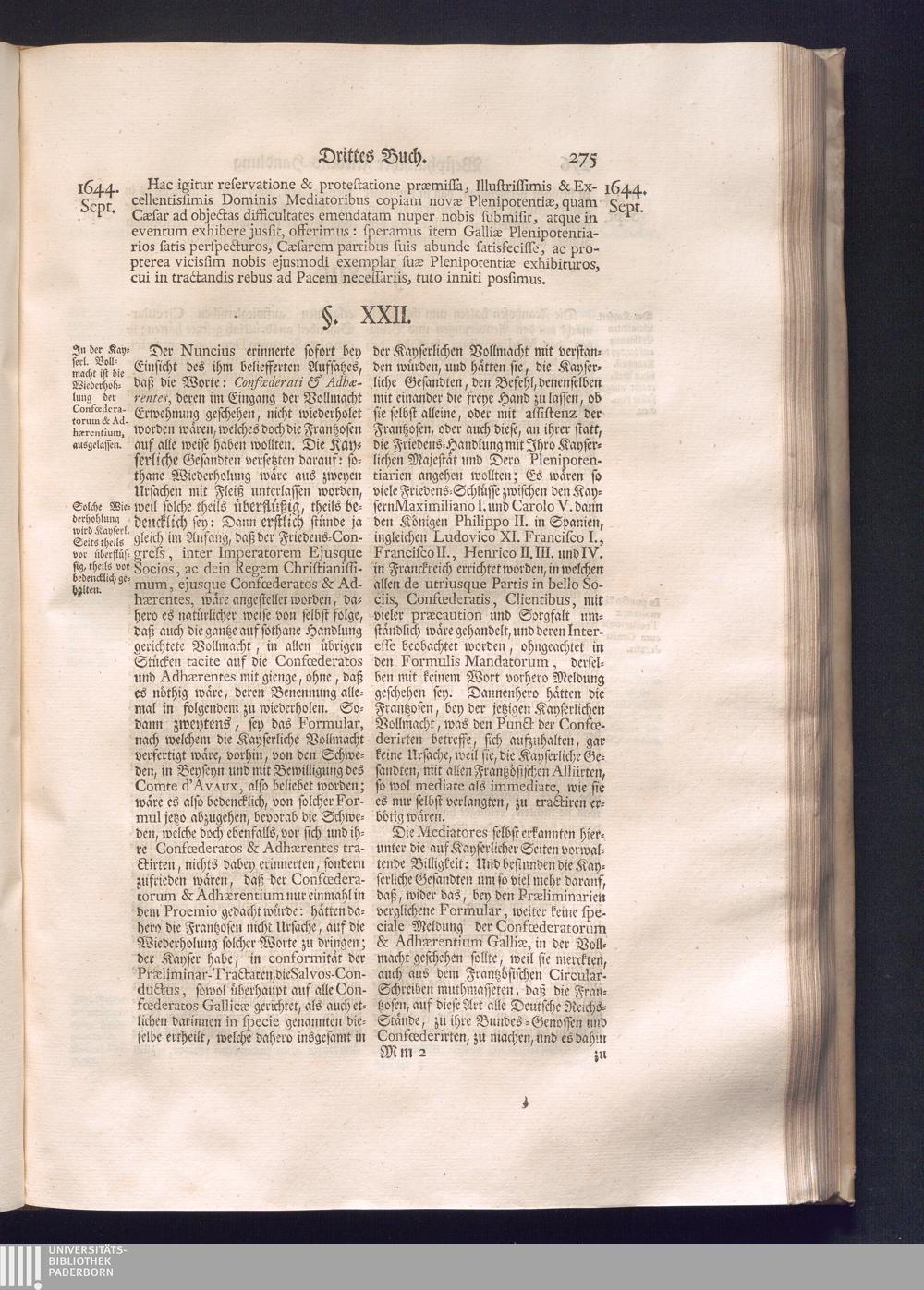 Erster Theil (1734) Worinnen enthalten, was vom Jahr 1643. biß in den Monath October Anno 1645. zwischen Jhro Römisch-Käyserlichen Majestät, dann den Beyden Cronen Franckreich und Schweden, ingleichen des Heiligen Römischen Reichs Chur-Fürsten, Fürsten und Ständen, zu Oßnabrück und Münster gehandelt worden