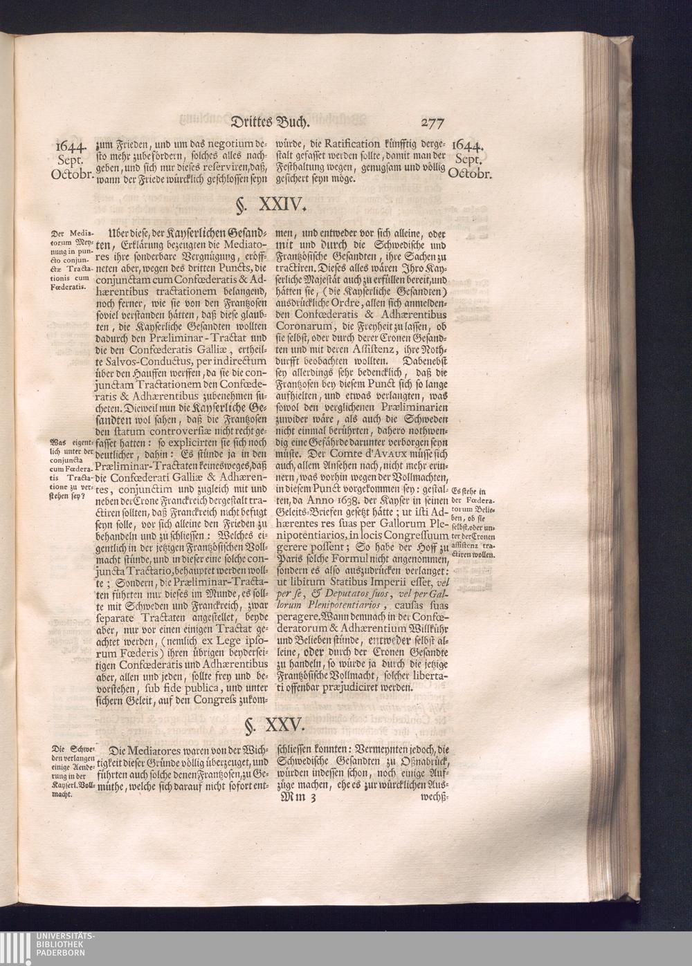 Erster Theil (1734) Worinnen enthalten, was vom Jahr 1643. biß in den Monath October Anno 1645. zwischen Jhro Römisch-Käyserlichen Majestät, dann den Beyden Cronen Franckreich und Schweden, ingleichen des Heiligen Römischen Reichs Chur-Fürsten, Fürsten und Ständen, zu Oßnabrück und Münster gehandelt worden
