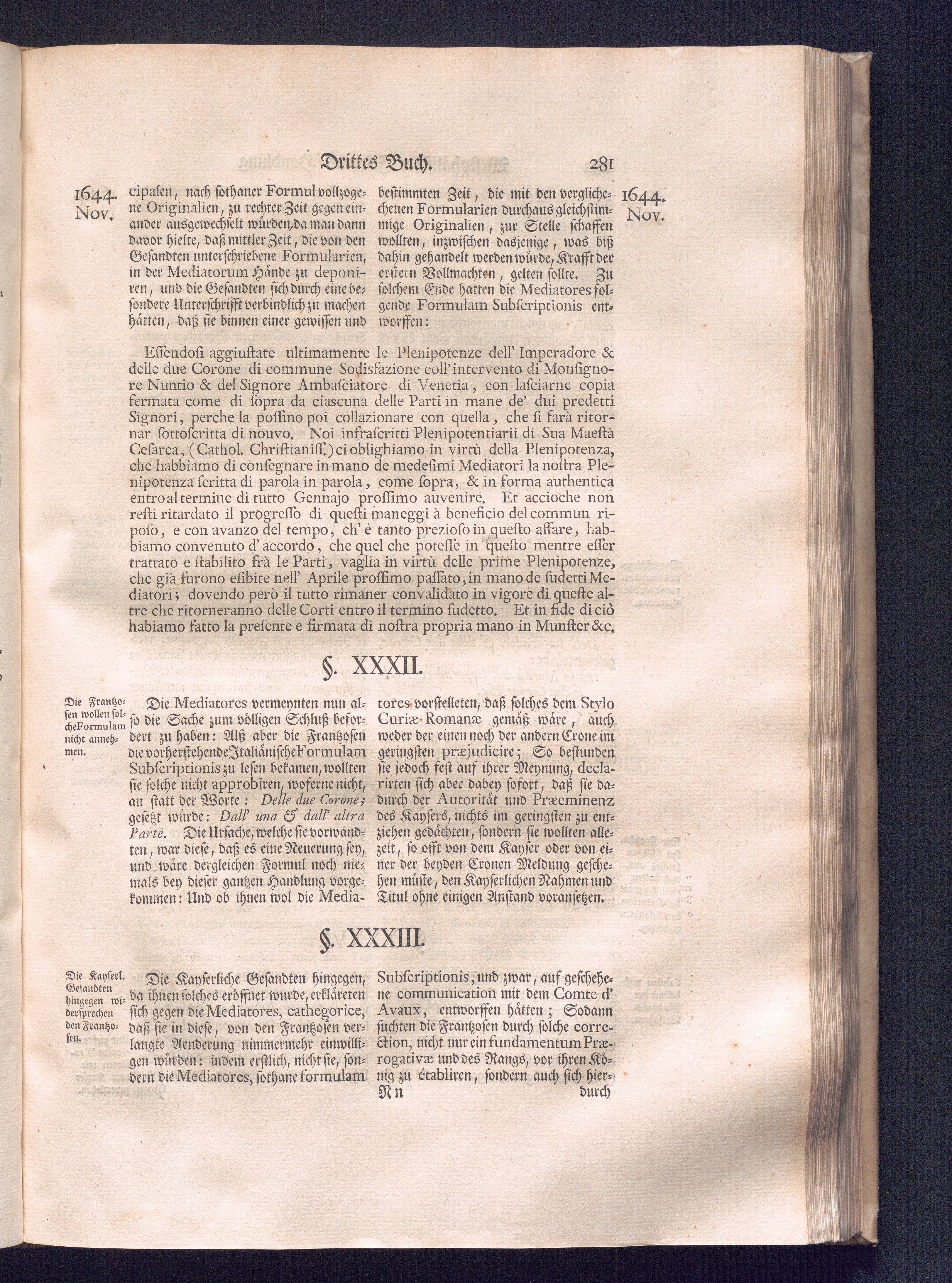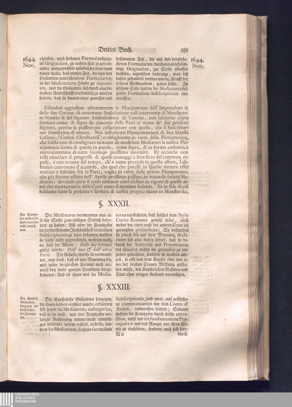 Erster Theil (1734) Worinnen enthalten, was vom Jahr 1643. biß in den Monath October Anno 1645. zwischen Jhro Römisch-Käyserlichen Majestät, dann den Beyden Cronen Franckreich und Schweden, ingleichen des Heiligen Römischen Reichs Chur-Fürsten, Fürsten und Ständen, zu Oßnabrück und Münster gehandelt worden