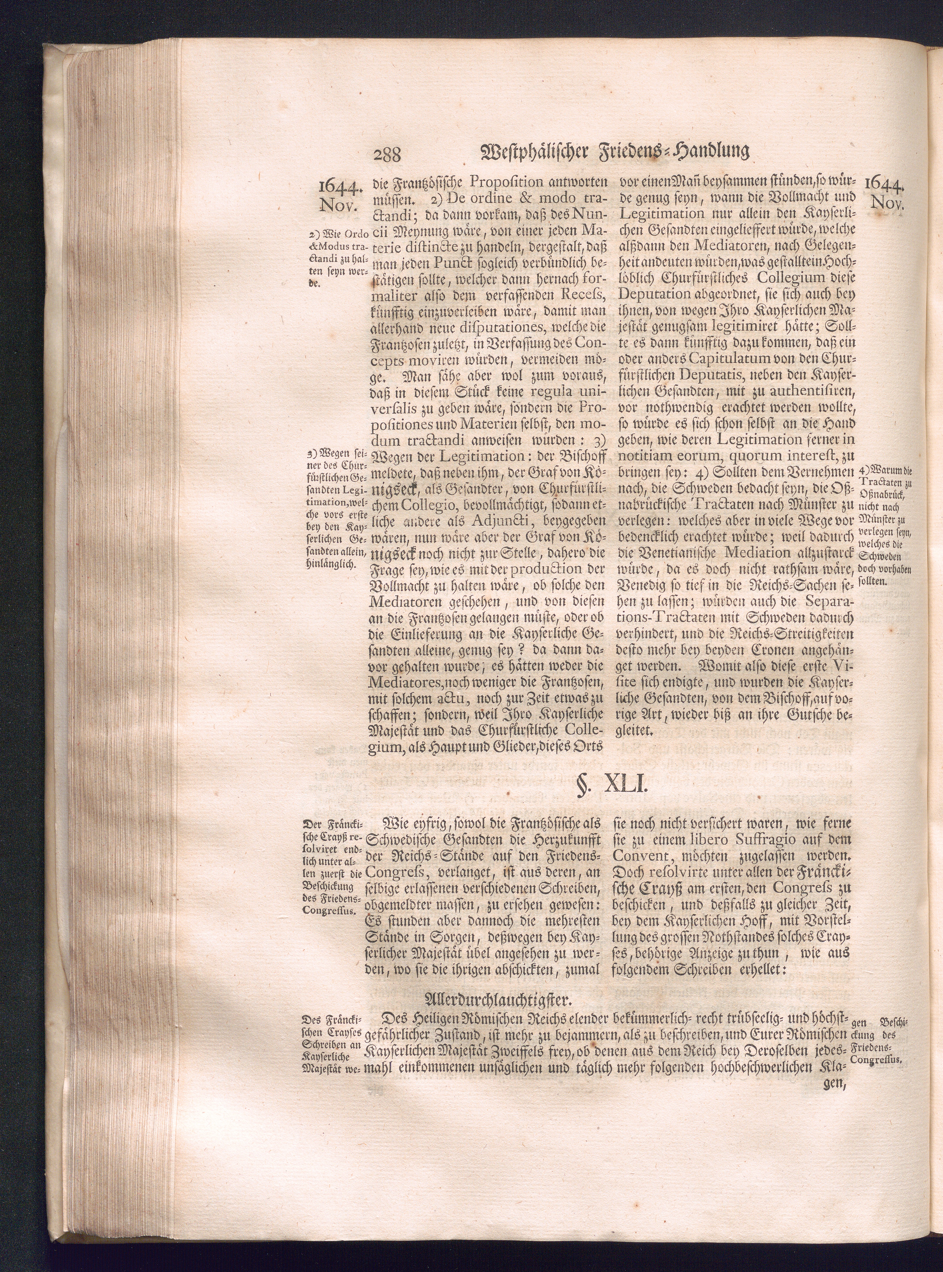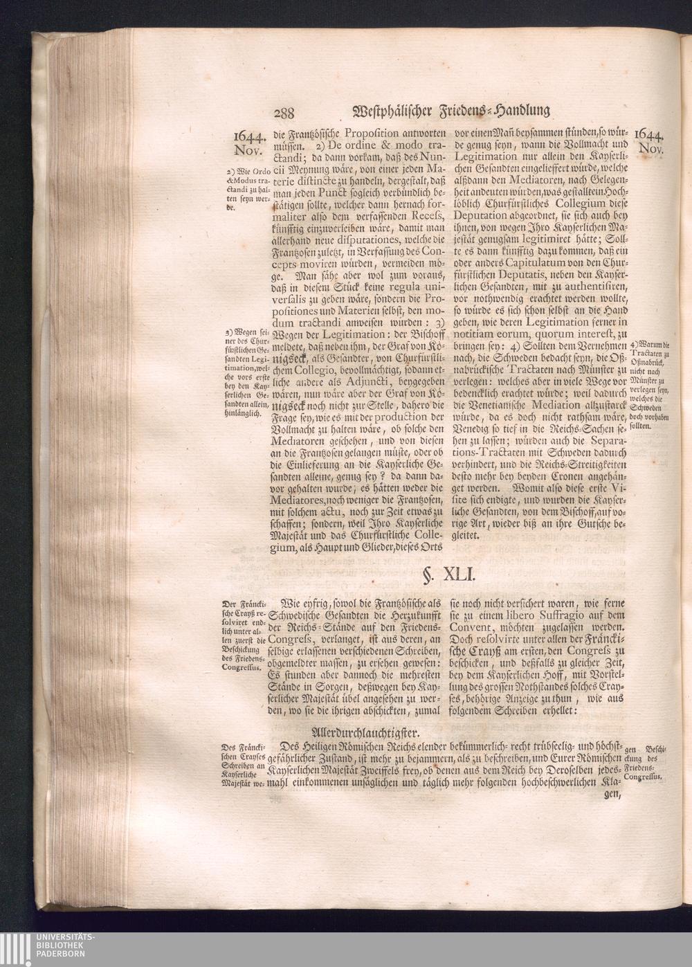Erster Theil (1734) Worinnen enthalten, was vom Jahr 1643. biß in den Monath October Anno 1645. zwischen Jhro Römisch-Käyserlichen Majestät, dann den Beyden Cronen Franckreich und Schweden, ingleichen des Heiligen Römischen Reichs Chur-Fürsten, Fürsten und Ständen, zu Oßnabrück und Münster gehandelt worden