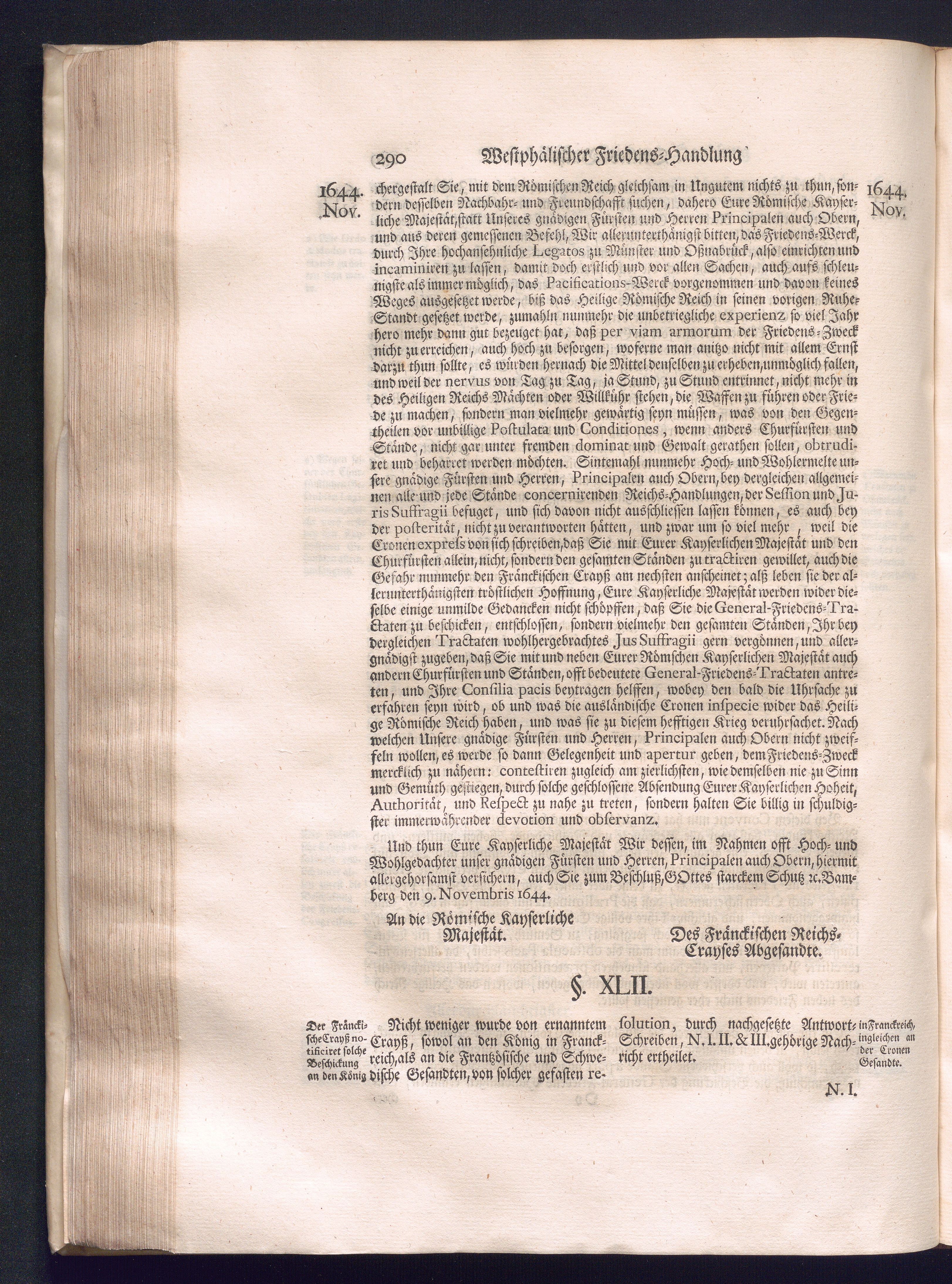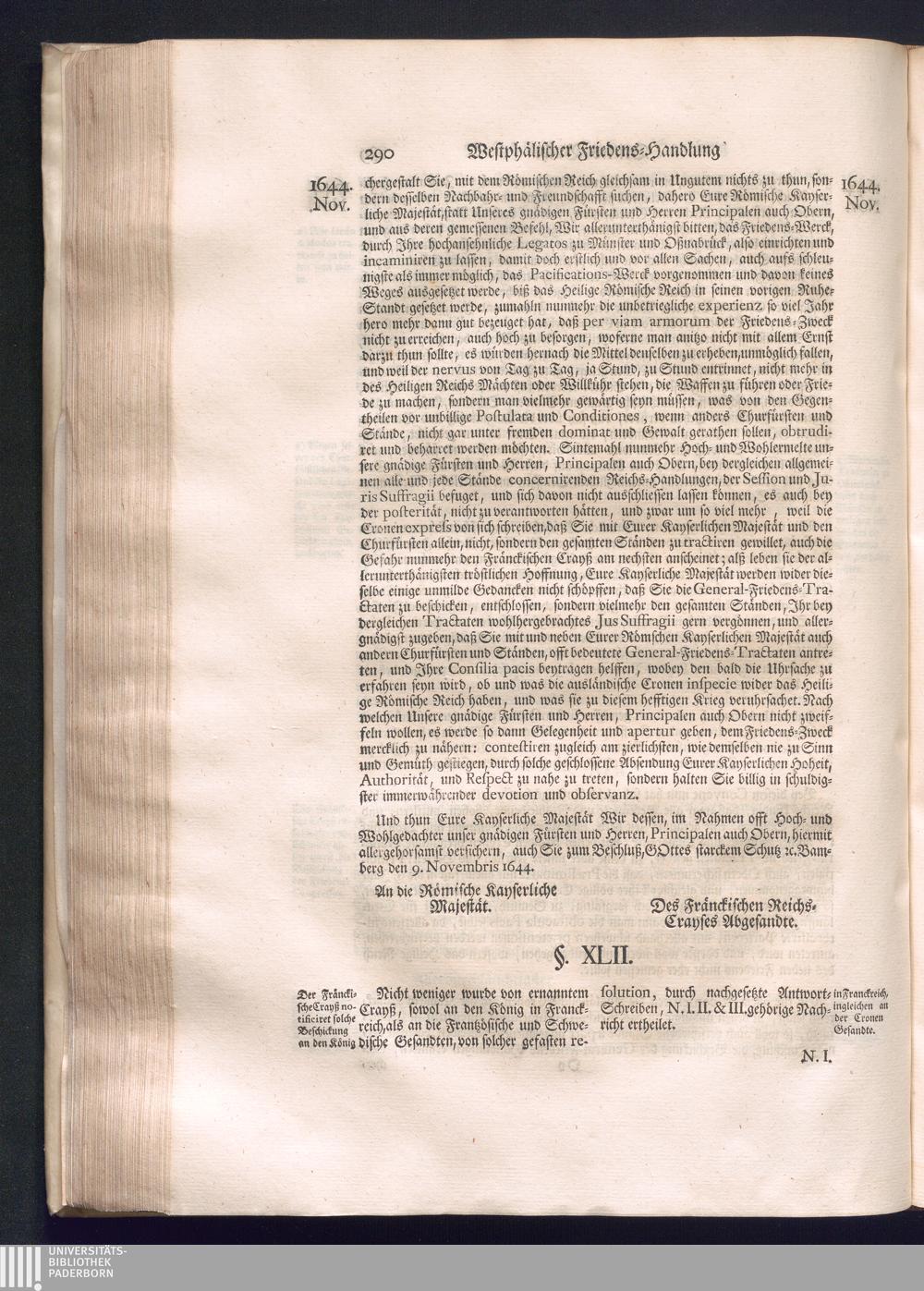Erster Theil (1734) Worinnen enthalten, was vom Jahr 1643. biß in den Monath October Anno 1645. zwischen Jhro Römisch-Käyserlichen Majestät, dann den Beyden Cronen Franckreich und Schweden, ingleichen des Heiligen Römischen Reichs Chur-Fürsten, Fürsten und Ständen, zu Oßnabrück und Münster gehandelt worden