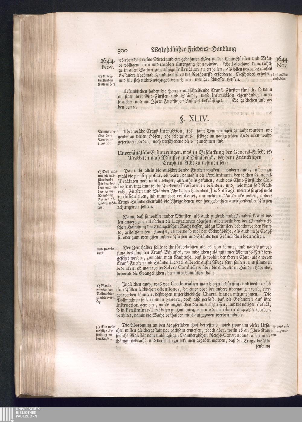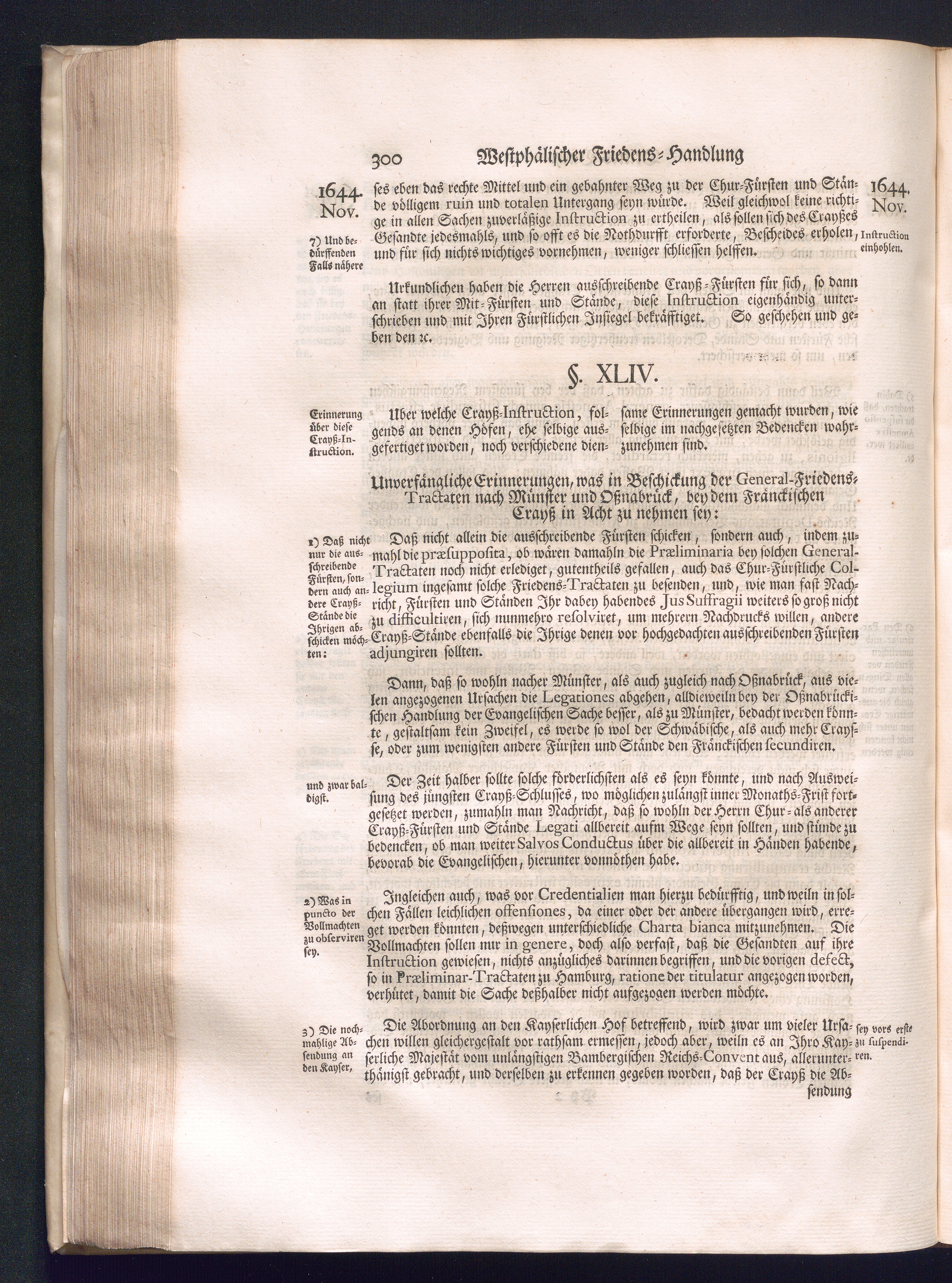 Erster Theil (1734) Worinnen enthalten, was vom Jahr 1643. biß in den Monath October Anno 1645. zwischen Jhro Römisch-Käyserlichen Majestät, dann den Beyden Cronen Franckreich und Schweden, ingleichen des Heiligen Römischen Reichs Chur-Fürsten, Fürsten und Ständen, zu Oßnabrück und Münster gehandelt worden