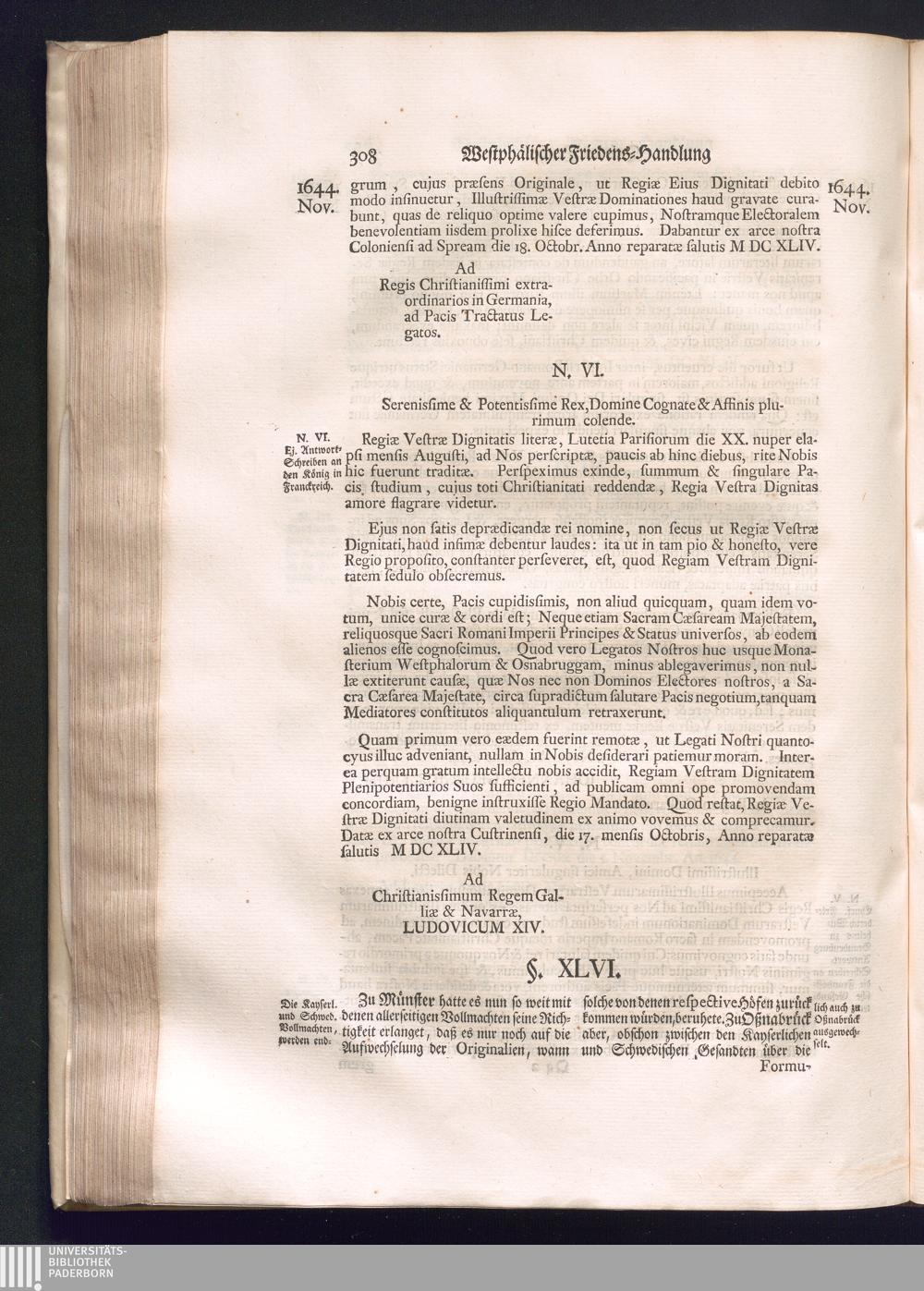 Erster Theil (1734) Worinnen enthalten, was vom Jahr 1643. biß in den Monath October Anno 1645. zwischen Jhro Römisch-Käyserlichen Majestät, dann den Beyden Cronen Franckreich und Schweden, ingleichen des Heiligen Römischen Reichs Chur-Fürsten, Fürsten und Ständen, zu Oßnabrück und Münster gehandelt worden