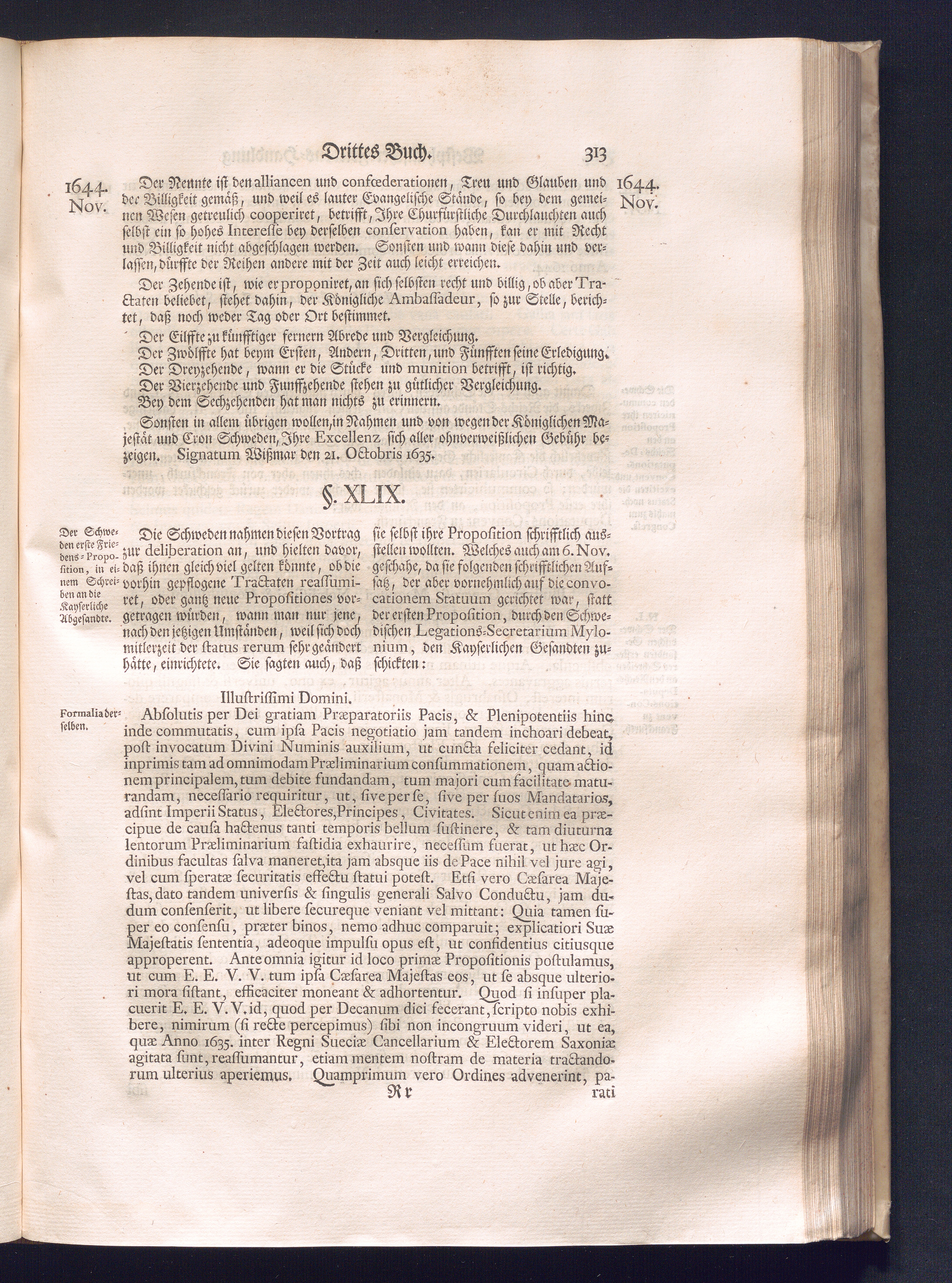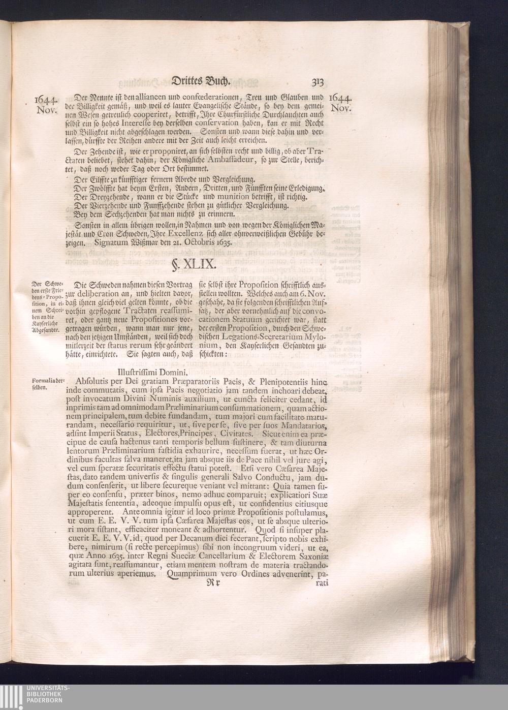 Erster Theil (1734) Worinnen enthalten, was vom Jahr 1643. biß in den Monath October Anno 1645. zwischen Jhro Römisch-Käyserlichen Majestät, dann den Beyden Cronen Franckreich und Schweden, ingleichen des Heiligen Römischen Reichs Chur-Fürsten, Fürsten und Ständen, zu Oßnabrück und Münster gehandelt worden