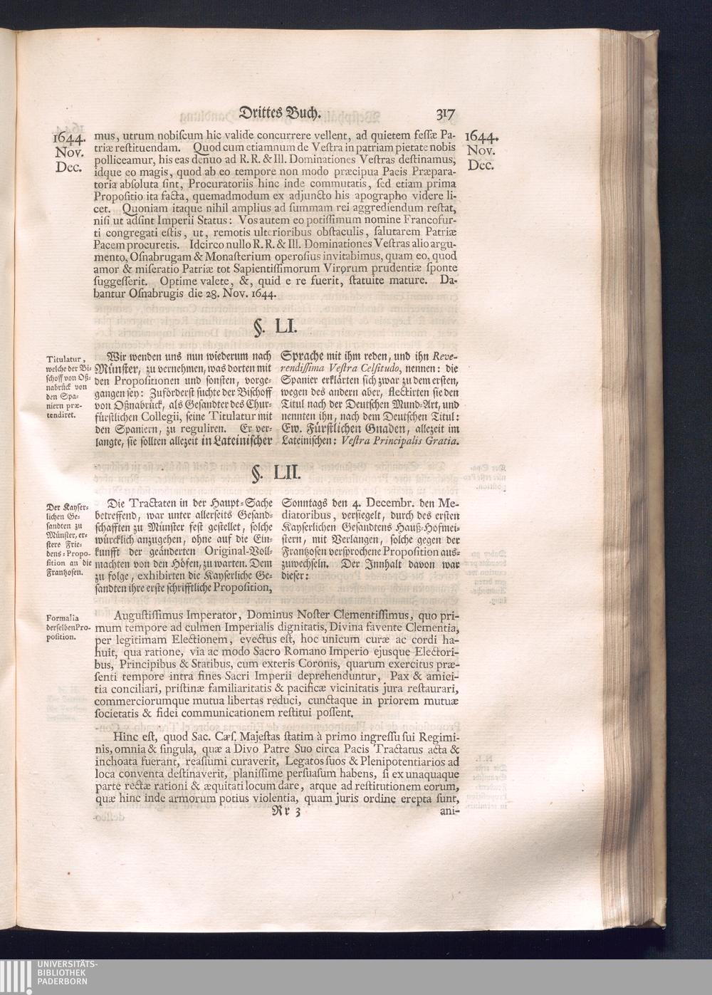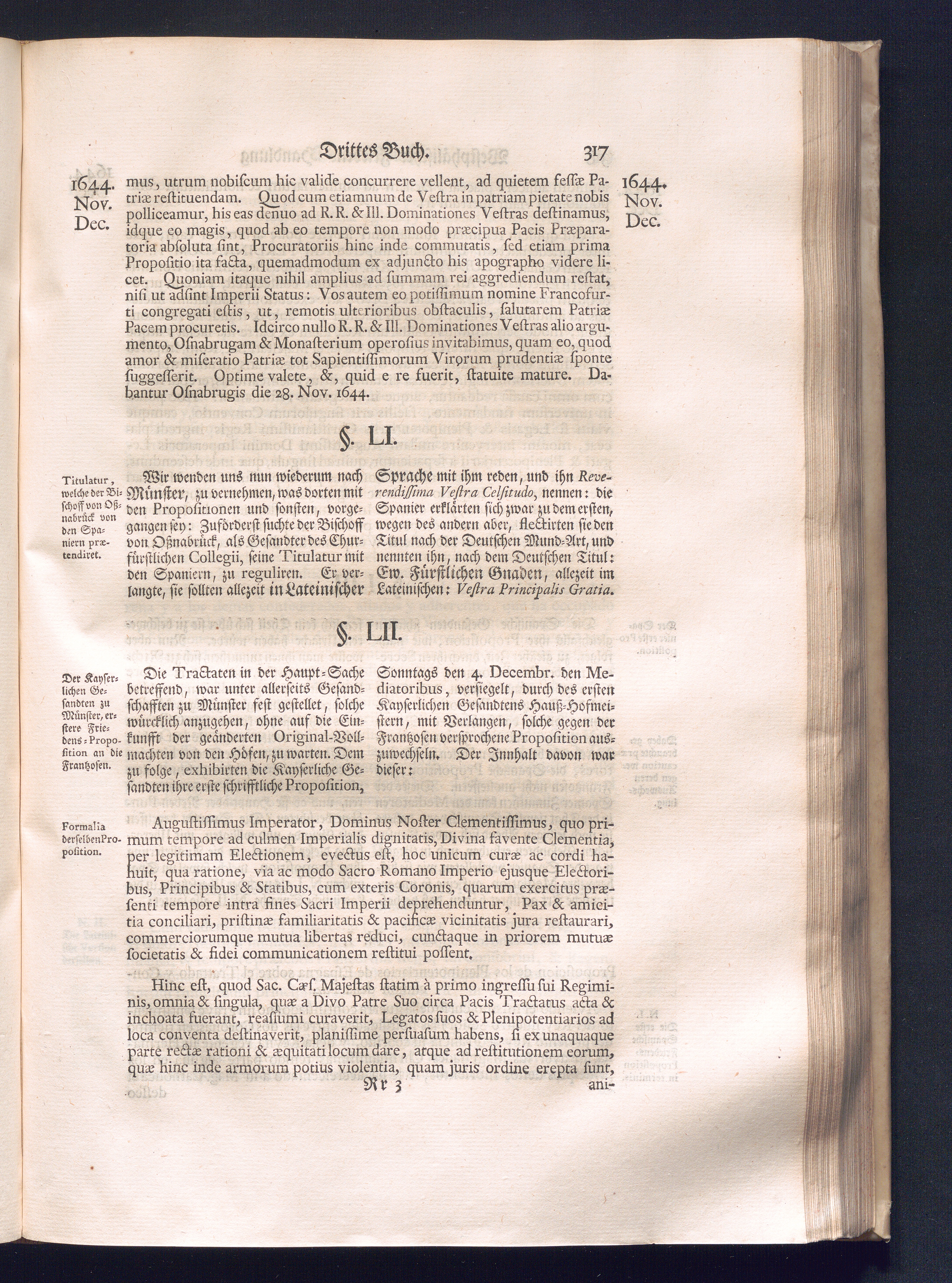 Erster Theil (1734) Worinnen enthalten, was vom Jahr 1643. biß in den Monath October Anno 1645. zwischen Jhro Römisch-Käyserlichen Majestät, dann den Beyden Cronen Franckreich und Schweden, ingleichen des Heiligen Römischen Reichs Chur-Fürsten, Fürsten und Ständen, zu Oßnabrück und Münster gehandelt worden
